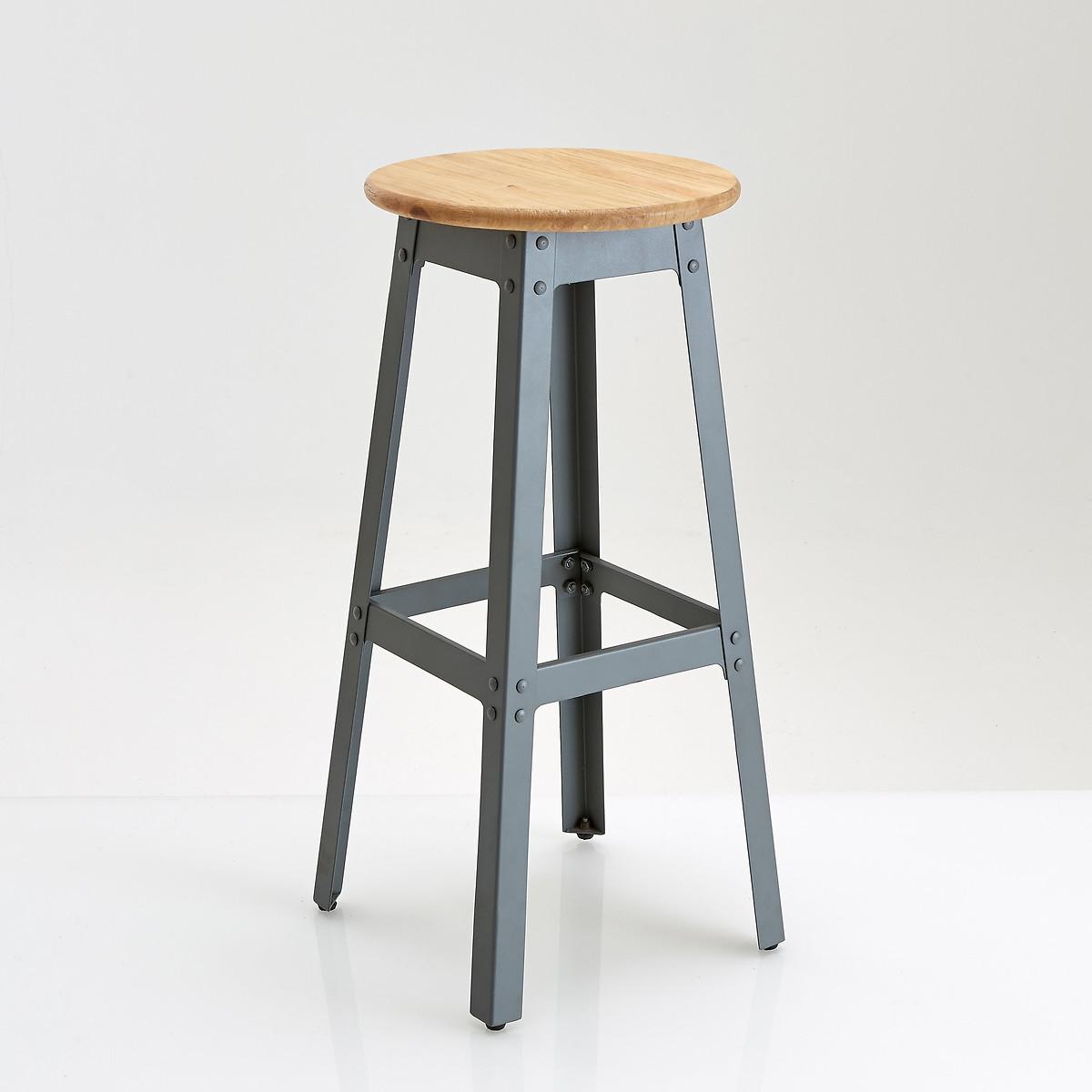 The Hiba industrial style stool, height. 75cm. Around a high table or bar, the Hiba high stool displays retro vibes. Product Details • Steel structure, grey epoxy lacquered grey, epoxy finish • Foot rest • Seat in solid pine, oak-stained, waxed finish • It is advisable to tighten the screws, if necessary, for optimal quality and stability. Dimensions • Overall • Width: 35cm • Height: 75cm • Depth: 35cm • Seat • L35 x H75 x D35cmDelivery:. This product is sold ready to assemble. Parcel dimensions and weight:1 parcel • L79.7 x H7.4 x D47.9cm • 7kg