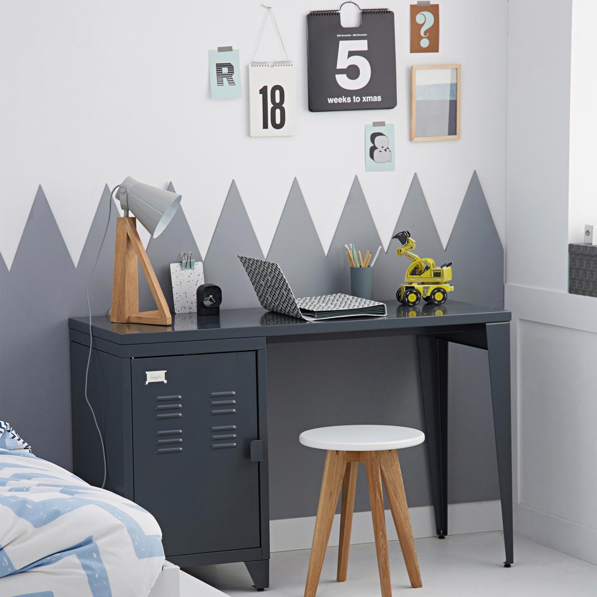 I love this little metal desk for its playful yet functional design - it offers a great balance of style and practicality. Its sleek, modern look works particularly well in contemporary interiors, but it can also add an unexpected touch of edge to more eclectic or industrial spaces. The compact size makes it ideal for smaller bedrooms or creative nooks, and you can style it with colourful stationery or a statement desk lamp to inject personality. For a tidy look, pair it with open shelving or wall-mounted organisers to keep the tabletop clear, creating a dedicated workspace that’s both inspiring and practical for children.