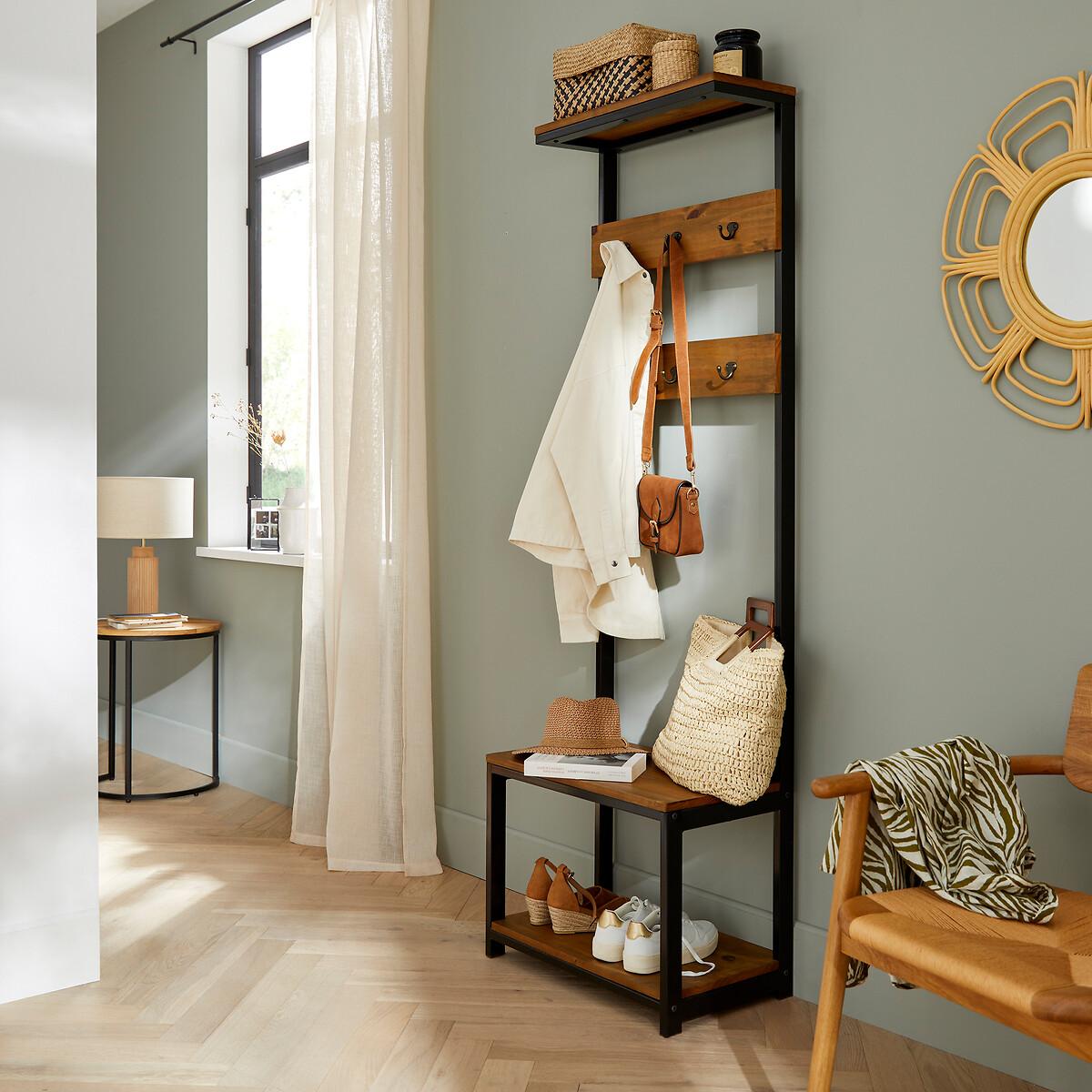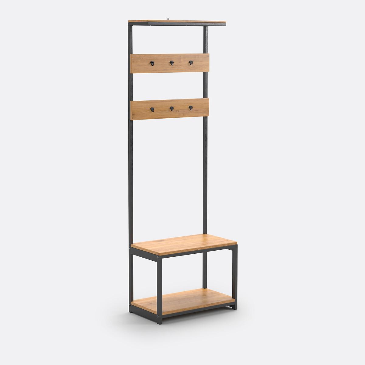 With its industrial design, the Hiba hall unit brings a vintage touch to your decor. With 6 hooks and a seat, it is ideal in an entranceway!