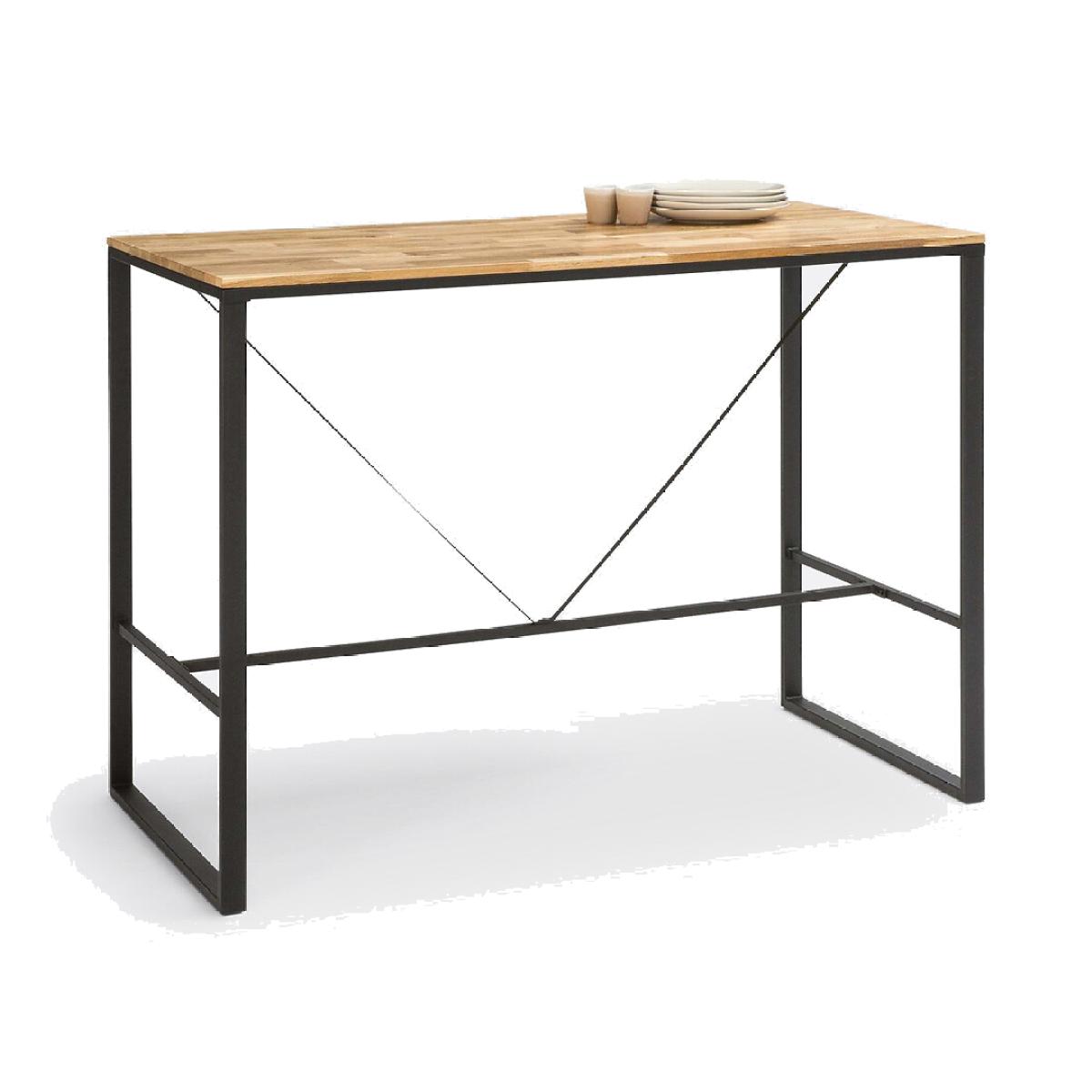 Add a note of utility chic to your kitchen with our Hiba Breakfast Bar. Inspired by retro industrial furniture, you'll love its sober and resolutely on-trend lines. Product Details • Seats 4-6 • Built-in protection pads • Jointed solid oak top with a nitrocellulose varnish finish • Structure and sled base in matte black lacquered steel, slightly raised epoxy finish • Assembly: Approximately 1 hour, 2 people (minimum)Care instructions • To protect your table, consider trivets, coasters and placemats. Dimensions • L140 x H105 x D70 cmDelivery:. Assembly required. Available for home delivery. Note! Please check that all access points are large enough to accommodate your delivery (doors, stairs, lifts).Parcel Dimensions1 parcel • L148 x H16 x D80 cm • 26.2kg