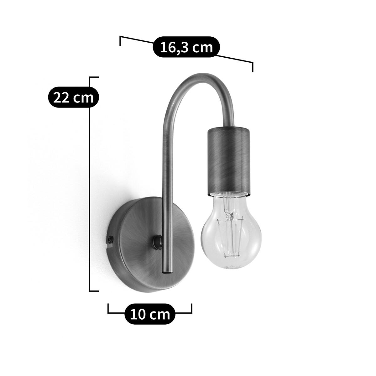 Composed of a wall plaque and a fixed tubular metal arm, the Hiba wall lamp showcases a graphic design. Product Details • Iron structure covered with epoxy paint or brass finish • E27 socket for LED bulb of 10W max (not included)Dimensions • Width: 10cm • Height: 22cm • Depth: 16.3cm. Dimensions and weight of parcel1 parcel • L21 x H27 x D15cm. 0.53kg.