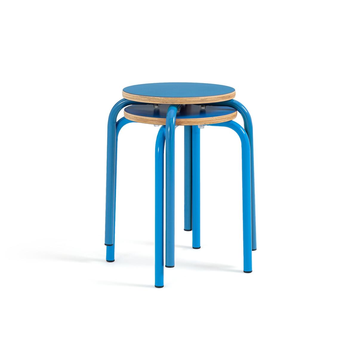 I love this little guy for its versatile blend of industrial steel and natural wood, making it adaptable to a wide range of interiors. It works particularly well in modern, minimalist, or contemporary settings, where its clean lines and pop of colour can make a subtle statement. Practically, its stackable design maximises storage when not in use, making it ideal for smaller spaces or multi-functional areas. For styling tips, try pairing it with colourful cushions or throws to add comfort, or use it beside a desk, worktop, or as a supplementary seating option in casual dining or social spaces. Its durability and simple aesthetic make it a practical yet stylish addition to almost any room.