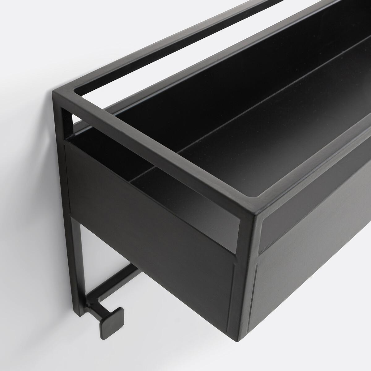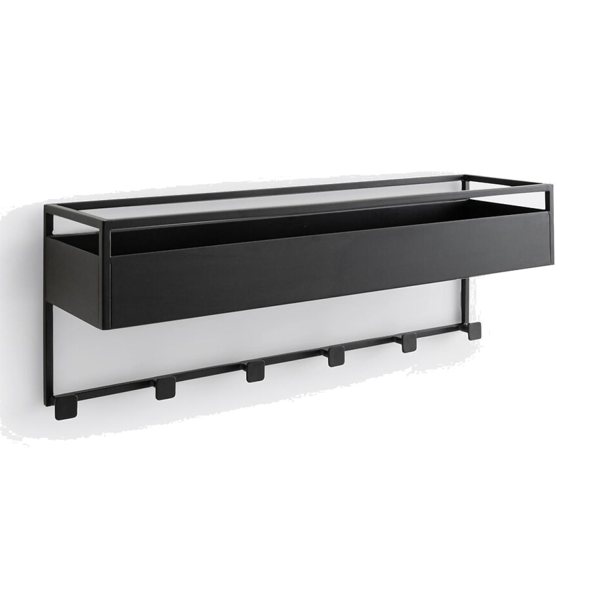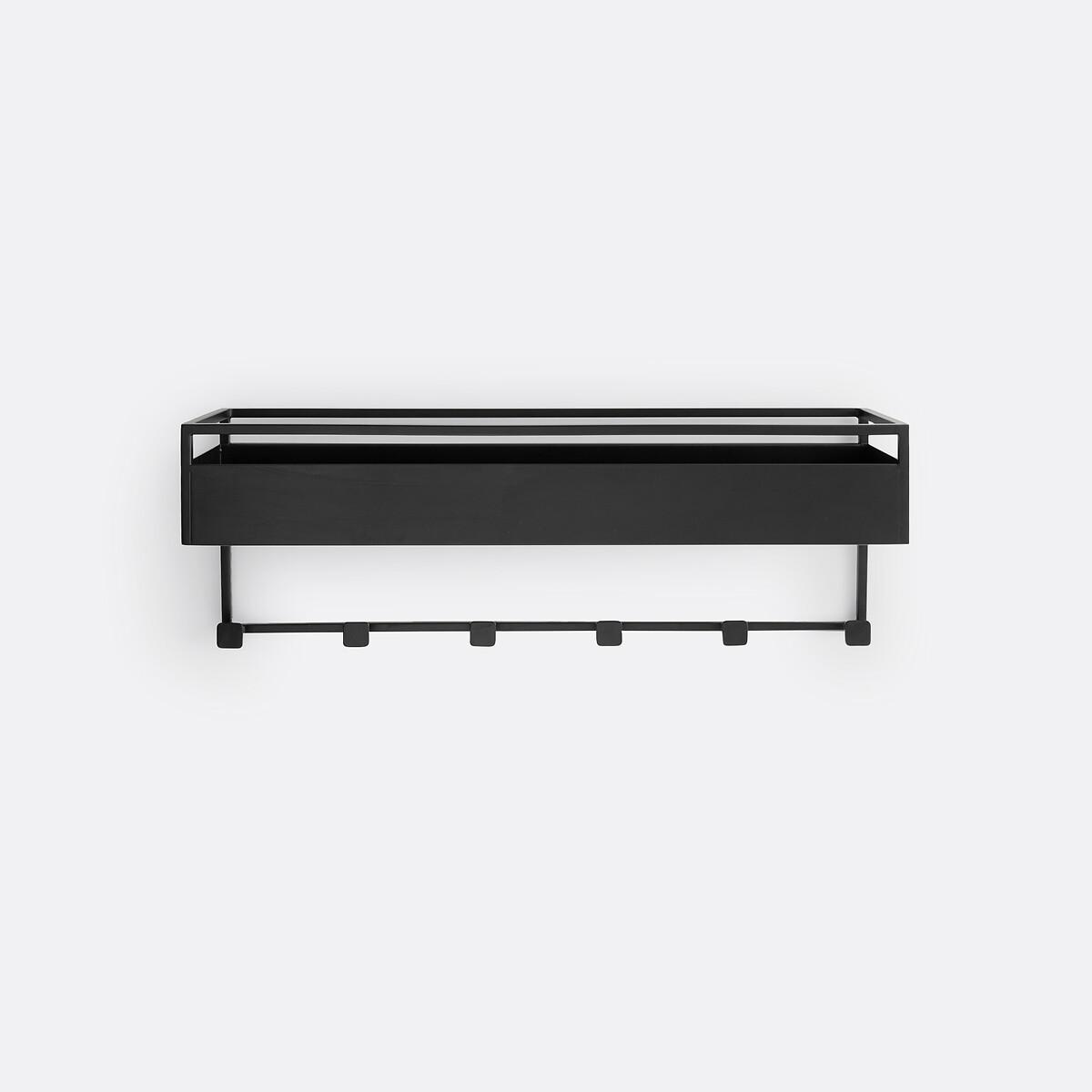 Sleek and modern. The Hiba collection creates beautiful designs from metal. Enjoy its modern and graphic design. Fixed to the wall, this shelf/storage bin with 6 hooks will accommodate jackets, hats and other accessories while freeing up floor space. Created by La Redoute Interiors. Product Details • Black steel, epoxy finish • Steel tubes diameter 1cm • 1 shelf/storage bin + 6 hooks • Wall mounting system included (screws and plugs not included)Dimensions. Overall • Width: 70cm • Height: 25cm • Depth: 19cm • Weight: 5kg. Usable space • Interior of the bin: L68 x H10 x D17cmDelivery:. Sold pre-assembled. Available for home delivery. Parcel dimensions and weight1 parcel • L76 x H26 x D33cm. 6.25kg.