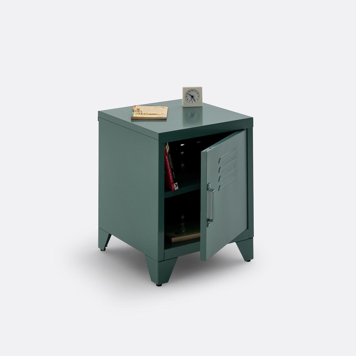 Hiba metal bedside table with one door. The Hiba bedside table is a small, stylish piece of occasional furniture and also comes in a range of attractive on-trend, colours with a striking industrial look. Product Details • 1 door. • 1 removable inside shelf. • Steel coated with epoxy paint. Dimensions. Total: • Width: 40cm • Height: 50cm • Depth: 40cm. Shelf: • 35.6 x 39.7cm. Base: • 8.5cmDelivery:. This product requires assembly. Available for home delivery. Parcel Dimensions:1 parcel • 49 x 23 x 46.5cm • 9.7kg