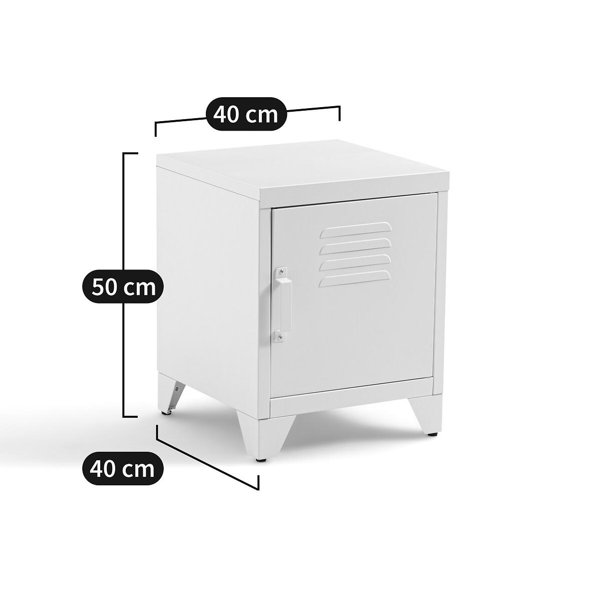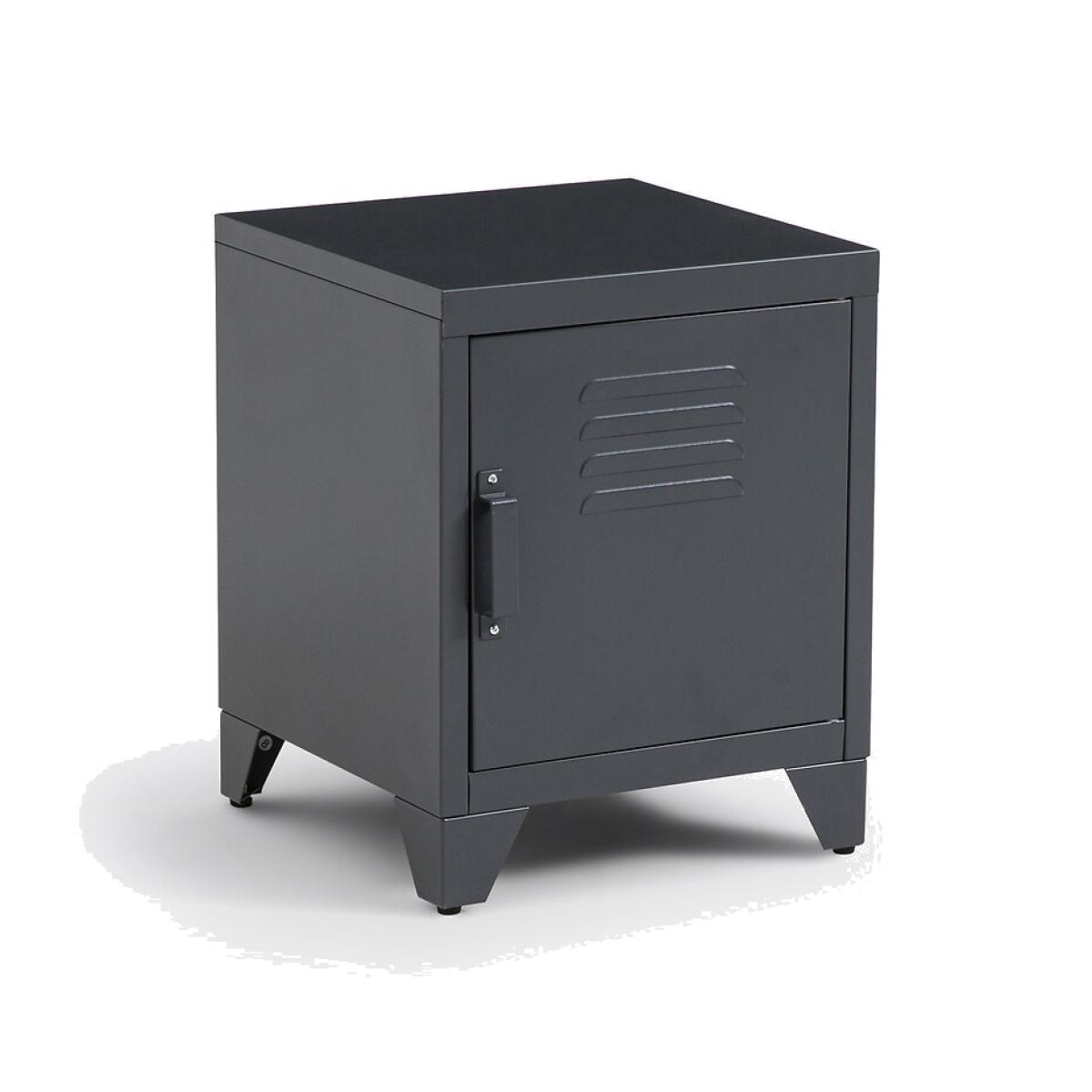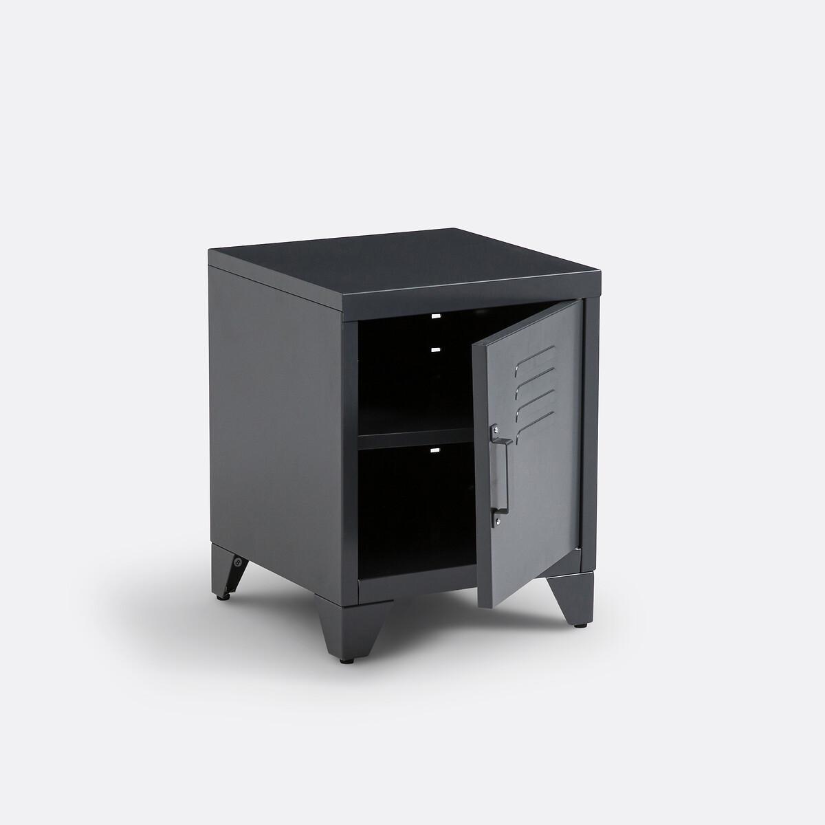 Hiba metal bedside table with one door. The Hiba bedside table is a small, stylish piece of occasional furniture and also comes in a range of attractive on-trend, colours with a striking industrial look. Product Details • 1 door. • 1 removable inside shelf. • Steel coated with epoxy paint. Dimensions. Total: • Width: 40cm • Height: 50cm • Depth: 40cm. Shelf: • 35.6 x 39.7cm. Base: • 8.5cmDelivery:. This product requires assembly. Available for home delivery. Parcel Dimensions:1 parcel • 49 x 23 x 46.5cm • 9.7kg