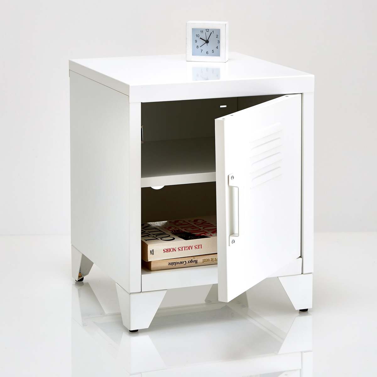 This bedside table is a small, stylish piece of occasional furniture and also comes in a range of attractive on-trend, colours with a striking industrial look.