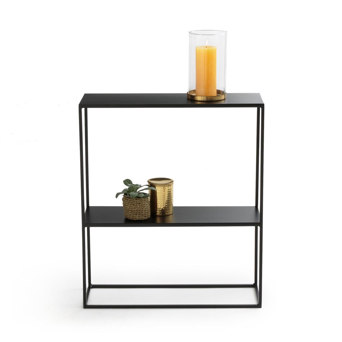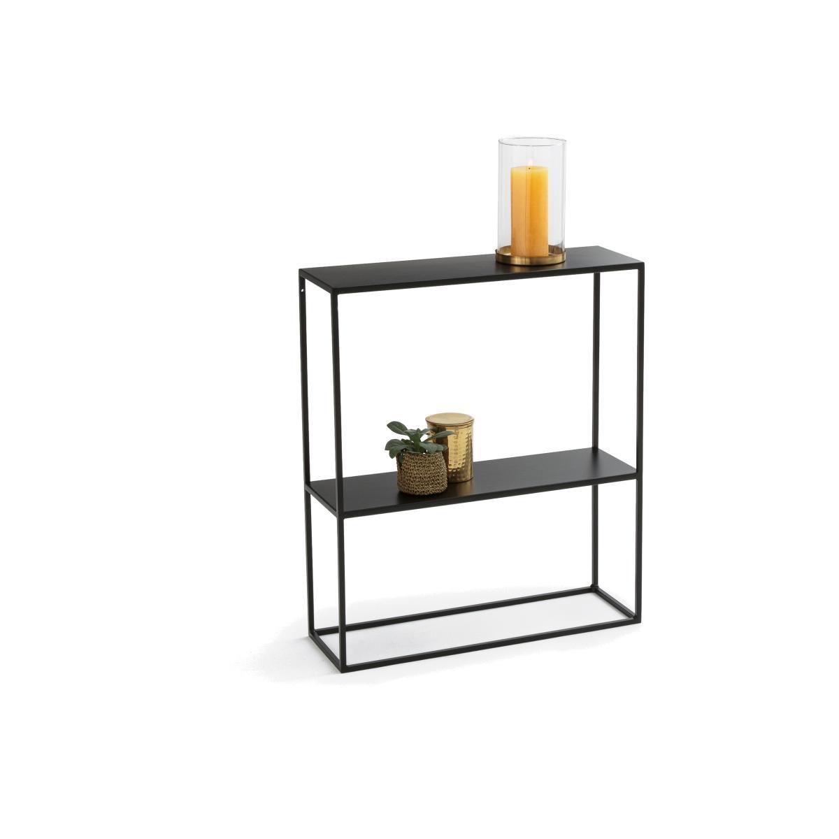 Hiba two-tier metal console table. Its shallow depth allows this compact console to fit small spaces beautifully. Its sleek design will perfectly display decorative objects and gorgeous green plants.