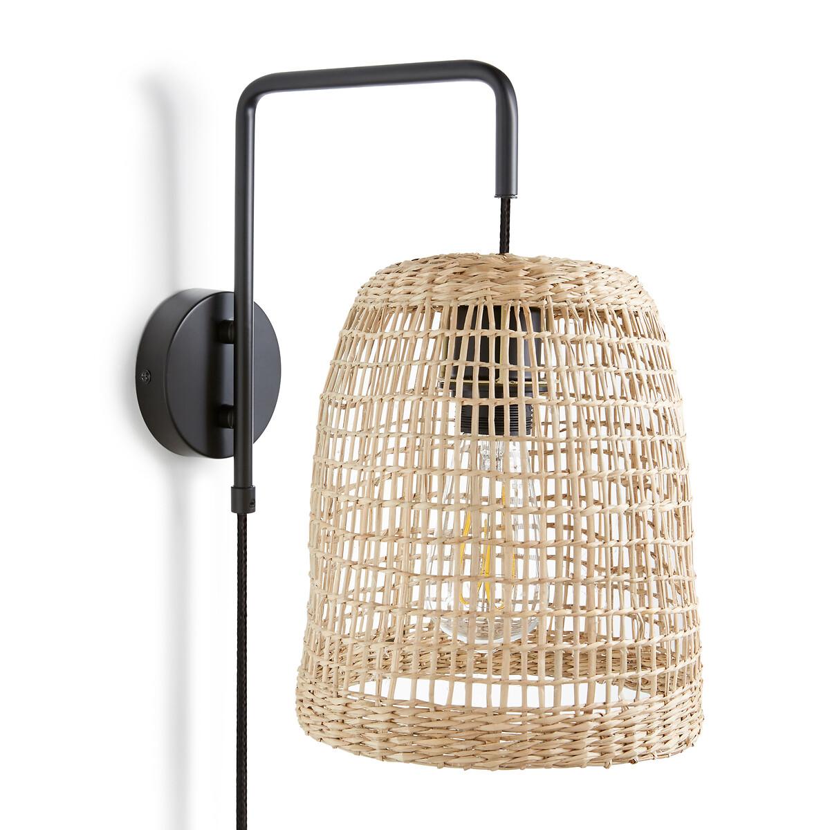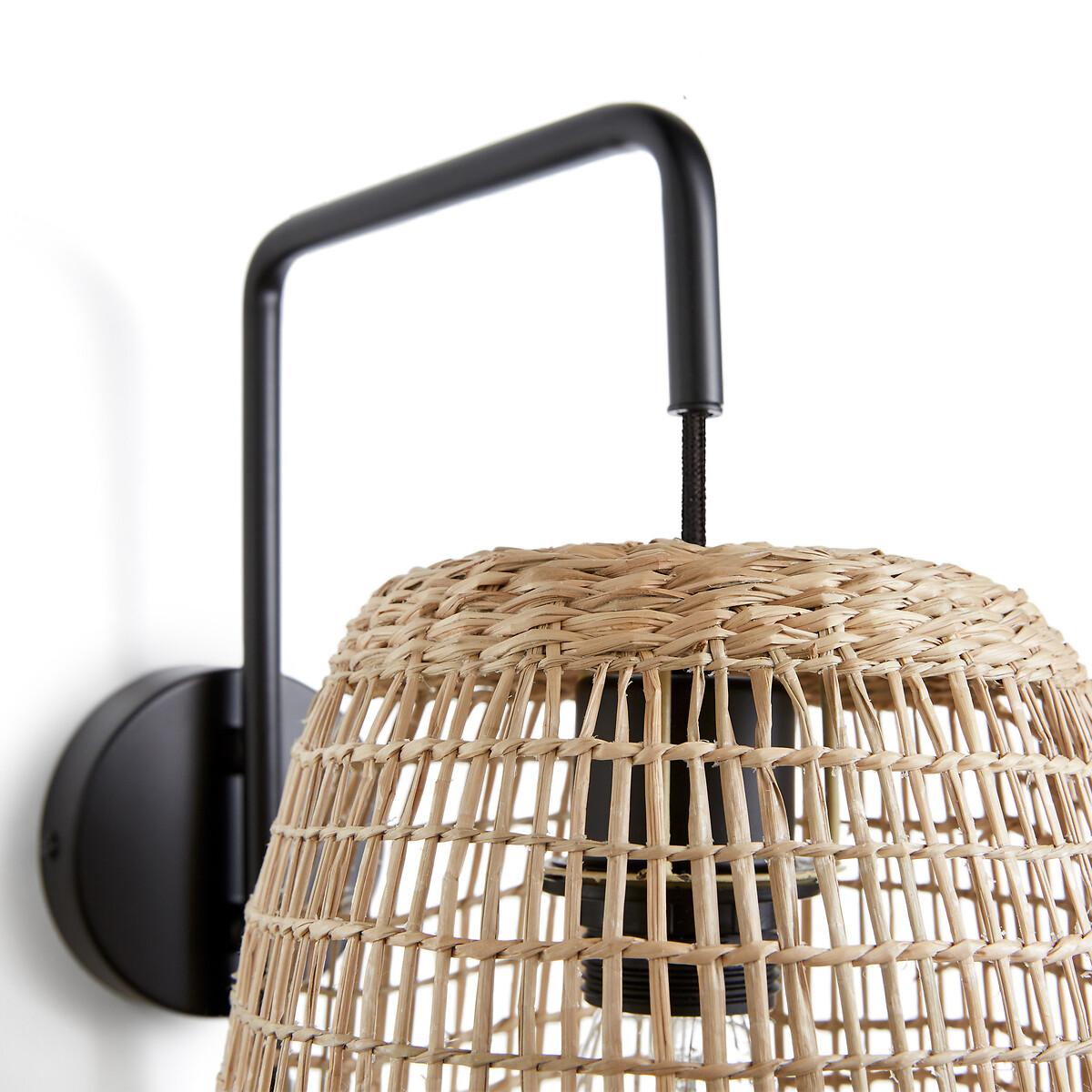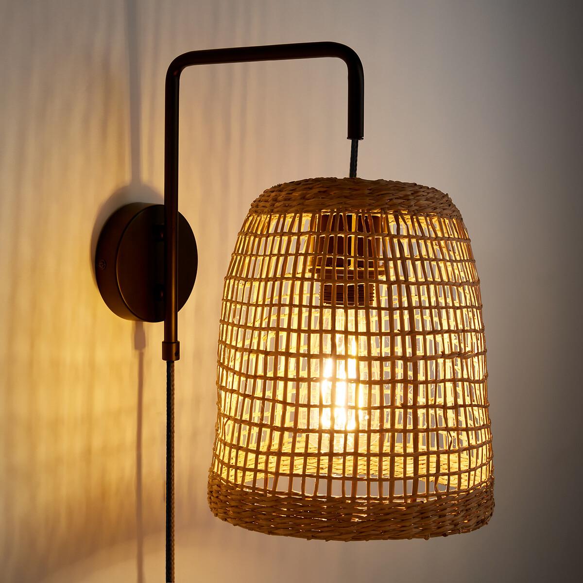 Subtle and discreet, this console table is a nod to the neo industrial trend: the Hiba range favours metal. The Hiba wall lamp seduces with its graphic line and refined design. Combine with the lampshade of your choice to create a unique wall lamp. Product Details • Wall lamp without iron shade, covered with black epoxy paint • Cotton covered twisted cable • E27 socket for 60W max bulb (not included) • Lampshade not included, sold on our site • Max weight of lampshade: 0.6kg. Dimensions • Width: 10cm • Height: 25.5cm • Depth: 24cm • Base : Diameter 10cm. Dimensions and weight of parcel1 parcel • L30 x H13.5 x D26.5cm. 0.72kg.