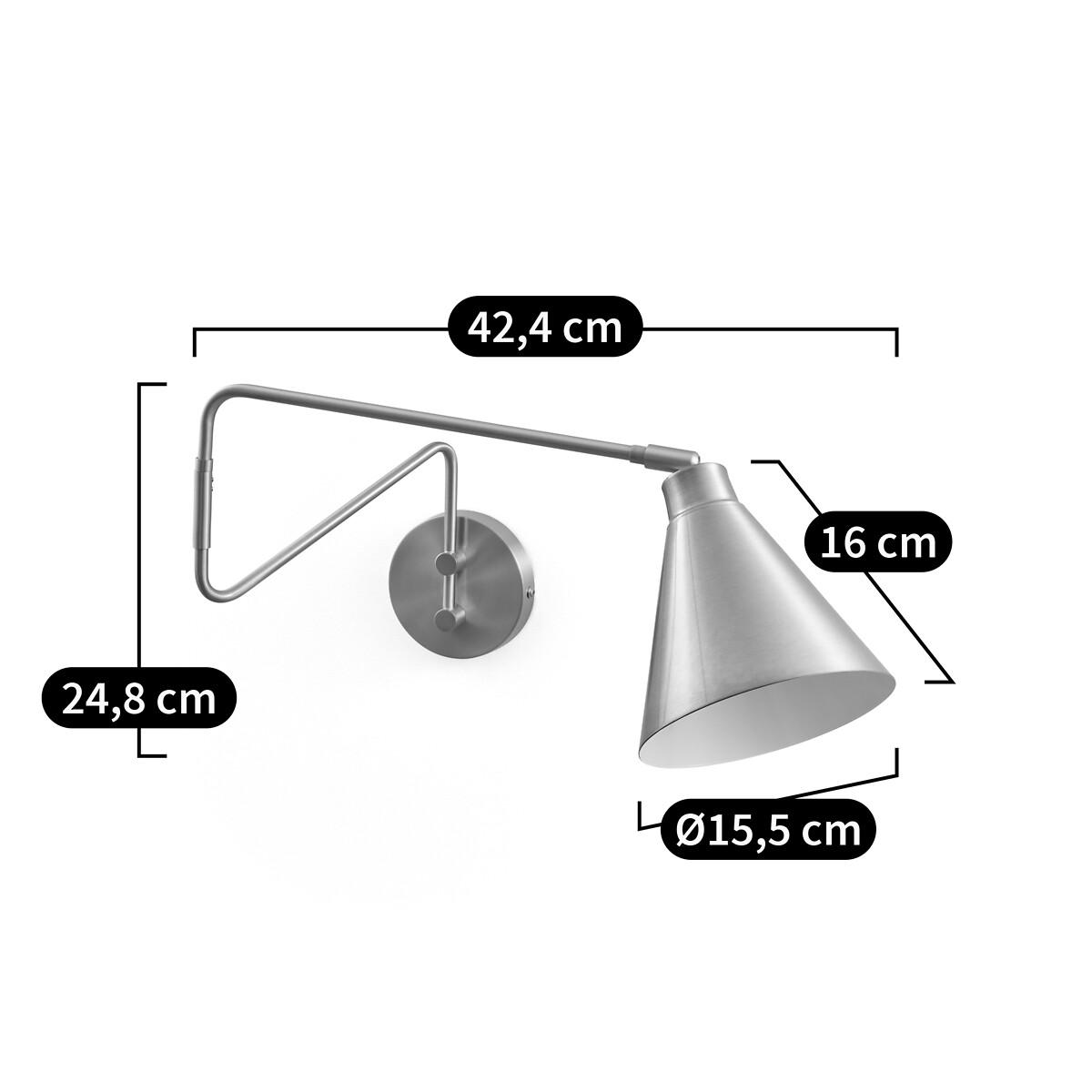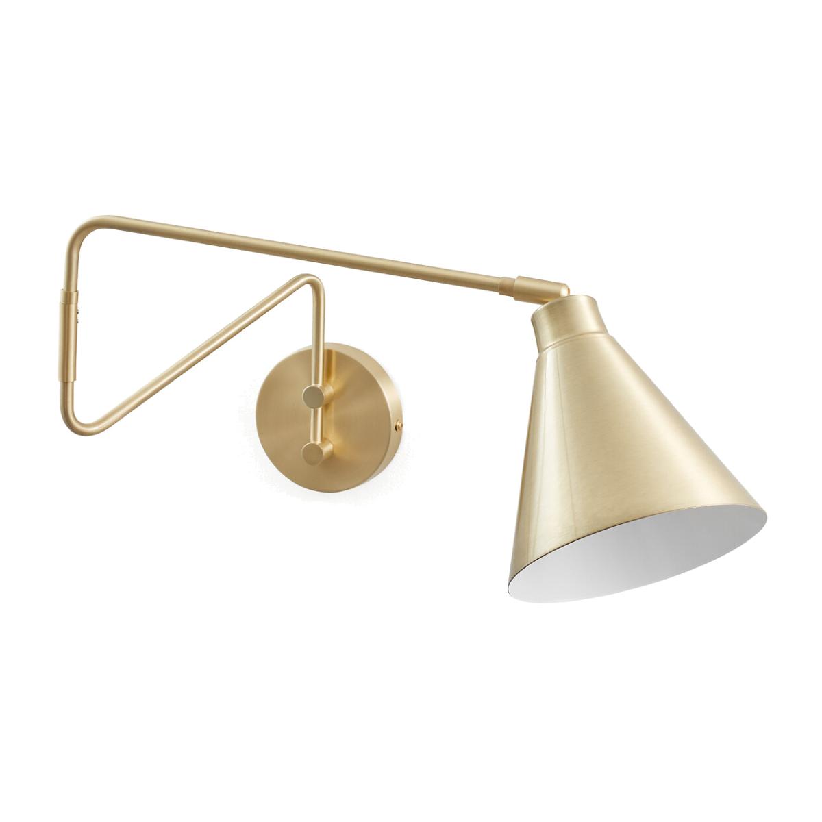 With its sleek design and adjustable lampshade, Hiba provides a source of light wherever you want it.!Product Details • Non-reversible wall light • Iron structure covered with epoxy paint or brass finish • Adjustable lampshade • E14 socket for LED bulb of 4W max (not supplied)Dimensions • Width: 15.5cm • Height: 24.8cm • Depth: 42.4cm • Lampshade:Diameter 15.5 x H16cm. Dimensions and weight of parcel1 parcel • L49.5 x H20.5 x D31cm. 1.1kg
