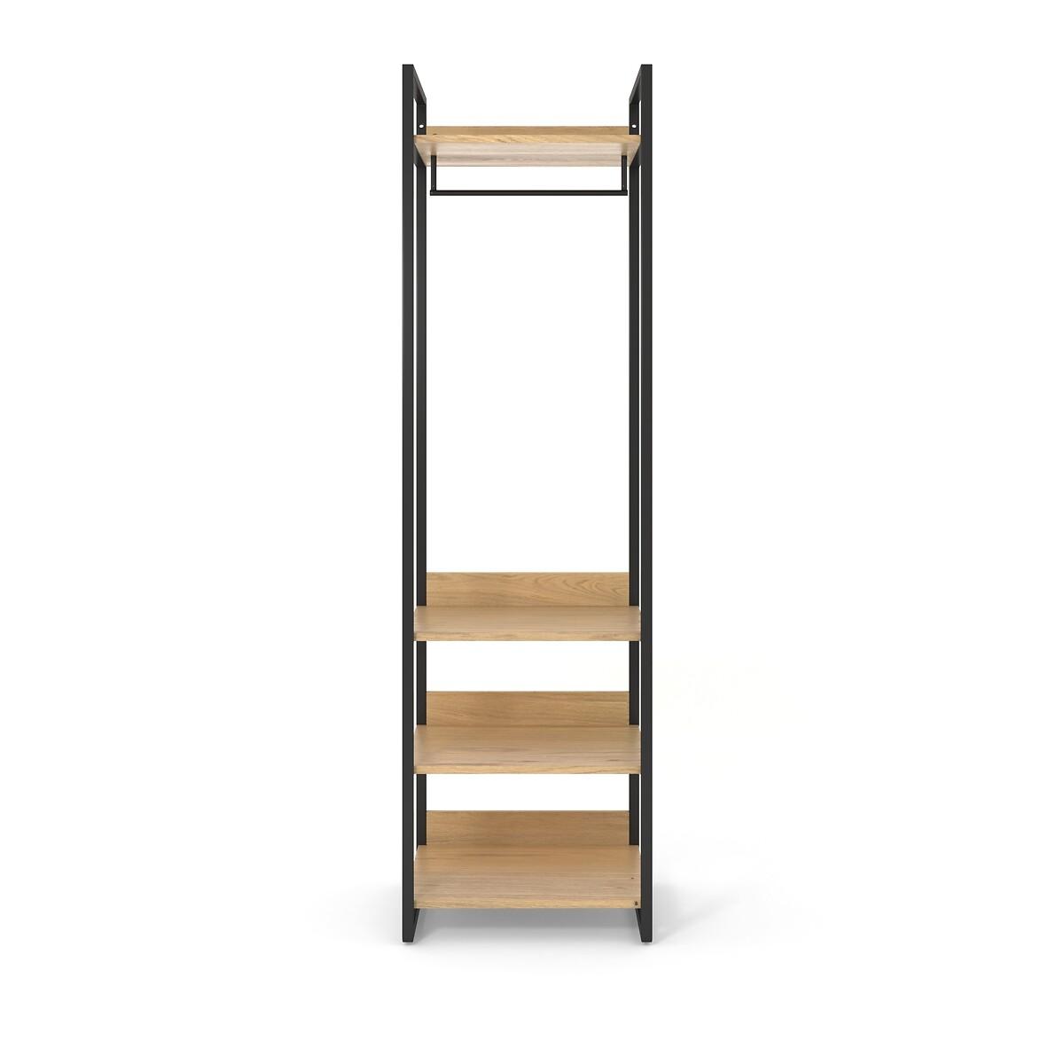 The Hiba wardrobe module with 3 shelves. It offers different kinds of storage spaces: 3 generously sized shelves at the bottom. Clothes rail at the top. Attaches to the wall or adapts to other HIBA walk-in closet modules. Product Details: • 1/2 open hanging space with one shelf. • 1/2 open shelving space - 3 shelves. • Matt black metal structure. • Compartments and shelves in solid pine with a nitrocellulose stain finish. Dimensions : • Length: 55cm • Depth: 58cm • Height: 193cm. Browse other items from the Hiba collection online at La Redoute..Dimensions and weight of parcel: • Length. 203.5 x Width. 67.5 x Height. 9.5cm. 26kg. Home Delivery:Sold for self-assembly. It will be delivered to your door!Note! Please check that all access points are large enough to accommodate your delivery (doors, stairs, lifts).