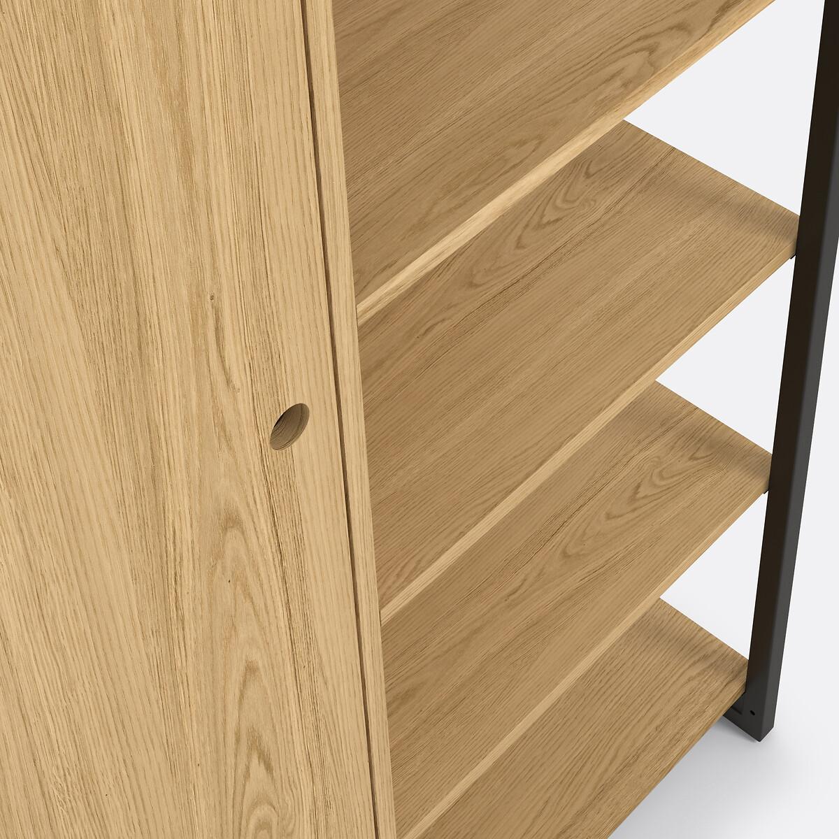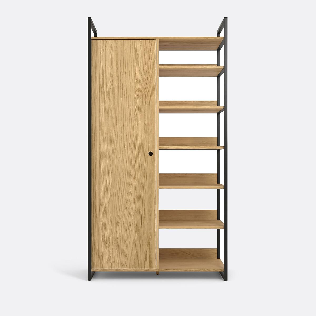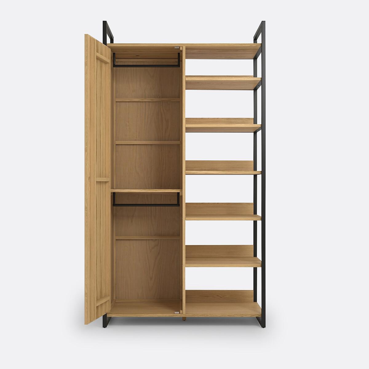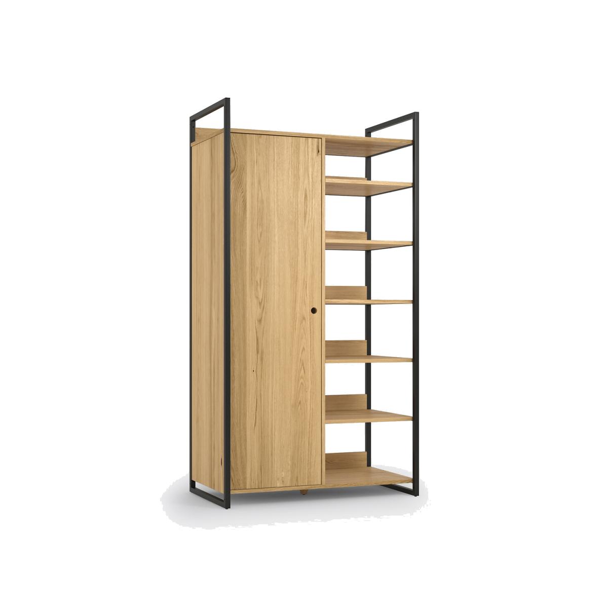 The Hiba modular wardrobe. The ultimate in storage space ! Product Details • With a clothes rail on one side and 6 shelves on the other, this unit covers all bases. Attaches to the wall, or adapts to other Hiba walk-in closet modules. • Closed hanging space with door, 2 clothes rails and a shelf in one half of the unit. • Open shelving space with 6 shelves in the other half of the unit. • Matt black metal structure. • Compartments and shelves in solid pine with a nitrocellulose stain finish. Dimensions • Length: 100cm • Depth: 58cm • Height: 193cm. Dimensions and weight of parcel: • 2 parcels. • Long. 203.5 x Width. 67.5 x Height. 17cm. 49kg. • Long. 176.5 x Width. 61.5 x Height. 17.5cm. 29kg. Delivery:Assembly required. Available for home delivery. Note! Please check that access points (doorways, stairways, lifts) are wide enough to accommodate your delivery. • WOOD FROM MORE SUSTAINABLY MANAGED FORESTS AND CONTROLLED SOURCES. FSC® Mix wood contains at least 70% FSC® certified and/or recycled wood, the remainder being FSC® controlled wood.