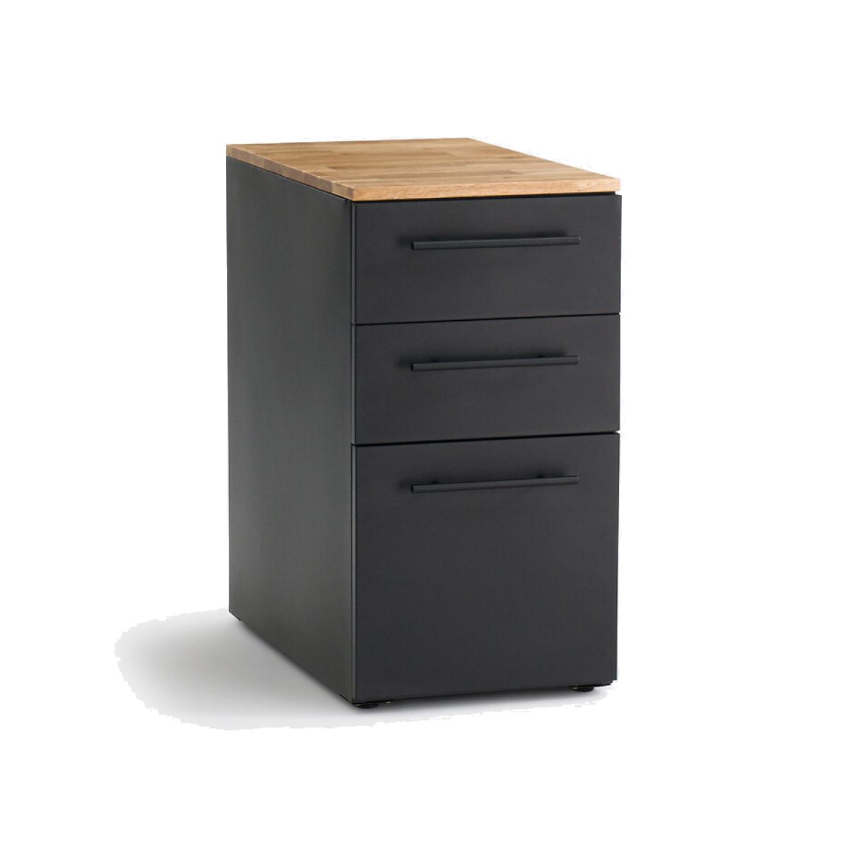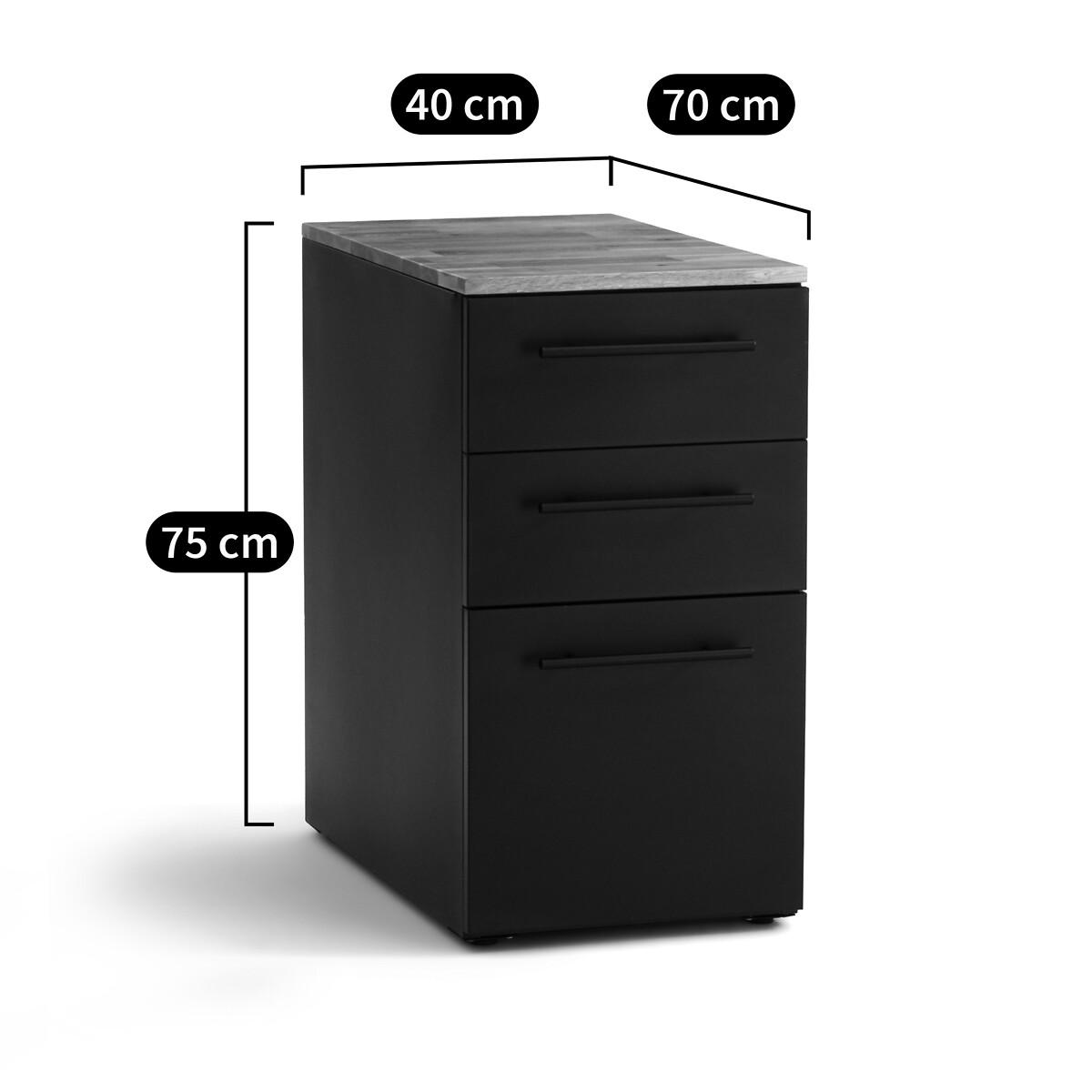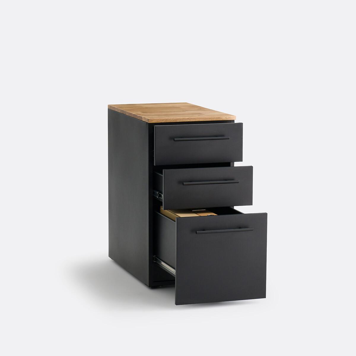 The Hiba 3-drawer desk cabinet frees up maximum storage space for your documents. Created by La Redoute Interiors. Product Details • Metal housing, epoxy finish • Solid oak table top with nitrocellulose varnish finish • 3 drawers with metal slides • Combine with Hiba desk-bookcase • Requires assemblyDimensions. Overall • L40 x H75 x D70cm. • Weight: 23.5kg. Usable dimensions:Small drawer: L34 x H12 x D48cm. Large drawer: L34 x H23.5 x D48cm. Dimensions and weight of parcel1 parcel • L92 x H72 x D14cm. 26kg
