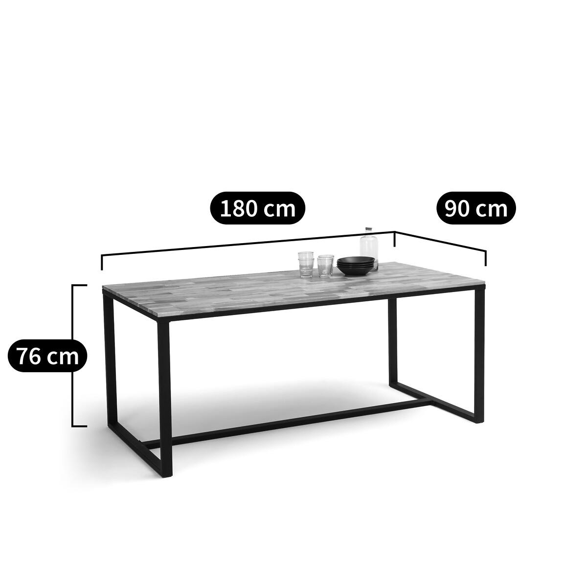This contemporary dining table channels industrial design with its angular steel frame and solid oak top. Suitable for 4/6 diners, it's part of our Hiba collection: a range of coordinated furniture, directly inspired by old industrial furniture. Fans of Warehouse chic will love its sober and resolutely on-trend lines. Product Details • Seats up to 8. • Adjustable protective pads integrated into the base. • Jointed solid oak top with a nitrocellulose varnish finish. • Structure and sled base in matt black lacquered steel, epoxy finish, slightly raised finish. • Assembly: Approximately 1 hour, 2 people (minimum)Care instructions • To protect your table, consider trivets, coasters and placemats. Dimensions • L180 x H76 x L90cm. Delivery:This product is sold for self-assembly. Parcel dimensions and weight: • 1 parcel. • 190.5 x 101.5 x 17.5cm. 40kg.