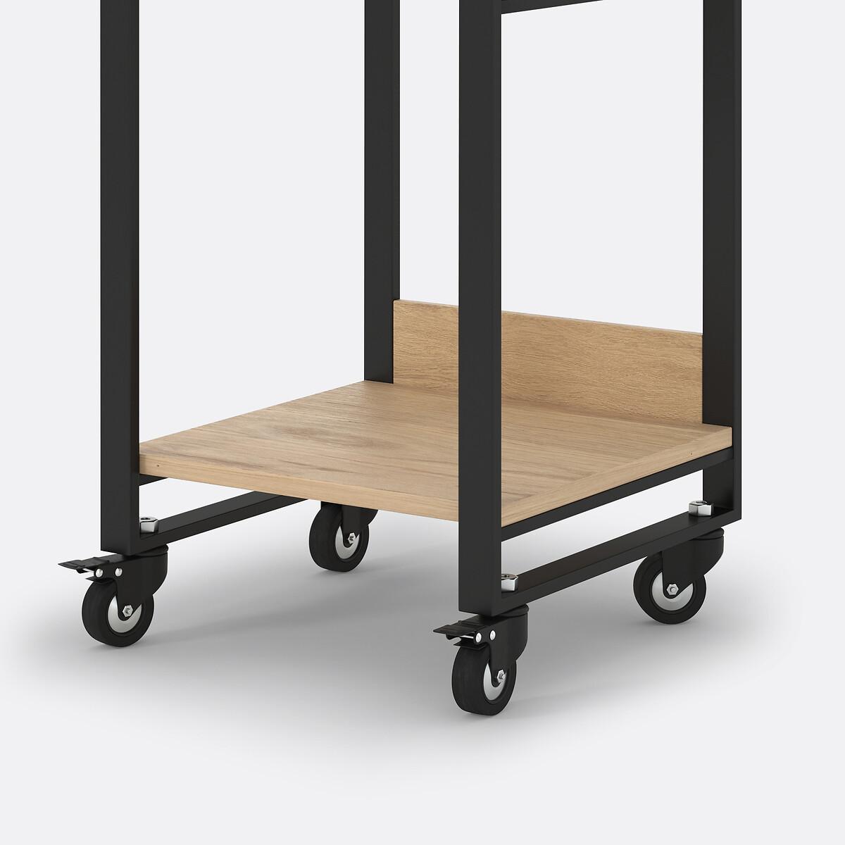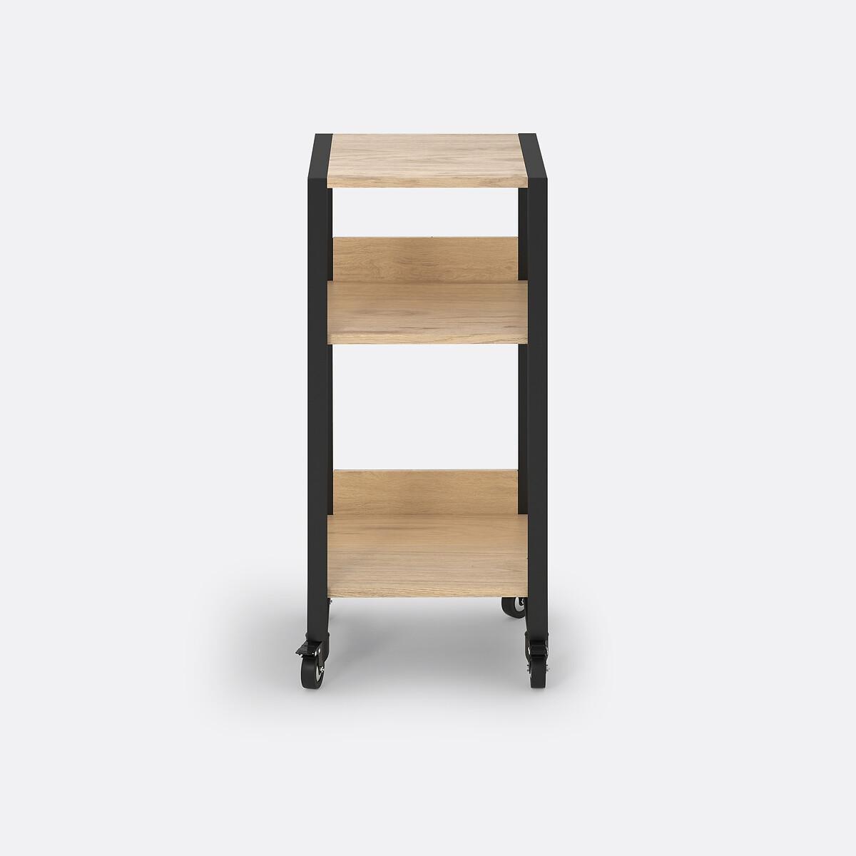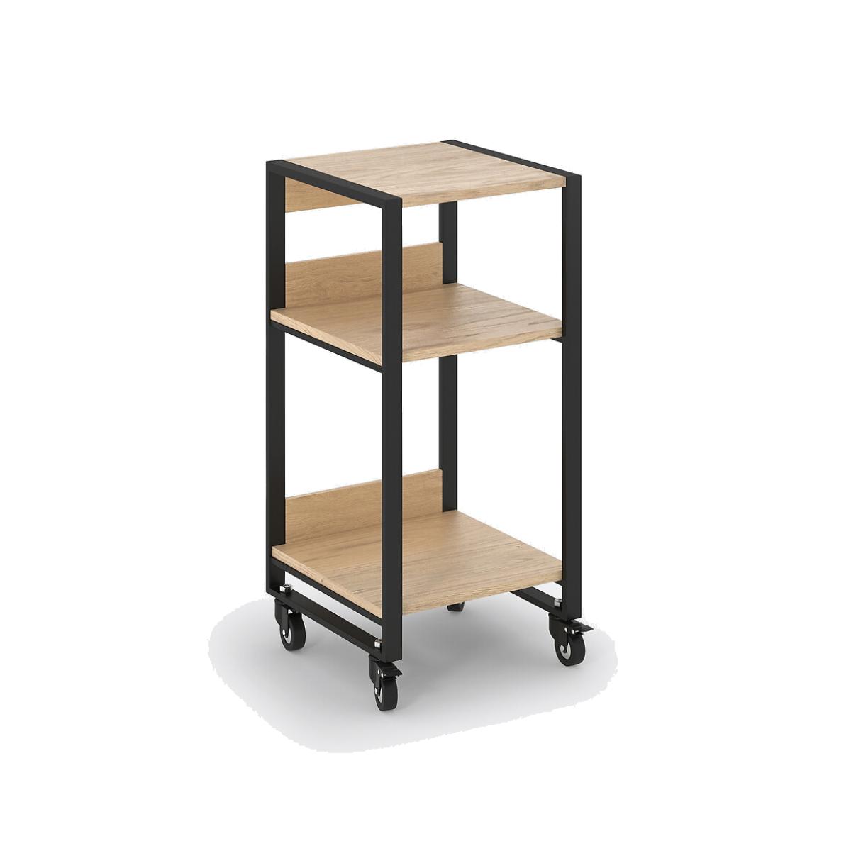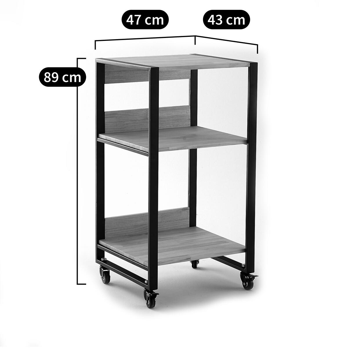 Hiba rollout storage trolley. This is easy to move wherever it's needed! Great for storing crockery or other kitchenware and ideal as a hostess trolley with 3 good sized shelves. Product Details • 3 shelves • 4 casters • Matt black metal structure • Lightly oiled joined pine shelvesDimensions. Total: • Width 47cm • Depth: 43cm • Height: 89cmDelivery:. Assembly required. Available for home delivery. Note! Please check that all access points are large enough to accommodate your delivery (doors, stairs, lifts). • WOOD FROM SUSTAINABLY MANAGED FORESTS. FSC® certified wood comes from forests that are environmentally, socially and economically well managed. Parcel Dimensions:1 parcel • Long. 105 x Width. 49 x Height. 15.5cm • 18.5kg