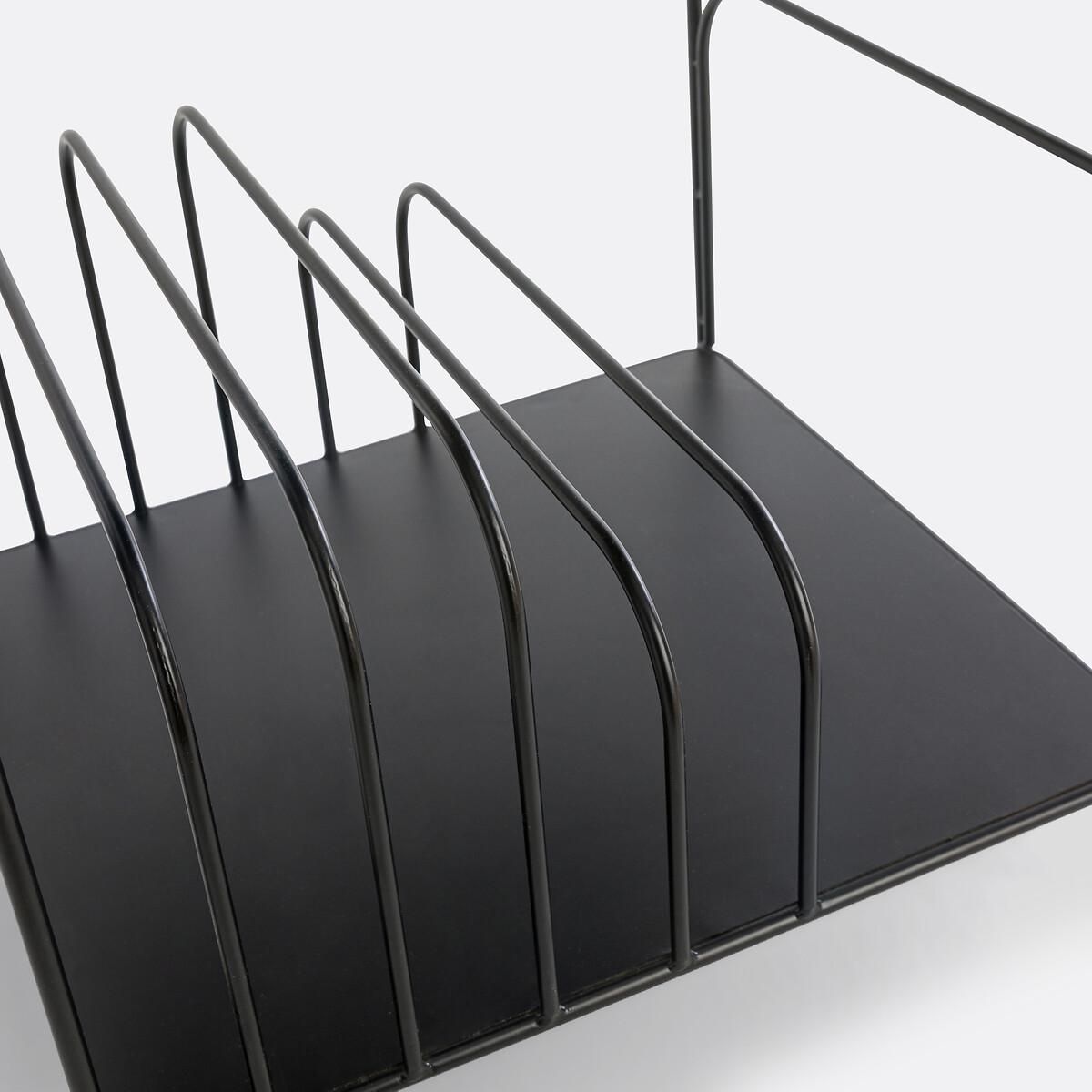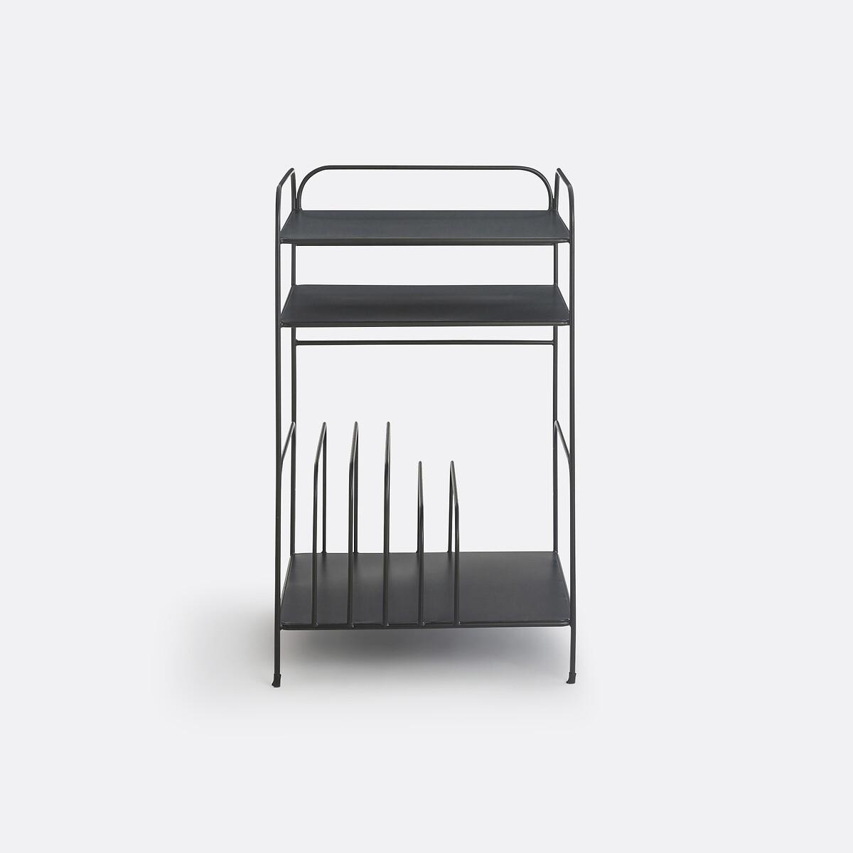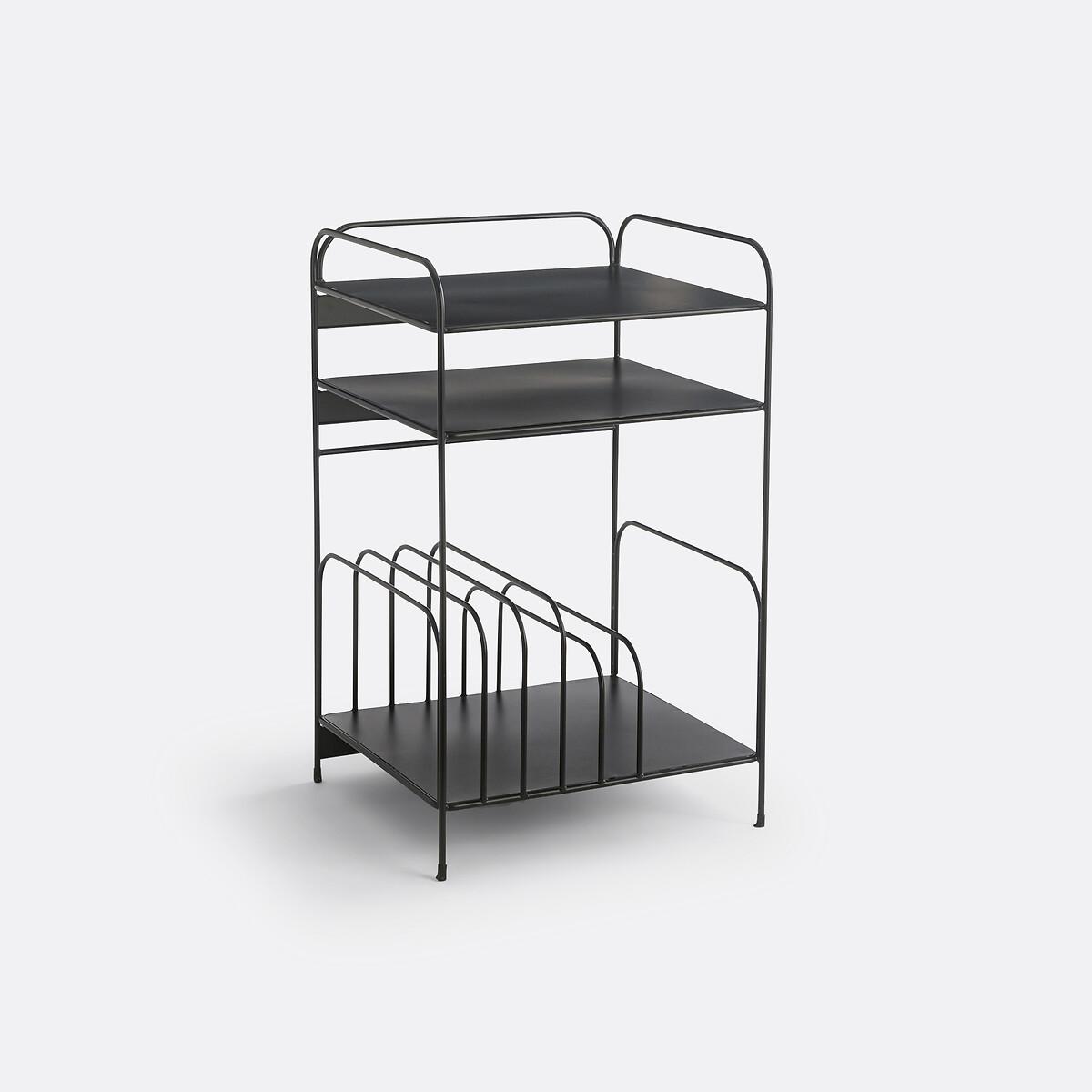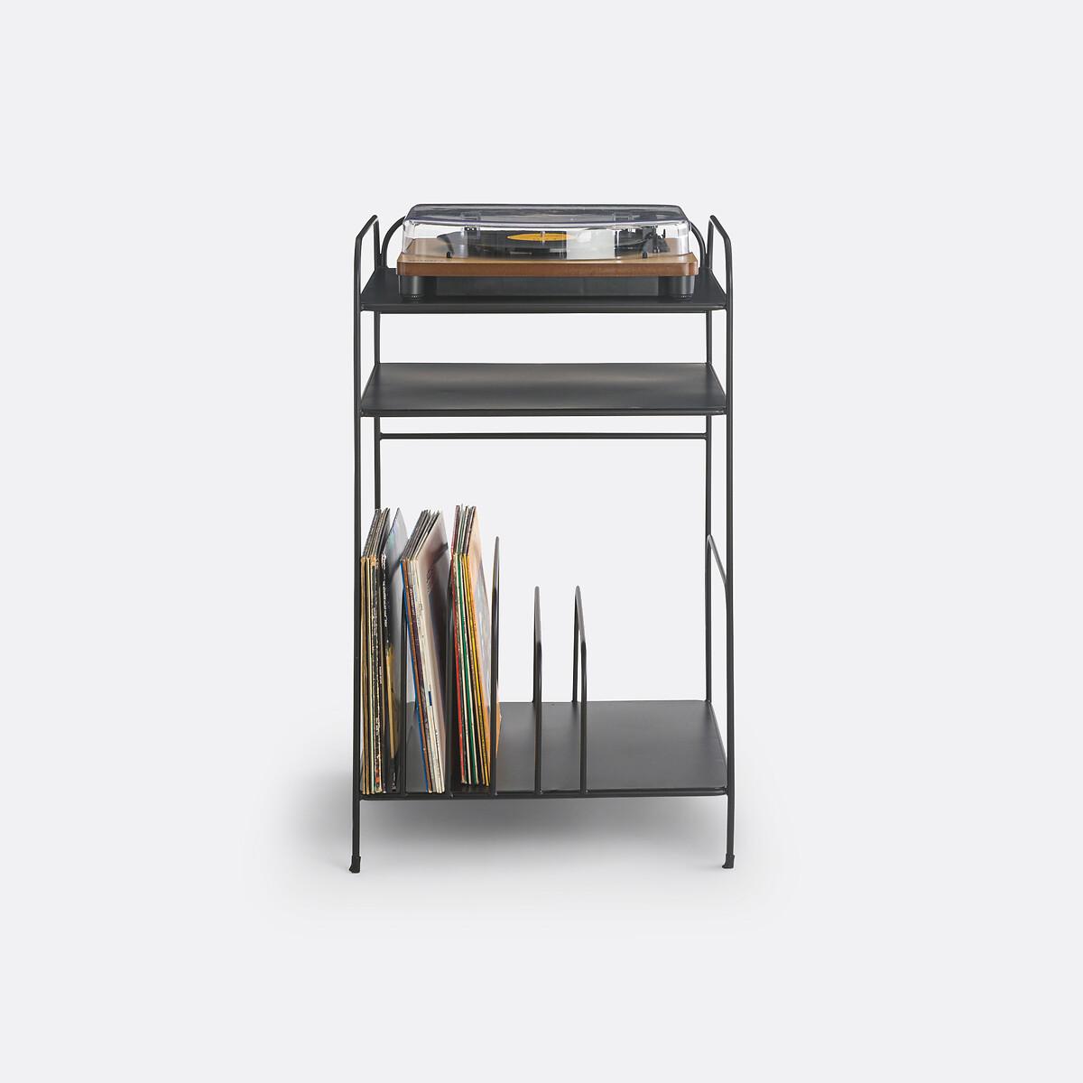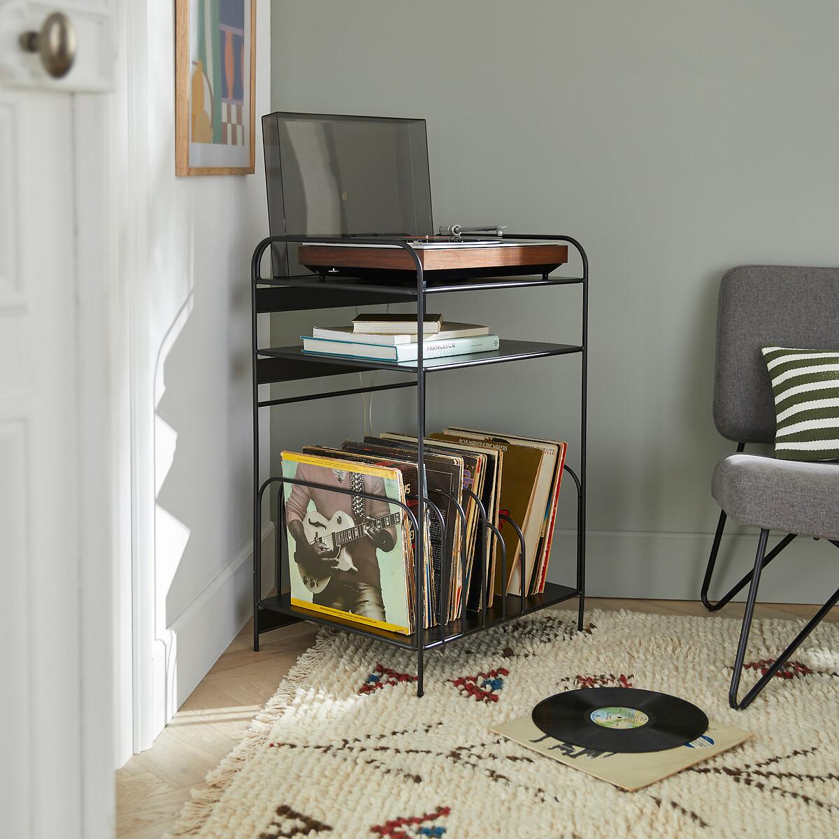 Subtle and discreet, this console table is a nod to the neo industrial trend. The Hiba range really shows off metal to its best advantage. Enjoy its modern and graphic design. Functional, this piece of furniture is ideal for storing your vinyls. Created by La Redoute Interiors. Product Details • In matt black lacquered steel with epoxy finish • Storage for vinyl records at the bottomDimensions. Overall • Length: 52cm • Height: 84.5cm • Depth: 46cm. Usable space • Height between top shelf and middle shelf: 14cm • Height between lower shelf and middle shelf: 51cm • Spacing for storing vinyls: 5.2cmDelivery:. Sold pre-assembled. Available for home delivery. Note! Please check that all access points are large enough to accommodate your delivery (doors, stairs, lifts).Dimensions and weight of parcel • 1 parcel • L58 x H90 x D52cm. 31kg