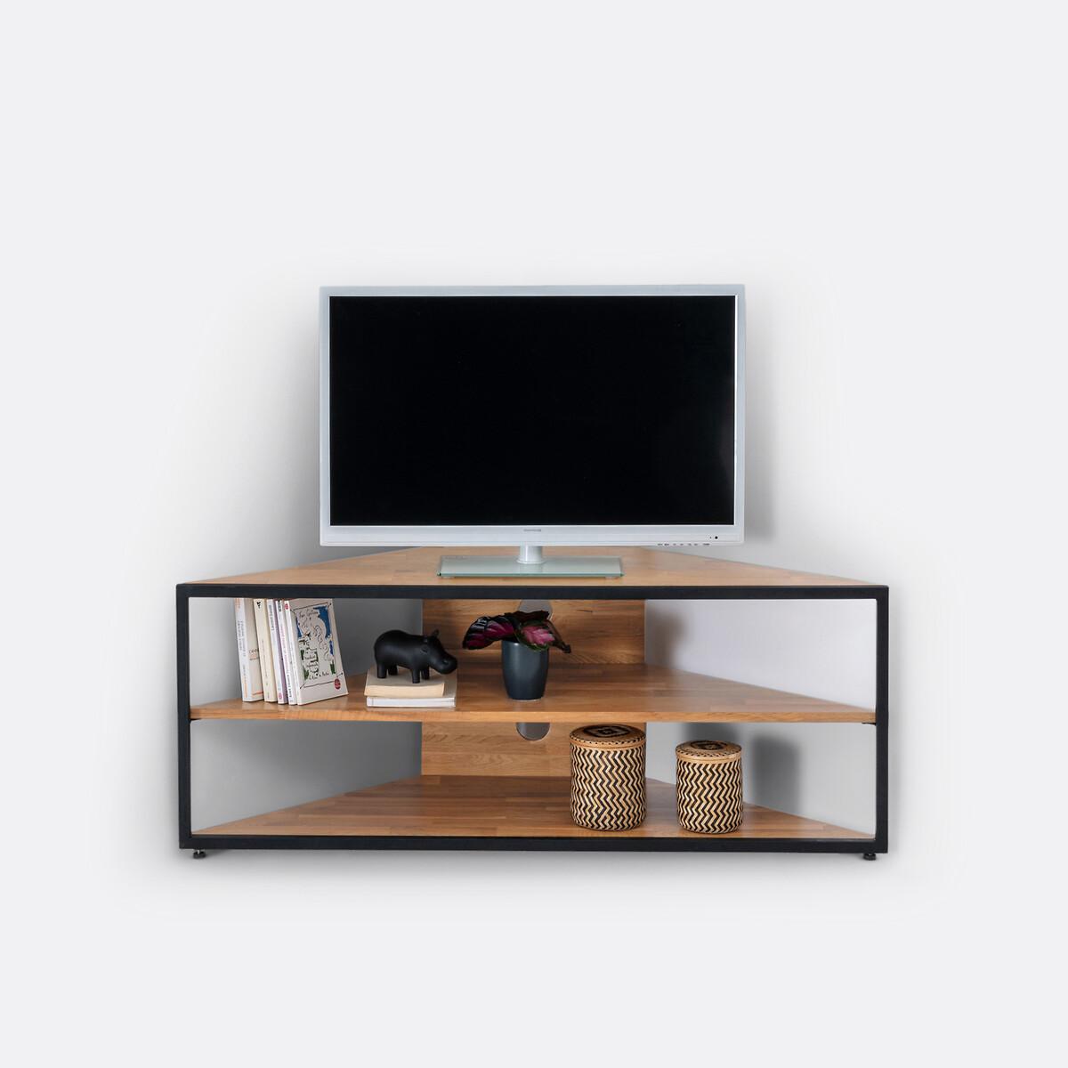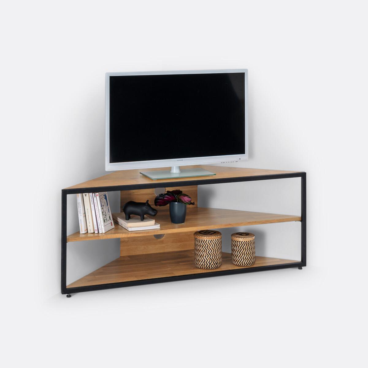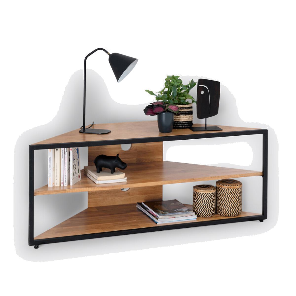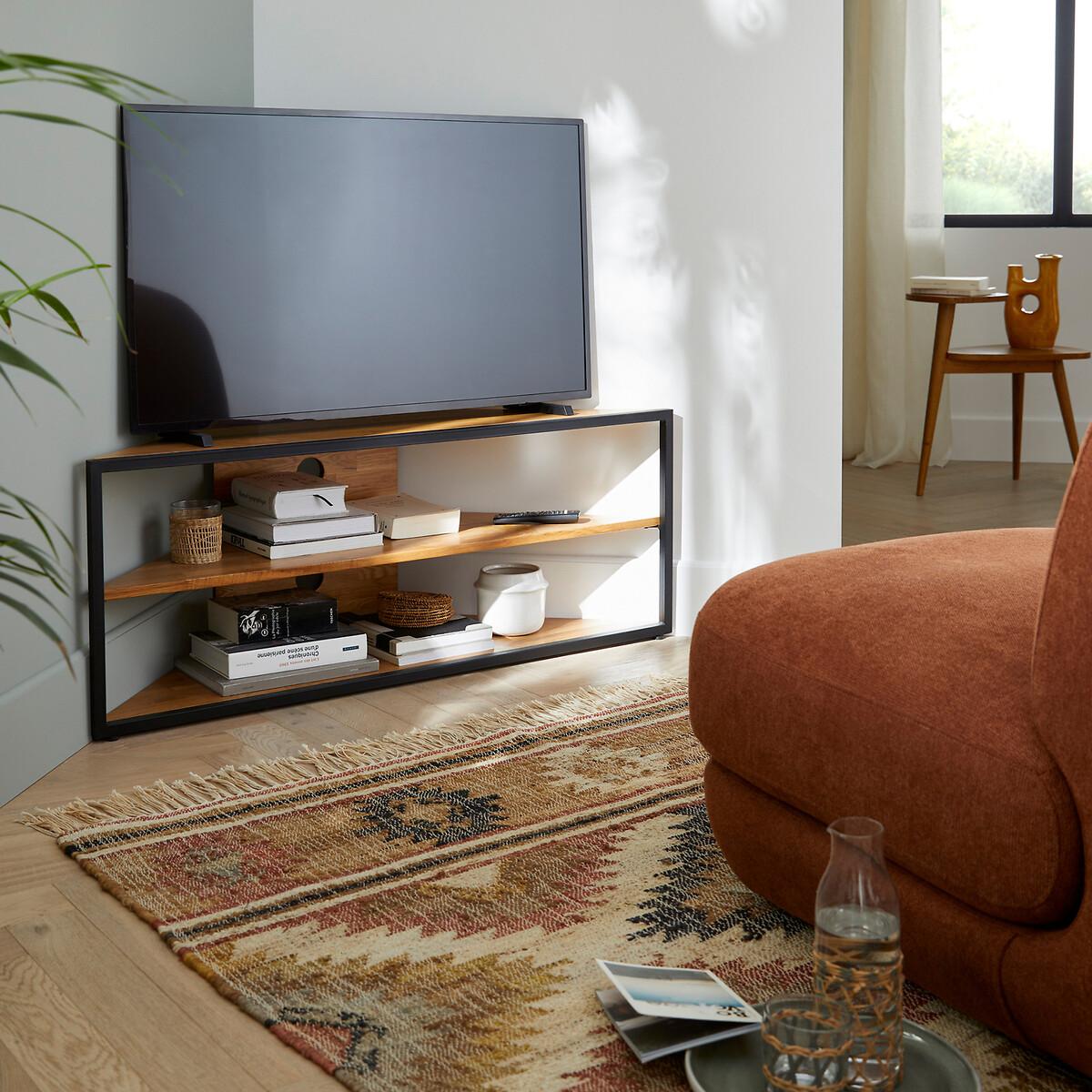 Solid oak and metal: Hiba rejuvinates the industrial style. As graphic as it is contemporary, this corner unit accommodates TV (of course), High Tech equipment, magazines... With the Hiba range, it's up to you to create the interior you want!A design exclusive to La Redoute Interiors. Product Details • Solid, finger-jointed oak tops, nitrocellulose varnish finish • Black epoxy finish steel frame. Dimensions • Length: 120cm • Height: 45cm • Depth: 43cmDelivery:. Requires self-assembly. Available for home delivery. Note! Please check that all access points are large enough to accommodate your delivery (doors, stairs, lifts).Dimensions and weight of parcel1 parcel • L128.5 x H14 x D53.5cm. 21kg