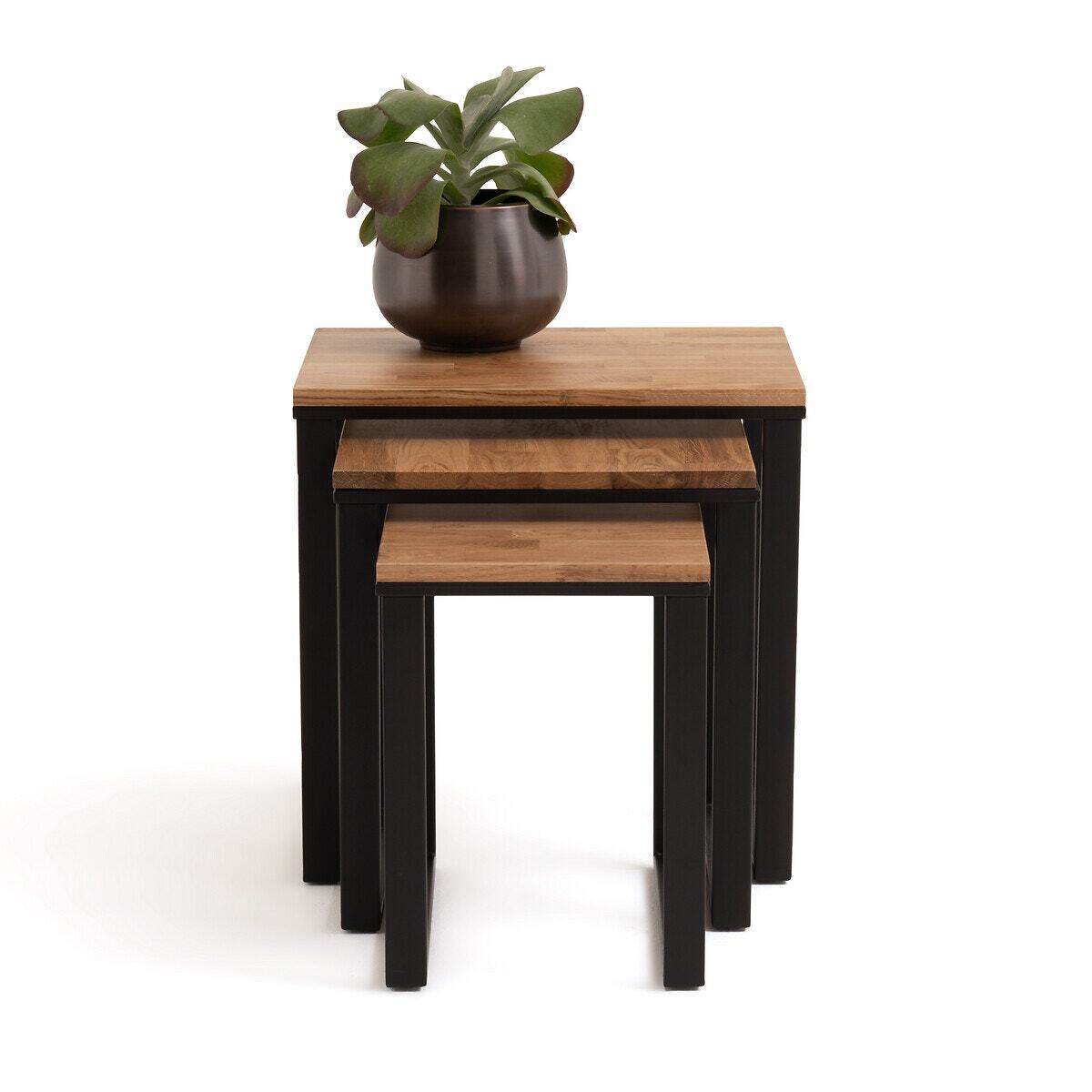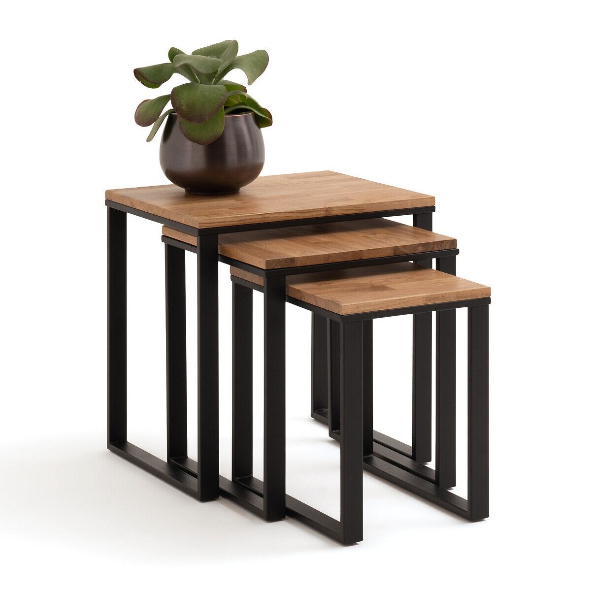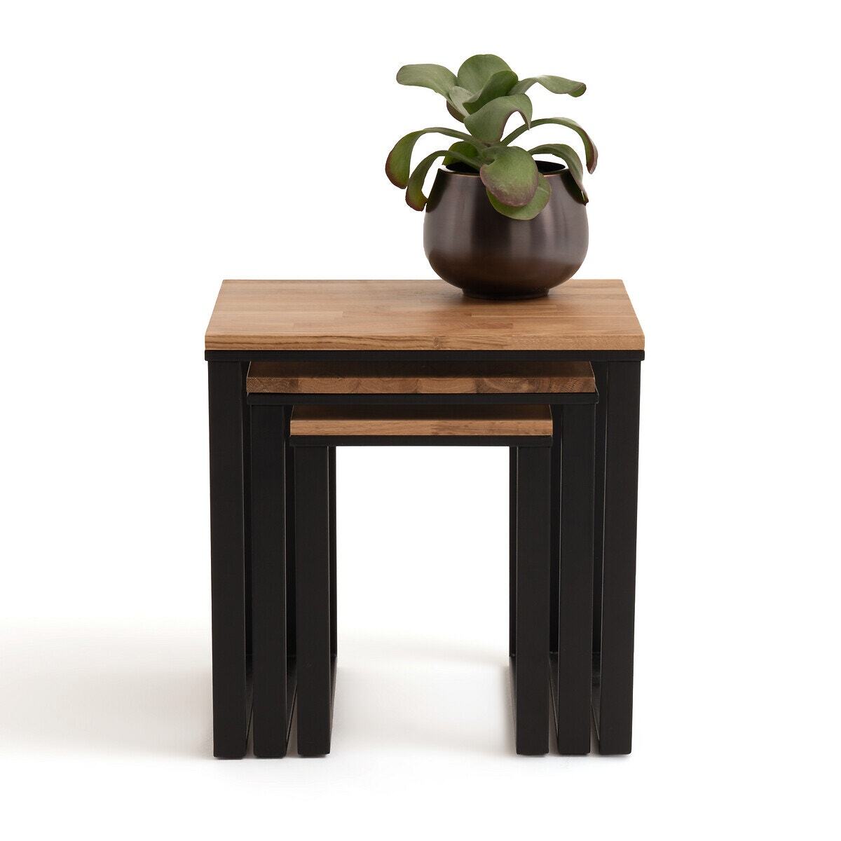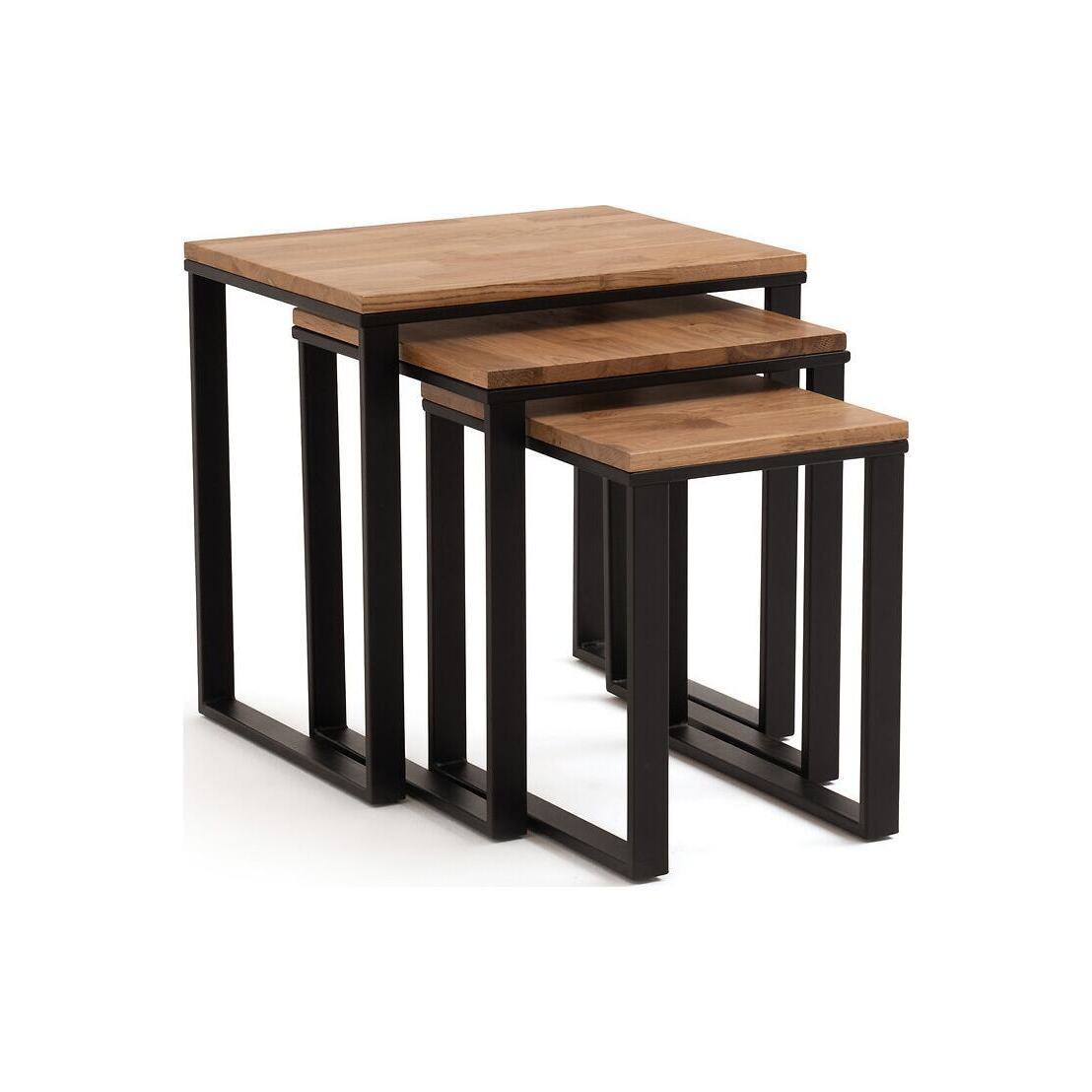 Hiba Solid Oak & Steel Nesting Tables (Set of 3)