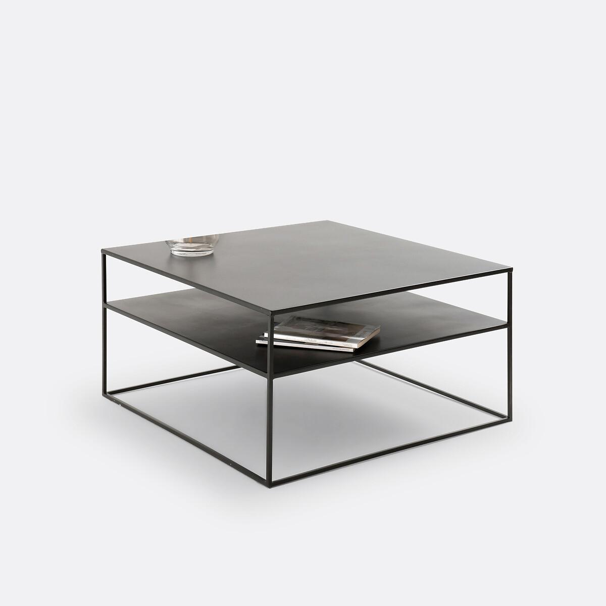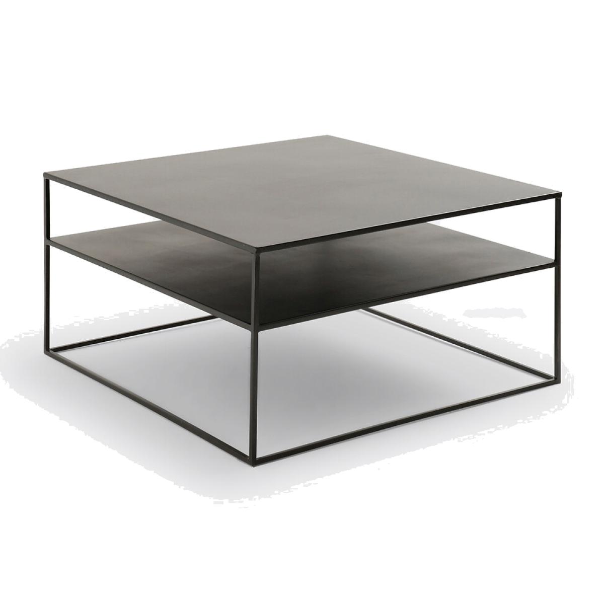Sleek and modern. The Hiba collection creates beautiful designs from metal. It will instantly charm you with its graphic, contemporary style. Add a new dimension to your interior style!Product Details • Matt black lacquered steel with epoxy coating • Two tier. Dimensions • Width: 80cm • Height: 42cm • Depth: 80cm • Useful height between tiers: 14cm • Useful height between the ground and the platform: 24.5cmDelivery:. Sold pre-assembled. Available for home delivery. Note! Please check that all access points are large enough to accommodate your delivery (doors, stairs, lifts)Dimensions and weight of parcel1 parcel • L90 x H50 x D90 cm. 41kg.
