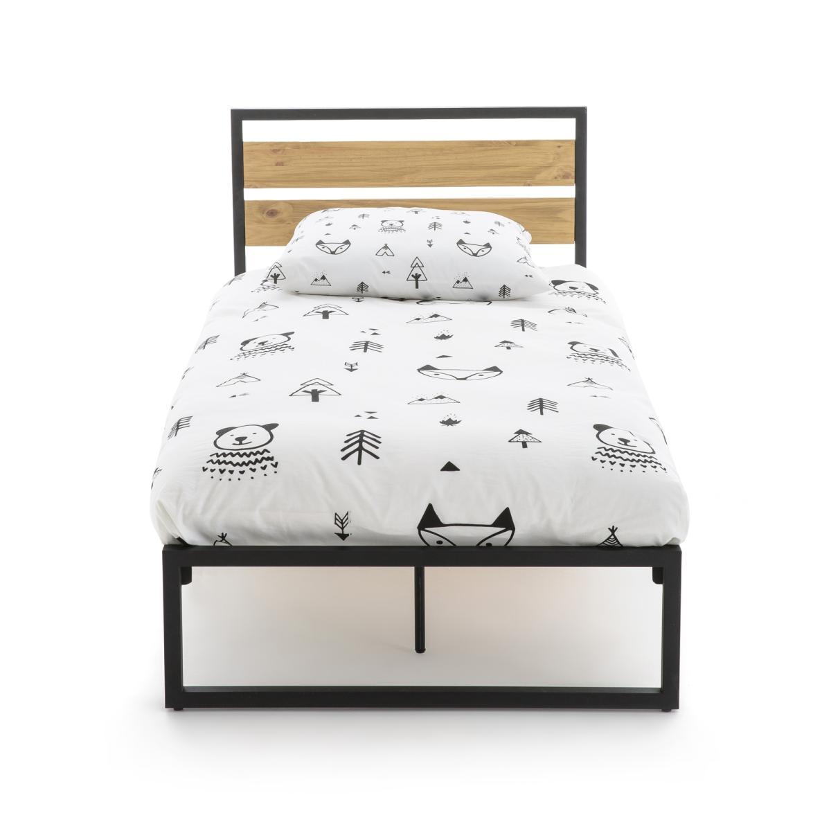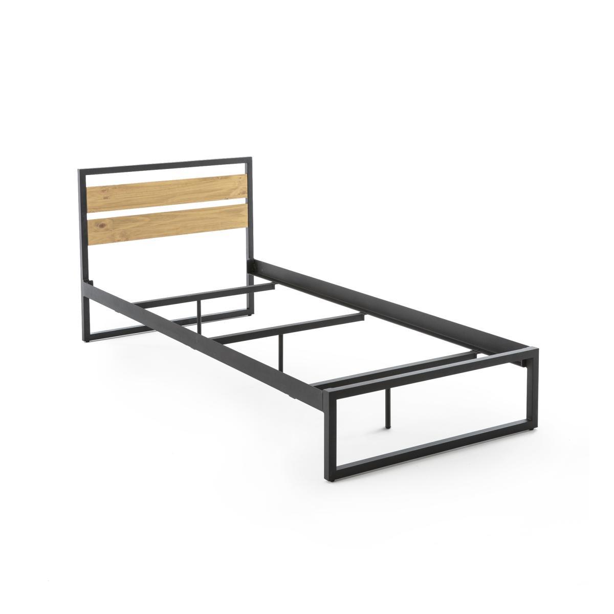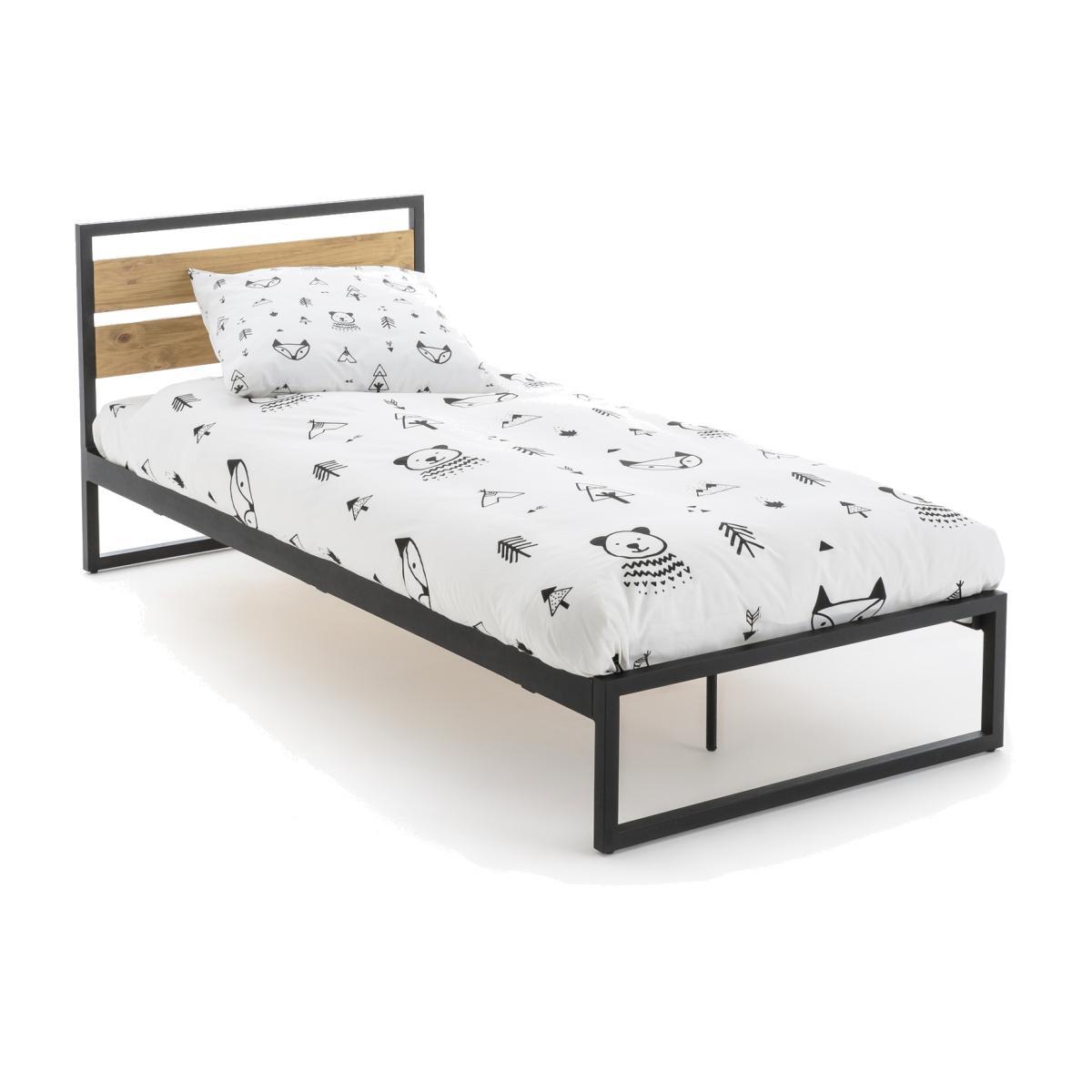 Hiba bed. In an Industrial spirit the Hiba bed will appeal to young people with its clean lines, its solid pine headboard and its matt black lacquered steel structure.