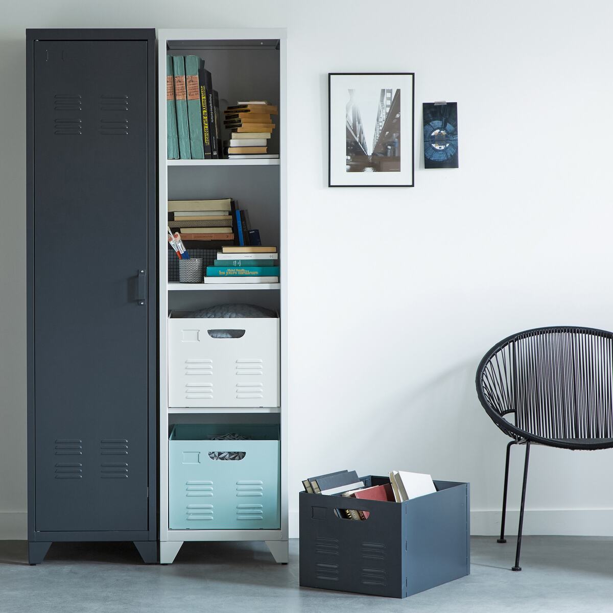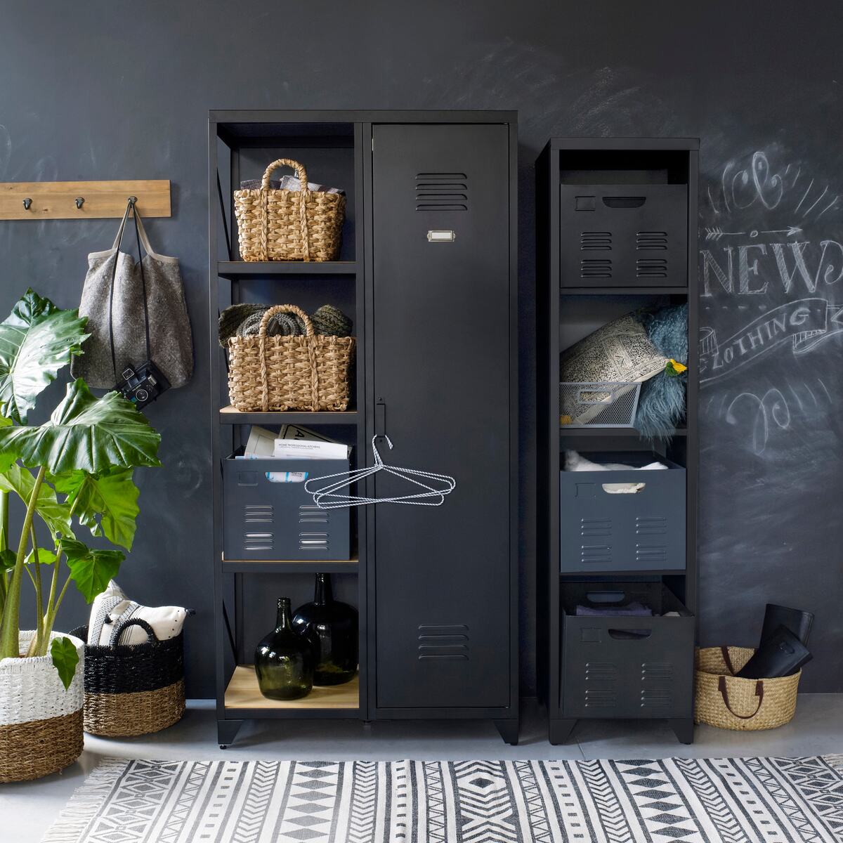 Hiba storage unit with 4 shelves. This industrial-style metal unit looks good everywhere. and is the perfect size to fit into most spaces.When it comes to storage, this one's a winner : 4 handy shelves/compartments