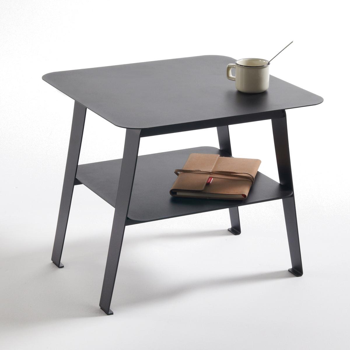 The Hiba steel side table boasts two tiers, with a good, simple and practical design: It works perfectly with the neo-industrial trend with its simple lines and tapered legs.