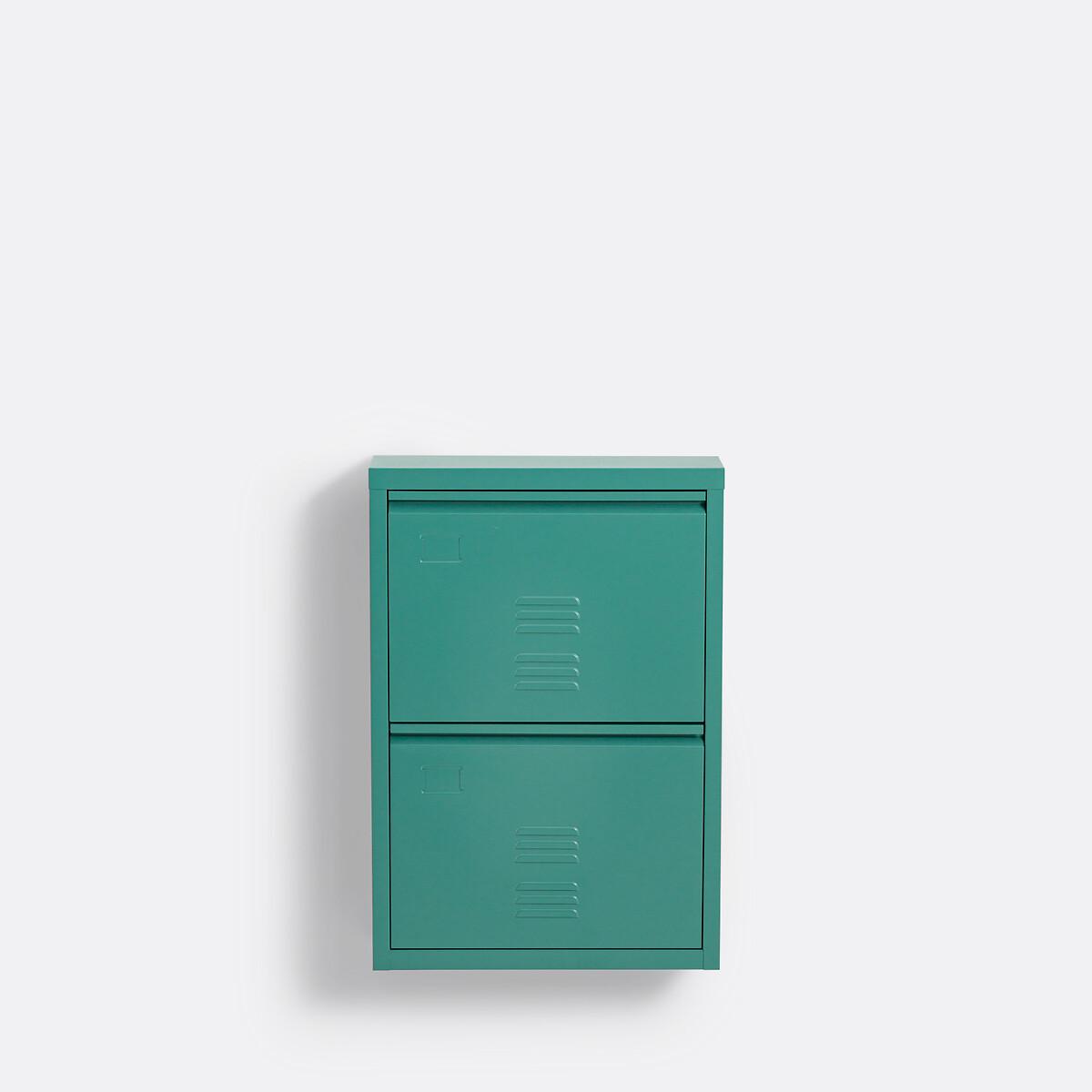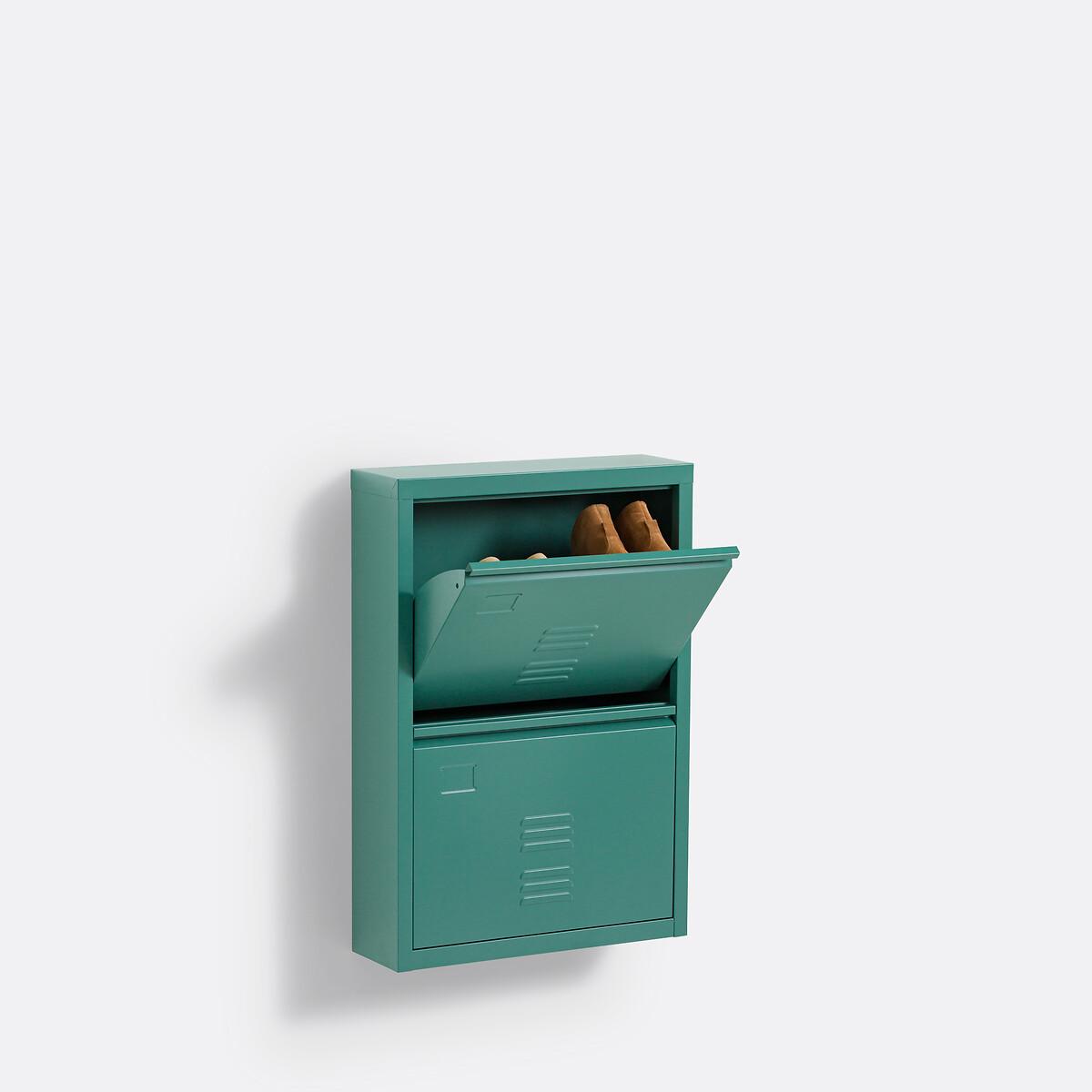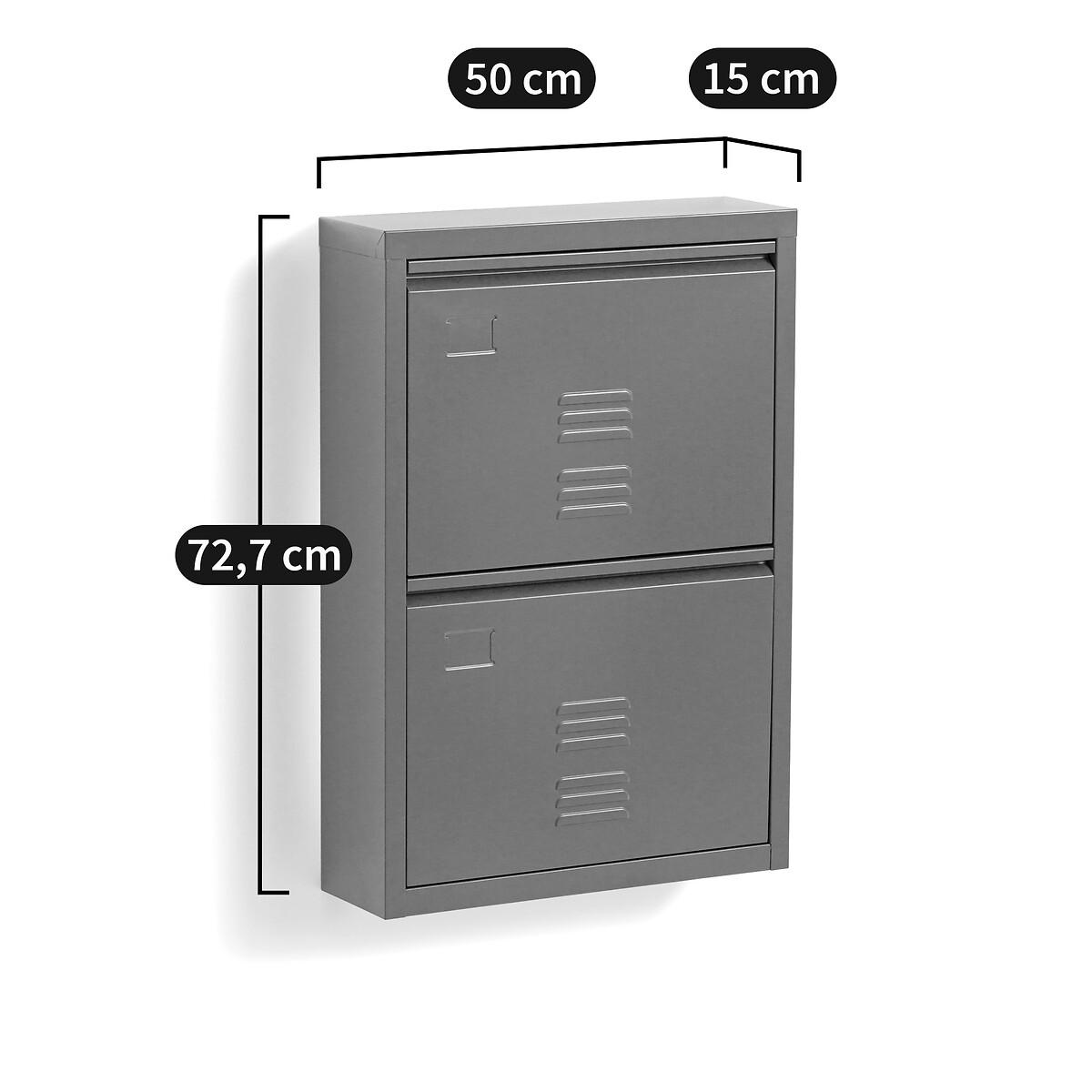 Subtle and discreet, this console table is a nod to the neo industrial trend. The Hiba range favours metal. Enjoy its modern and graphic design. Product Details • Steel metal structure, epoxy finish • 2 pull-down doors • Wall mounting system included, screws and dowels not provided • Volume: up to 5 pairs of shoes (based on size 39)Dimensions. Overall • Width: 50cm • Height: 72.7cm • Depth: 15cm • Weight: 6.9kg. Usable space • Compartments behind drop-down doors: L49.5 x H33 x D14.5cmDelivery:. Sold pre-assembled. It will be delivered to your door. Note! Please check that all access points are large enough to accommodate your delivery (doors, stairs, lifts).Dimensions and weight of parcel1 parcel • L82 x H23 x D60cm. 10.3kg.