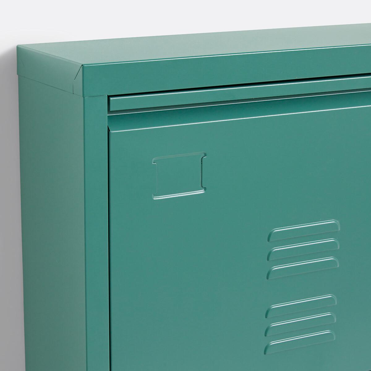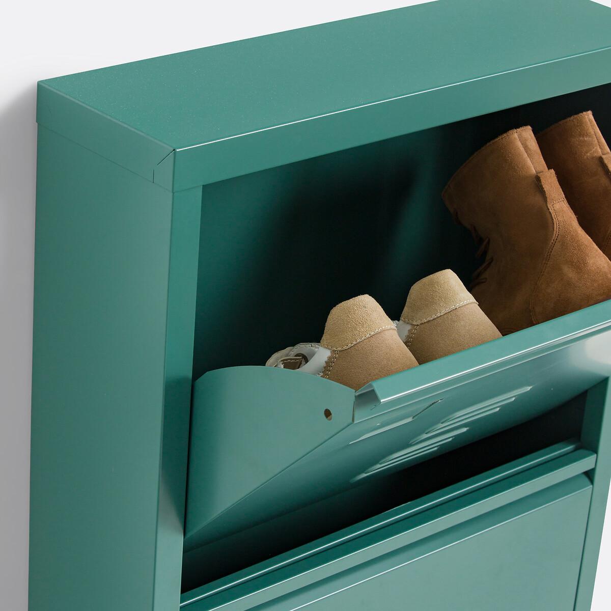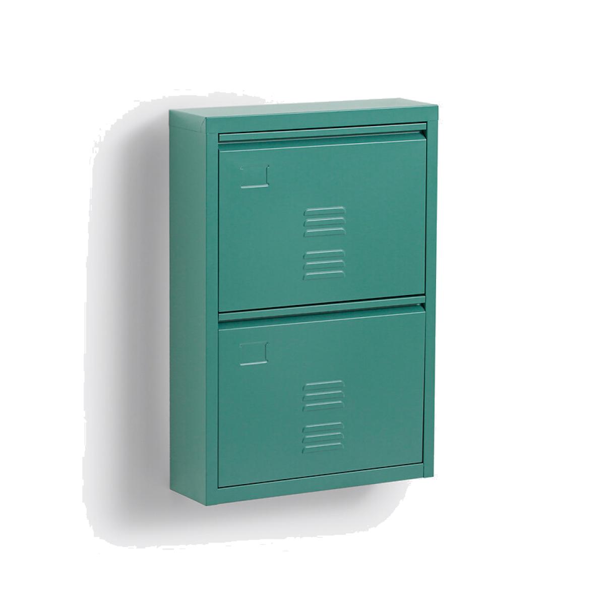 Subtle and discreet, this console table is a nod to the neo industrial trend. The Hiba range favours metal. Enjoy its modern and graphic design. Product Details • Steel metal structure, epoxy finish • 2 pull-down doors • Wall mounting system included, screws and dowels not provided • Volume: up to 5 pairs of shoes (based on size 39)Dimensions. Overall • Width: 50cm • Height: 72.7cm • Depth: 15cm • Weight: 6.9kg. Usable space • Compartments behind drop-down doors: L49.5 x H33 x D14.5cmDelivery:. Sold pre-assembled. It will be delivered to your door. Note! Please check that all access points are large enough to accommodate your delivery (doors, stairs, lifts).Dimensions and weight of parcel1 parcel • L82 x H23 x D60cm. 10.3kg.