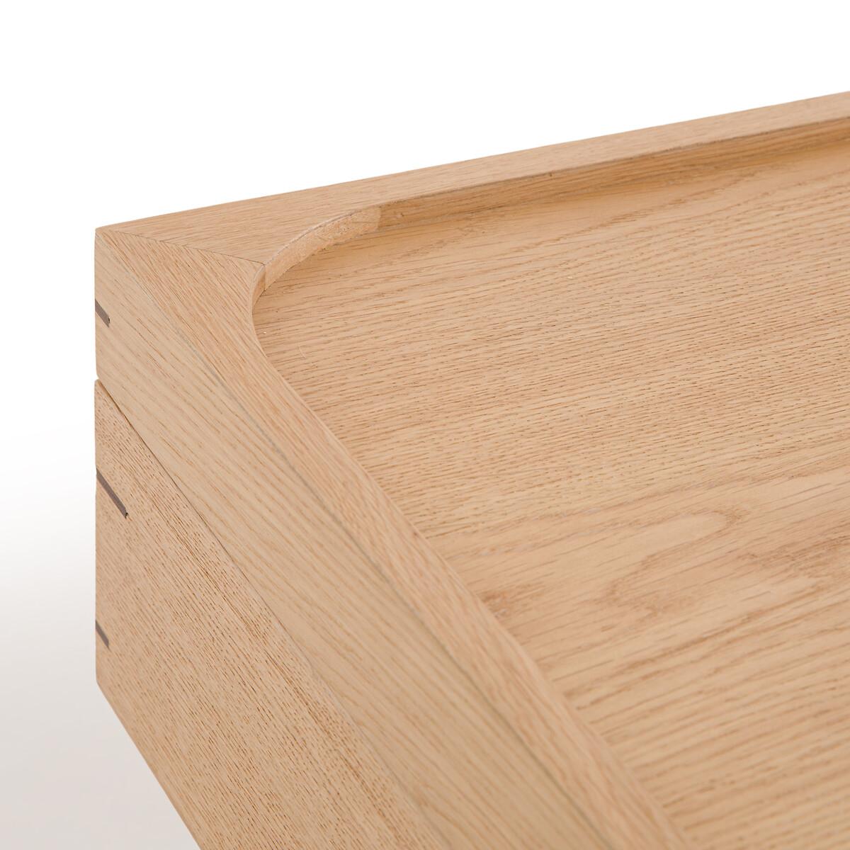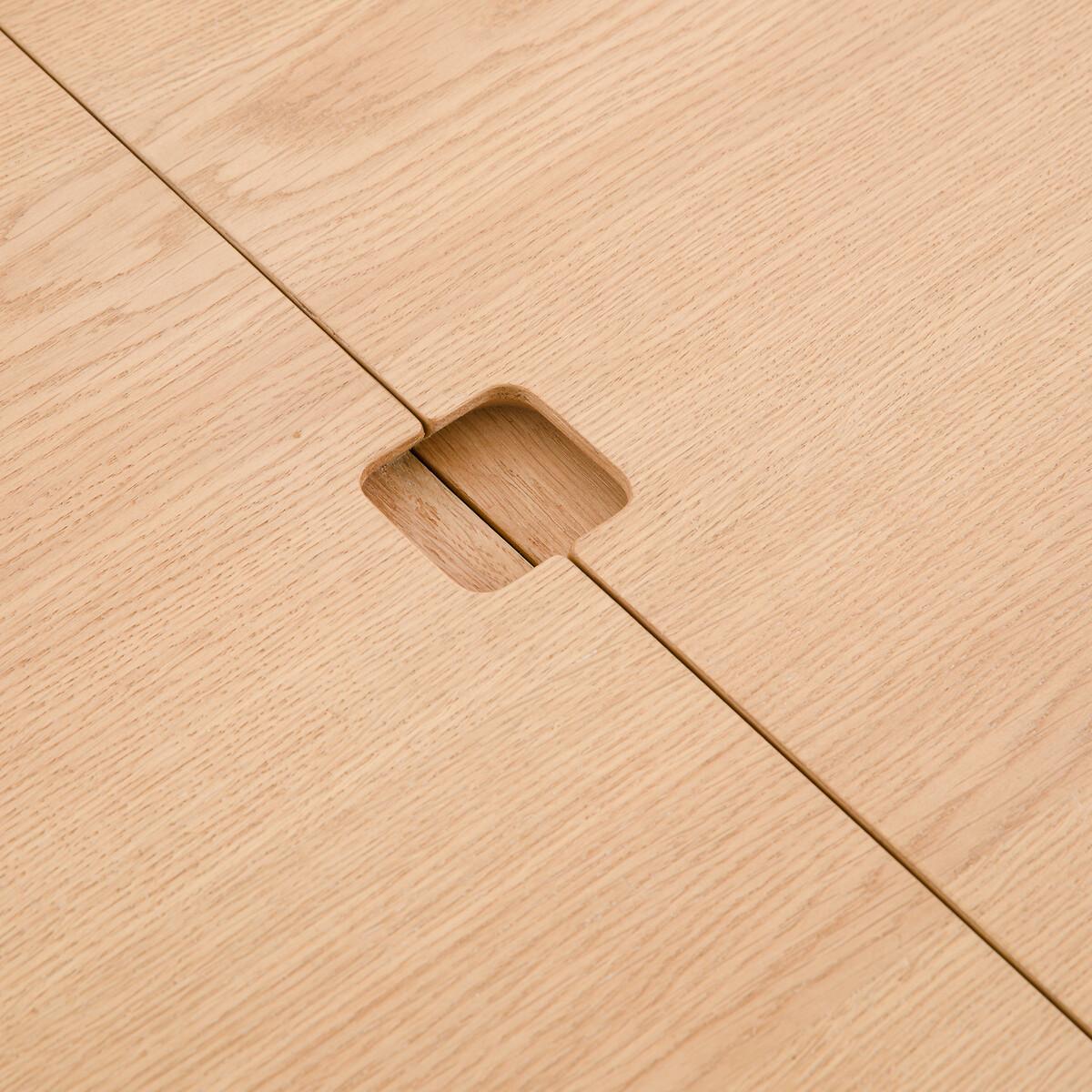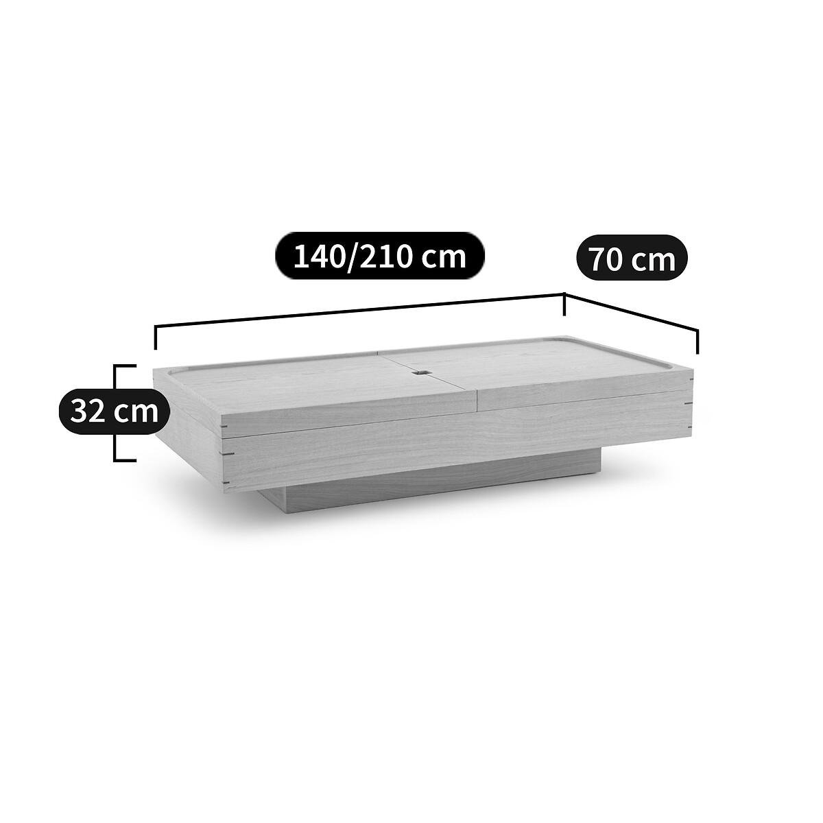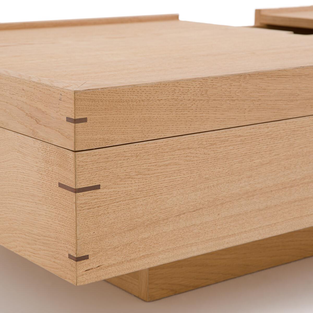 The seamless fusion of design and functionality. This coffee table was designed to optimise storage without showing anything. Like a cabinetmaker's box. Its top opens in two parts onto a space that can accommodate objects or blankets.. Its ingenious design and the care taken in its finishes are inspired by traditional Japanese art.. An AMPM creation. Product Details • Sliding top and central base in oak-veneered MDF, polyurethane varnish finish • Textured and FSC® certified sanded wood. Dimensions • Width: 140cm • Height: 32cm • Depth: 70cm • Open top dimension: 210cmDelivery:. Sold pre-assembled. Available for home delivery. • WOOD FROM SUSTAINABLY MANAGED FORESTS. FSC® certified wood comes from forests that are environmentally, socially and economically well managed. Parcel dimensions and weight • 1 parcel • L149 x H42 x D78cm. 49kg