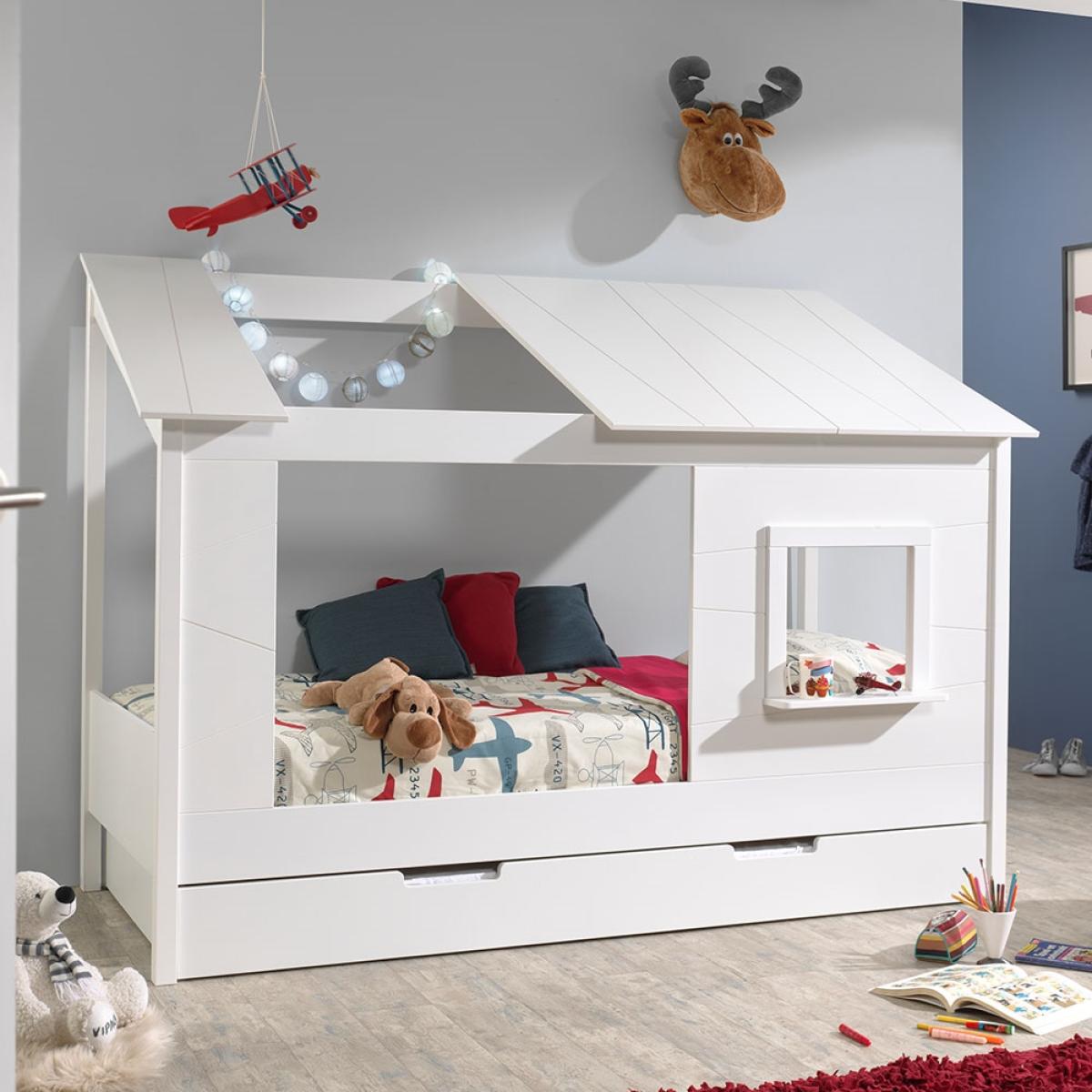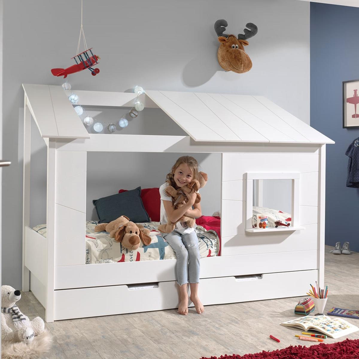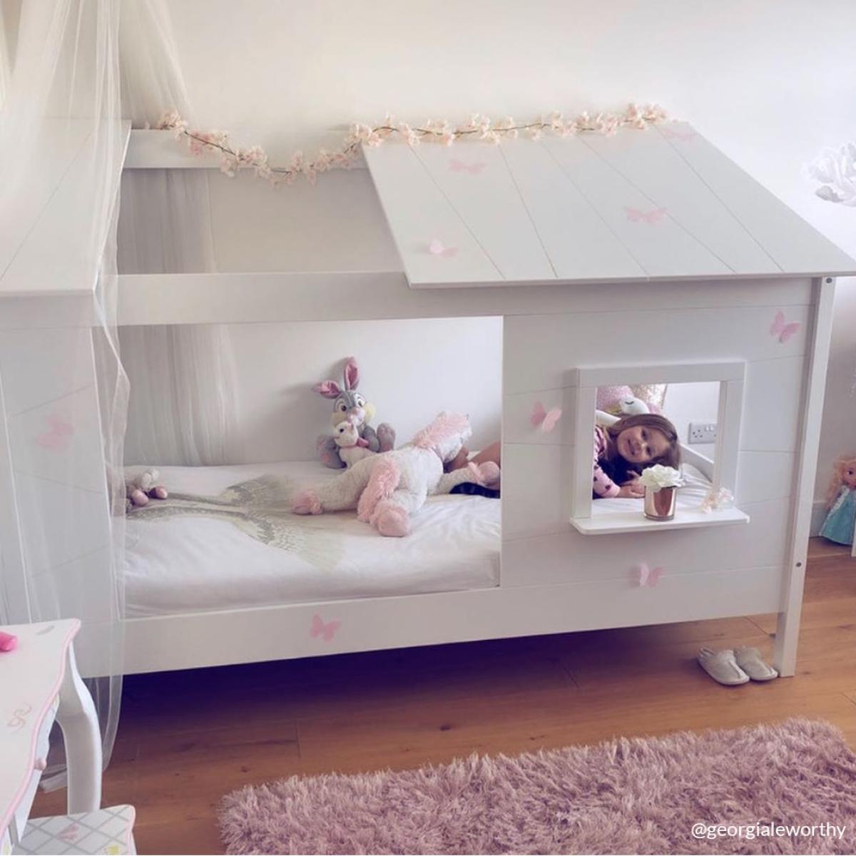 Give your kiddie the bed they deserve with the Hideaway House Bed, you are sure to earn some serious brownie points with this beautiful playhouse bed. Manufactured from solid pine and MDF, with a roof and cut out window, you're youngster can let their imaginations run wild with a playhouse bed and then when they're all tuckered out gaze at the stars whilst drifting off! You could even add the optional trundle drawer, making this raised childrens bed ideal for sleepovers or just for a bit of extra storage. Whatever you choose it will be a wonderful addition. So string up some fairy lights and create the perfect cosy den for them!.
