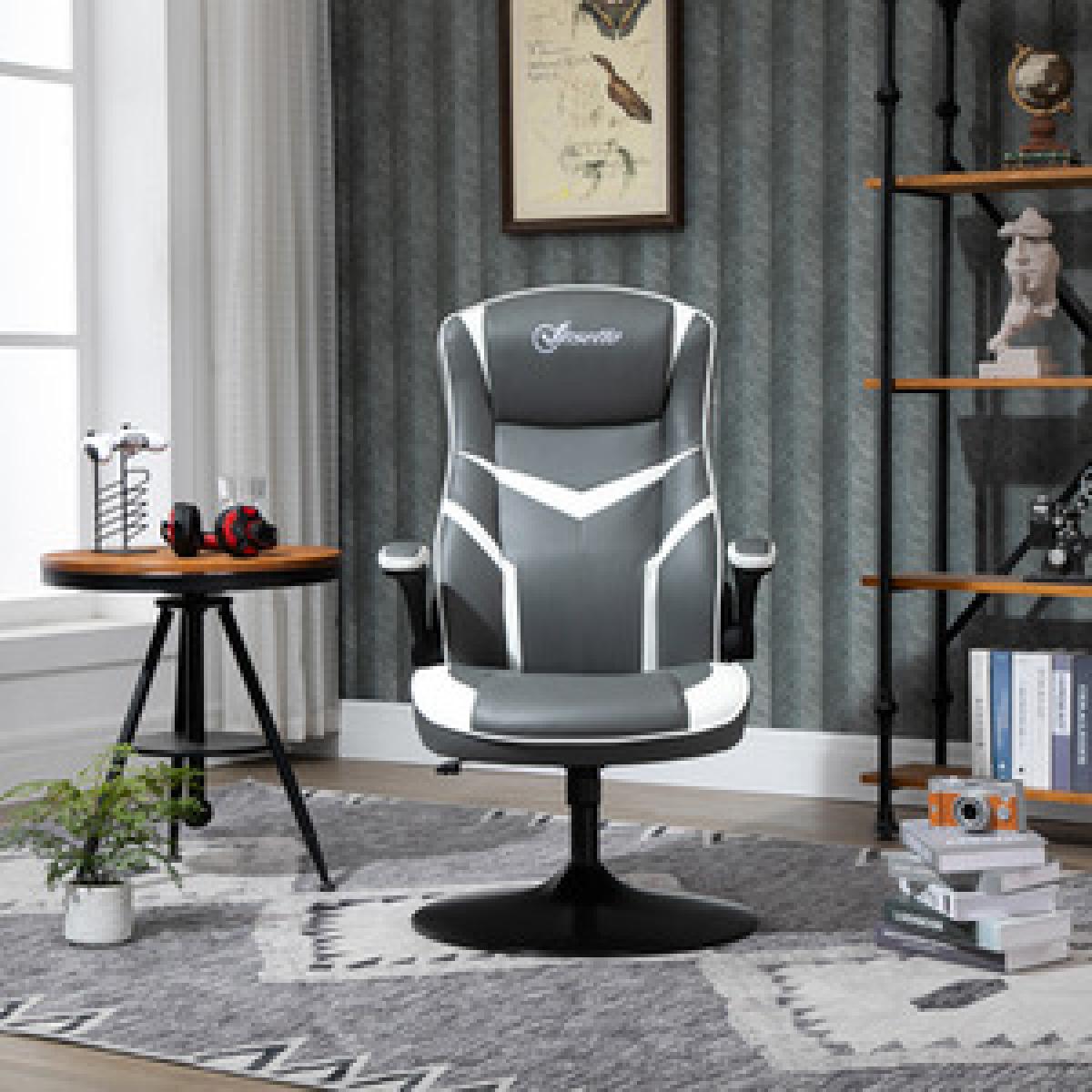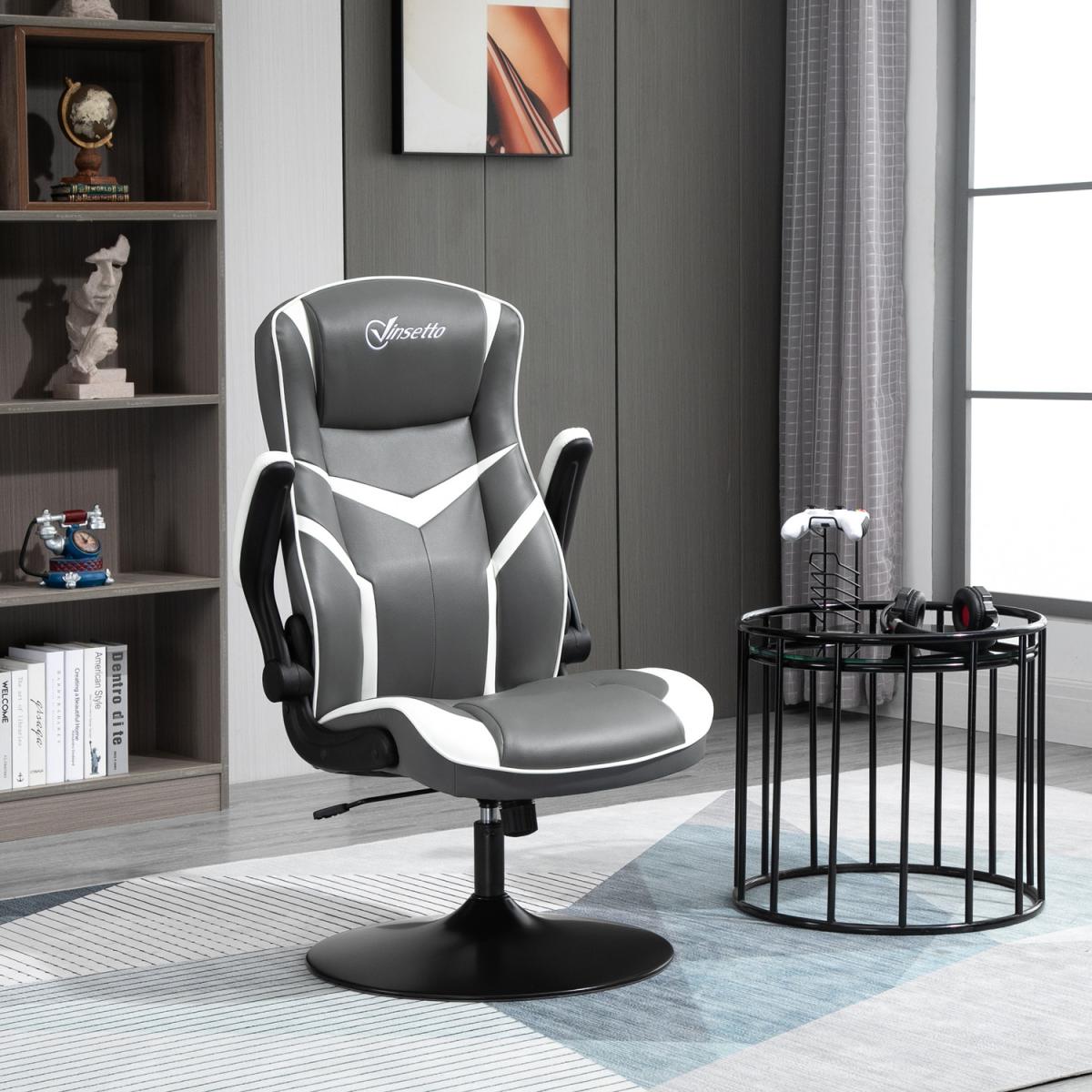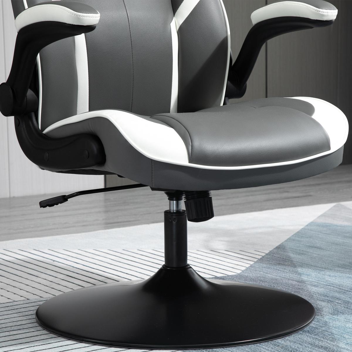 Your search for the perfect gaming chair stops right here - this stylish pick from Vinsetto will meet your need. It effortlessly combines supreme style and comfort: using PVC leather in a sleek design, whilst the large seat and thick padding are there to be set in for hours on end. It is height adjustable to match your desk level, and the armrests can be flipped up if you want more freedom and space. Furthermore, it's fitted on a large round steel base which ensures balance.