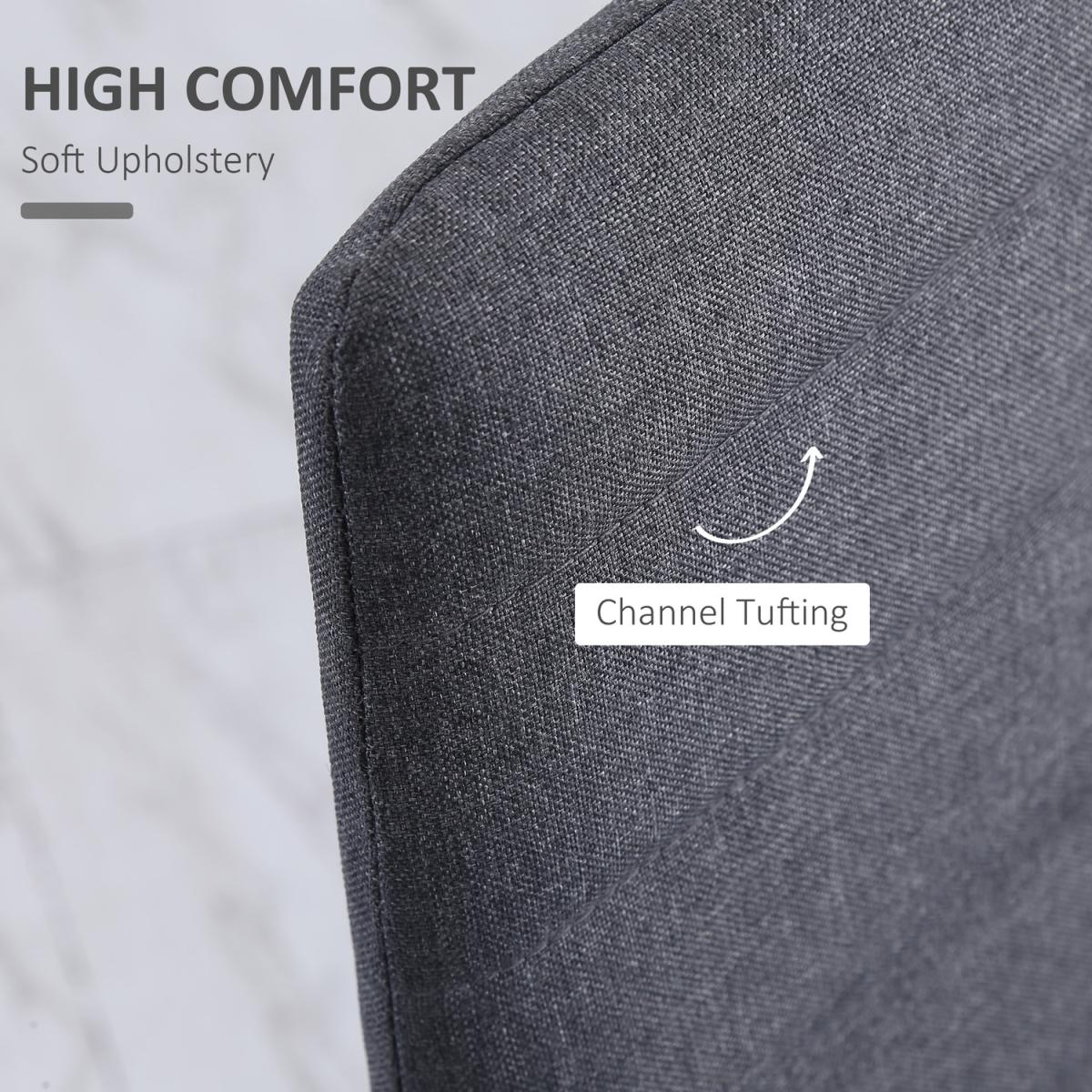 Complete your kitchen or dining area in matching style, thanks to this four-piece chair set from HOMCOM. Seats are cushioned for comfort, with high backs for support. Linen-look upholstery is smooth and in style. Steel legs for full support when seated.
