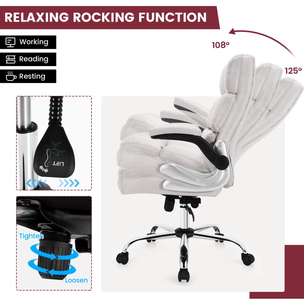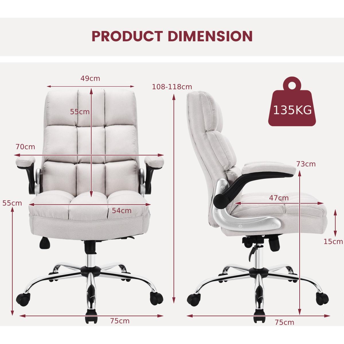 Ideal for working, reading and more, this computer desk chair can be used in various occasions for added comfort and convenience. This office chair features tilting backrest and height adjustable seat, so you lean against the back in different position or adjust the seat to your desired height. Stuffed with high density sponge, the seat cushion offers a softer and more comfortable feeling. In addition, the smooth rolling casters make it easy to move the chair anywhere. Supported by metal 5-claw structure, the big and tall executive chair can hold up to 135kg and ensure safe use. All in all, this multifunctional office chair is an ideal choice for you.