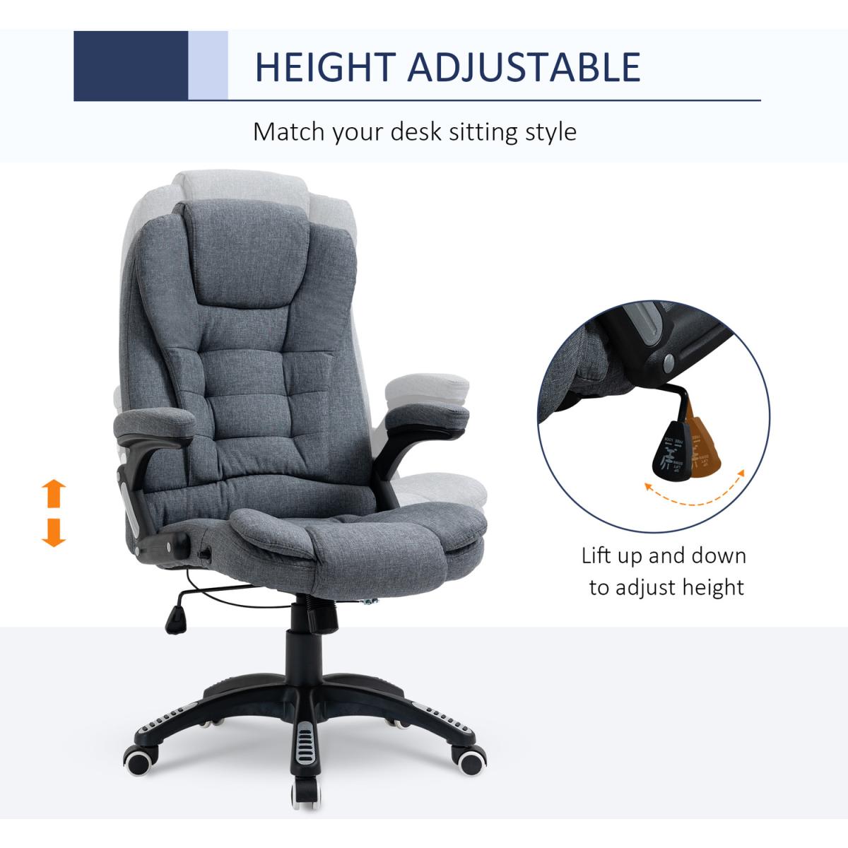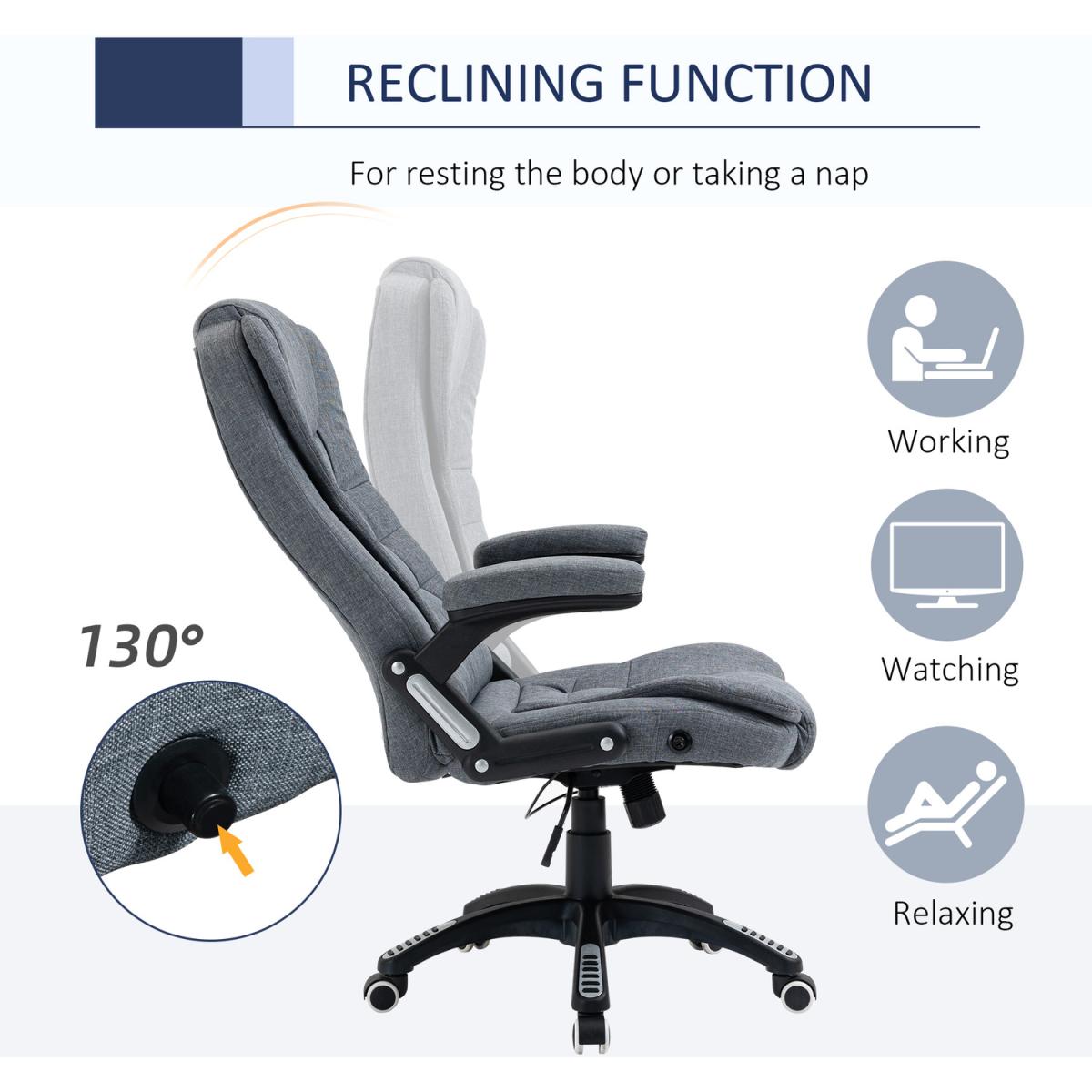 Keep comfortable during your workday with this home office chair from Vinsetto. The height is adjustable to allow you to work at different levels, and the back can recline for a maximum of 130 to relax and enjoy your swivel chairs. Filled with a sponge all over, and wrapped in linen-feel upholstery, it's incredibly soft and comfortable. Comes with a 360 swivel seat and five wheels, you can move around easily, without even having to stand up.