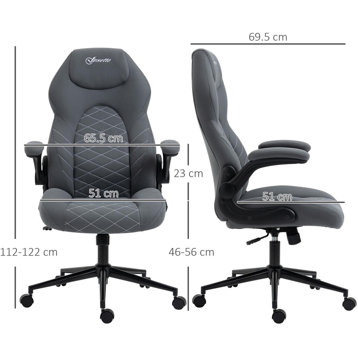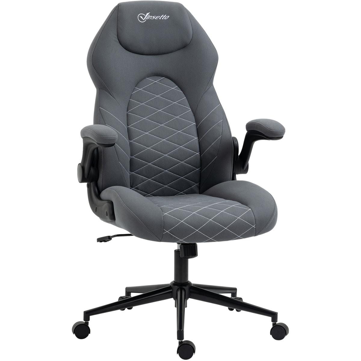 High Back Home Office Chair with Flip Up Armrests Wheels - Dark Grey / Polyester Sponge Metal Nylon
