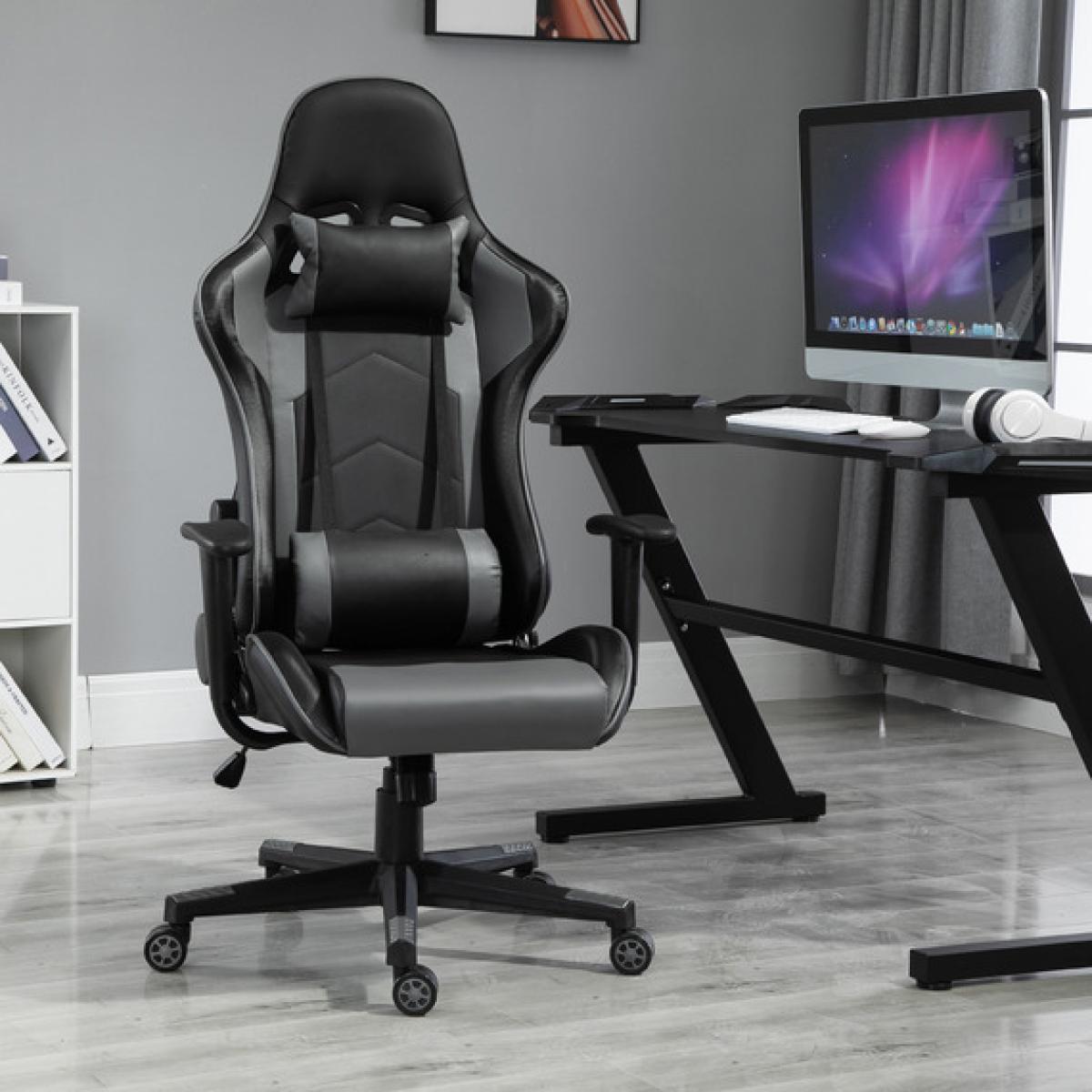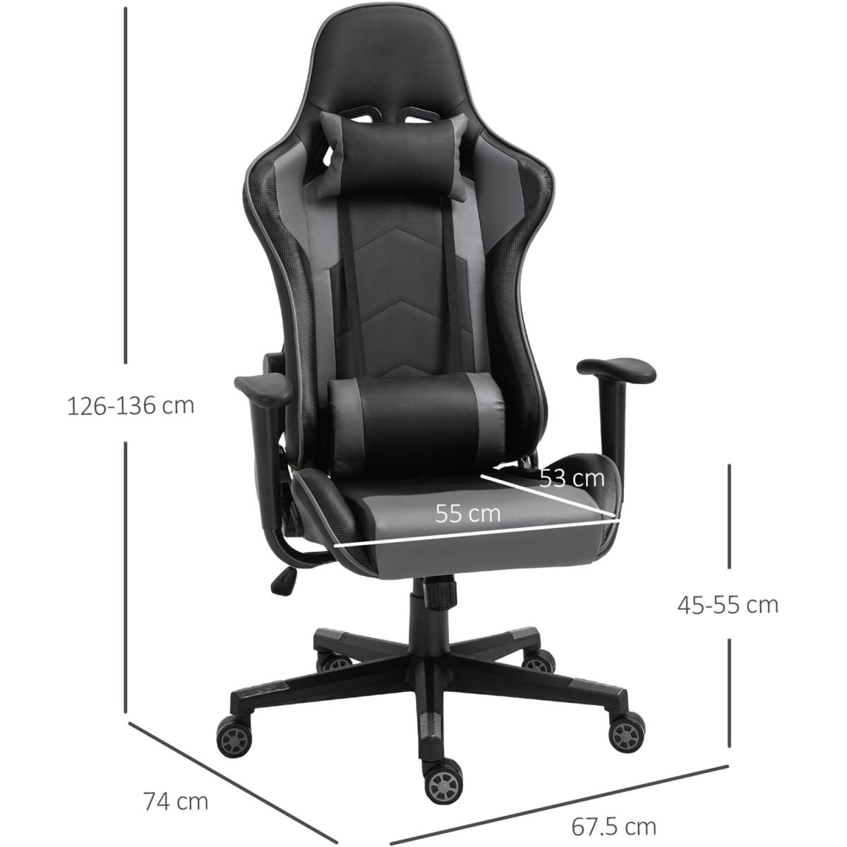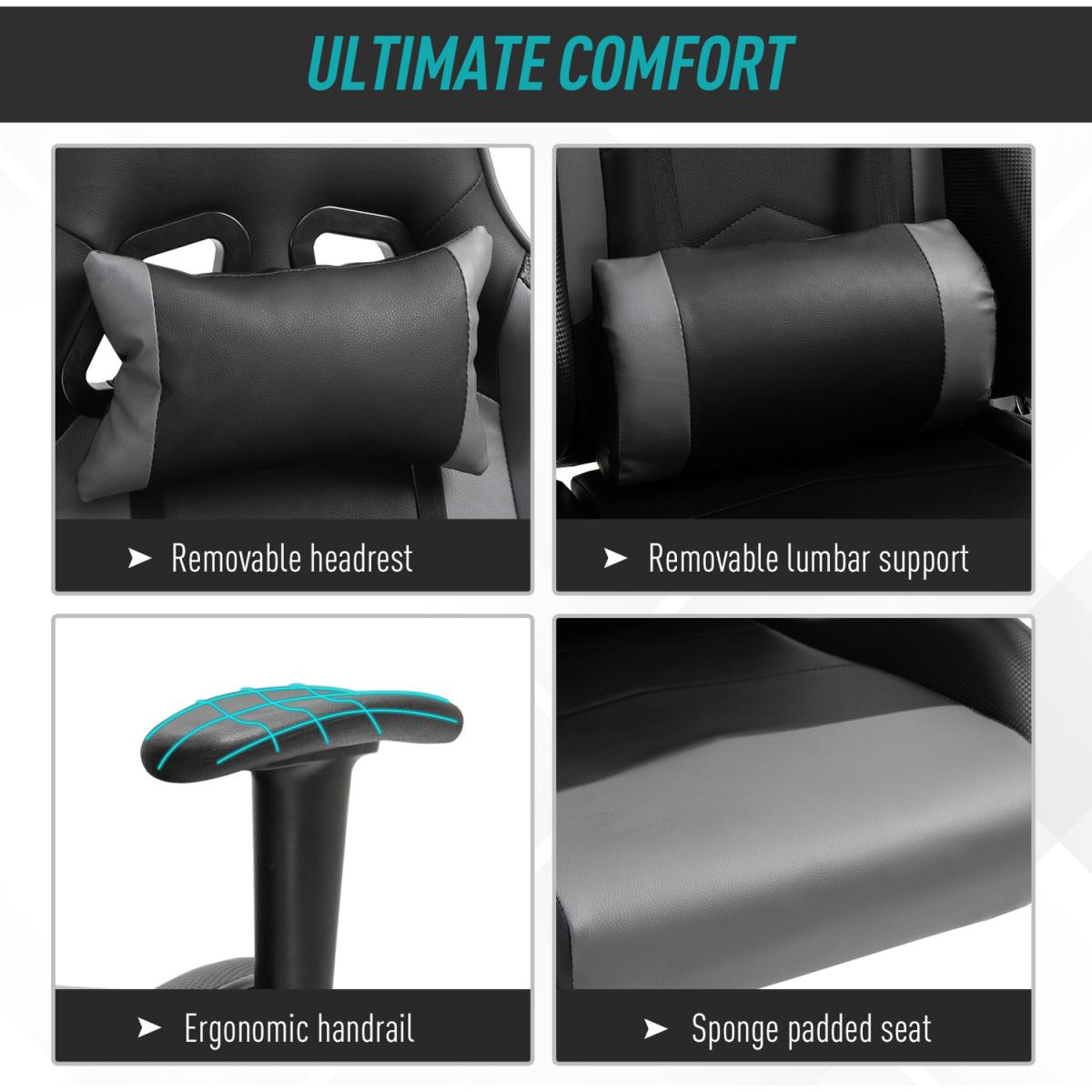 High Back Racing Gaming Chair with Head Back Pillow - Black & Grey