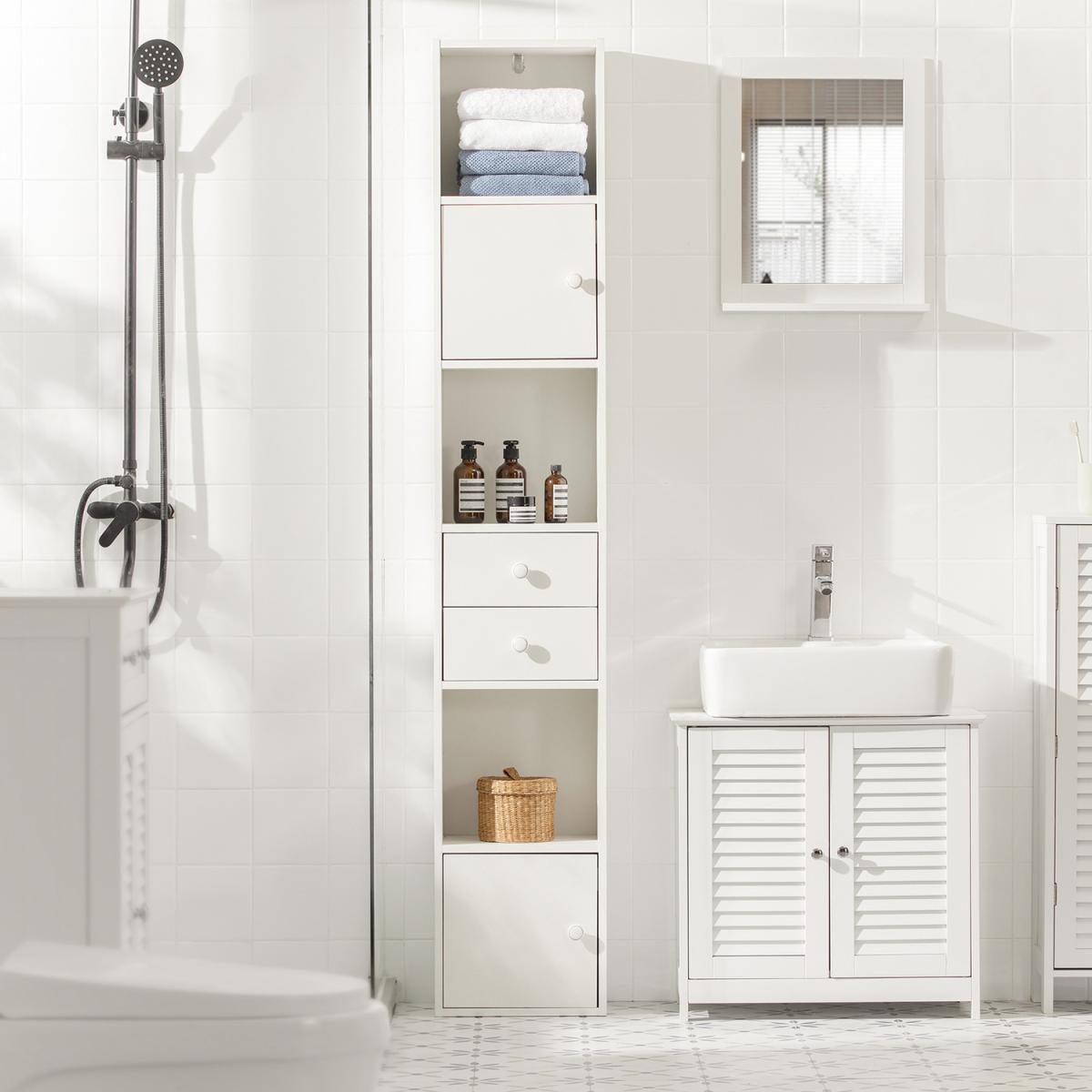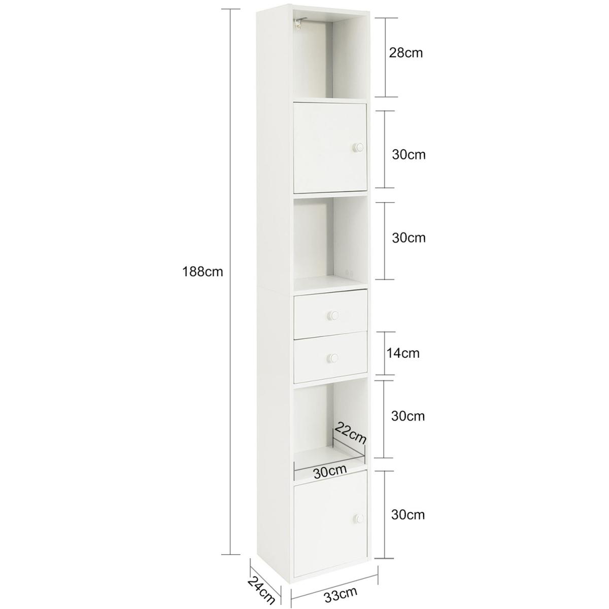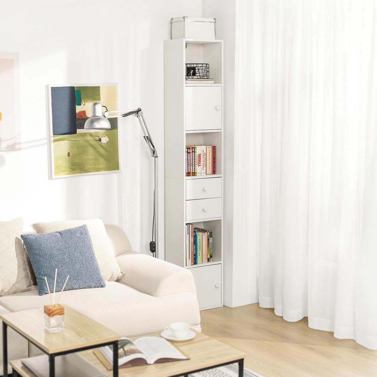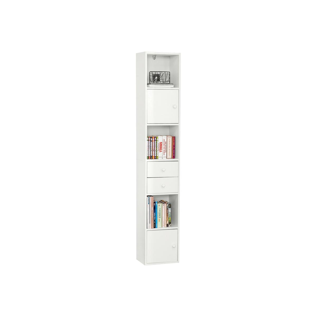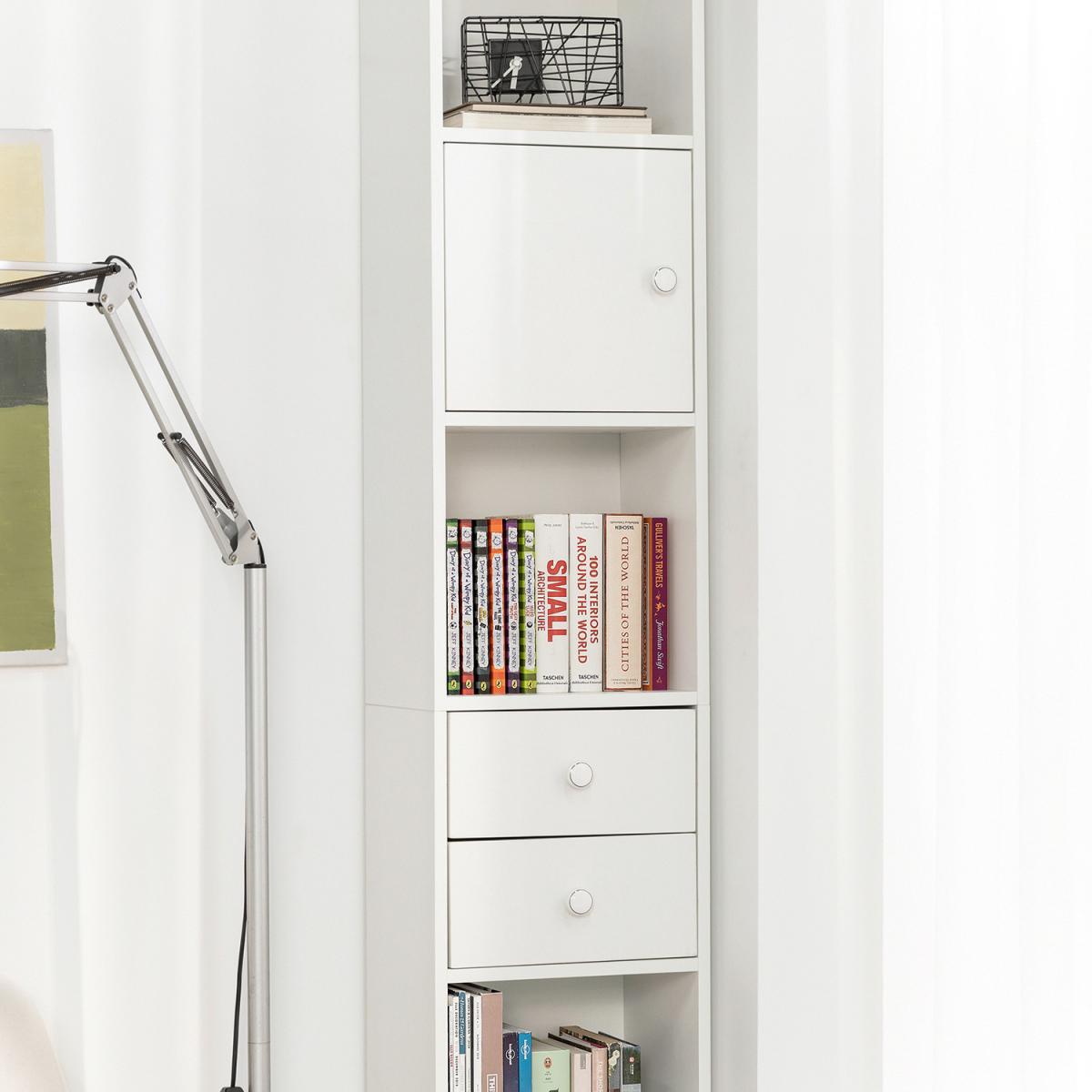 Modern design bookcase storage shelf provides plenty of storage and display space for you, as well as keeping your room tidy and organized. 2 drawers and 2 small cupboards offer ample storage space for your personal items. 3 open compartments are ideal for books, magazines, photos and some decorative items. The top of the cabinet offers additional storage and display space for you. Made of high-quality particle board with melamine veneer and PVC edge. Stable and durable. Good quality material and a stable frame make the shelf suitable for a variety of locations, like the living room, study room and office. It also can be used in the bathroom as a storage cabinet for your bathroom essentials. Coming with an anti-tipping device, ensuring great stability and safety.