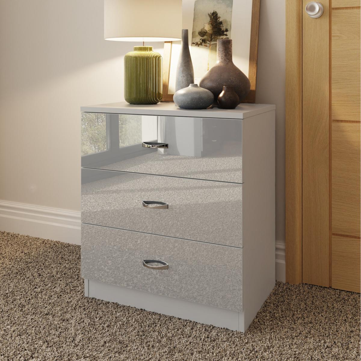 Introducing the High Gloss 3 Drawer Deep Bedside Table Nightstand, a stylish and practical addition to your bedroom decor. This nightstand boasts high gloss drawer fronts that exude a sleek and modern appeal, beautifully contrasting with the matt frame for a sophisticated aesthetic. The ergonomic contoured polished metal handles not only add a touch of elegance but also provide a comfortable grip for easy access to your bedside essentials. With three deep drawers, this nightstand offers ample storage space to keep your belongings organized and within reach. Whether it's books, electronics, or personal items, this nightstand ensures that everything has its designated place. Constructed with durability in mind, this nightstand features melamine anti-scratch protection, ensuring its long-lasting beauty and protecting it from everyday wear and tear. The melamine coating provides resistance against scratches, ensuring that your nightstand maintains its flawless appearance for years to come.