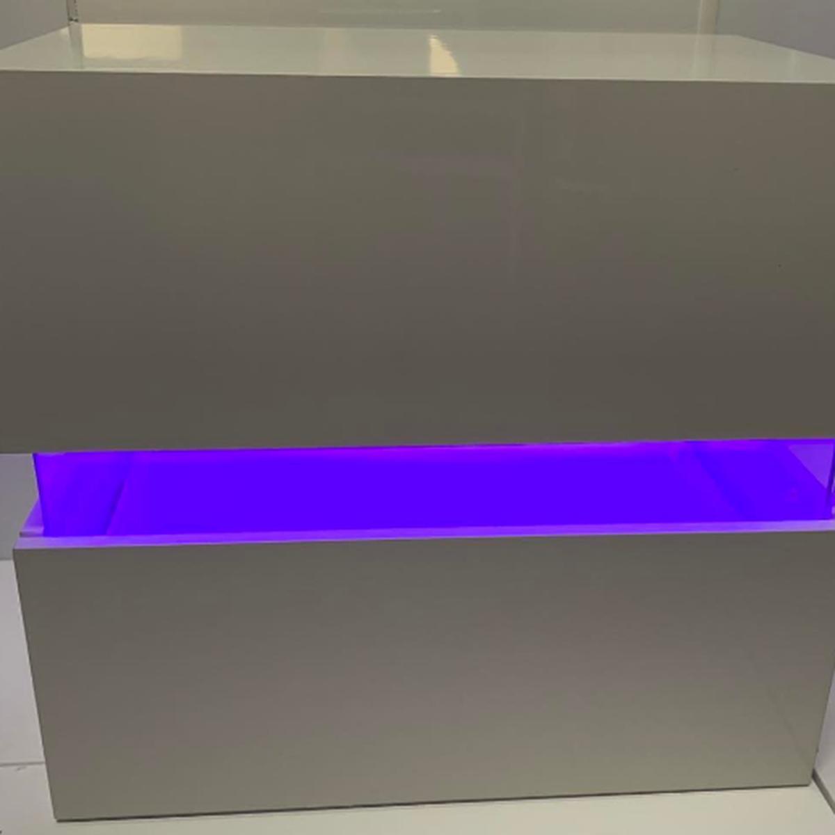 Designed with modern elements on the front, top and sides made in a high gloss, which is easy to clean and maintain, the bedside unit is a stylish touch to any bedroom or living room in your house. Comes with LED lights and a remote control to change the colour of the lights. It is recommended to use this unit on hard floor so the bottom drawer can be opened easily.
