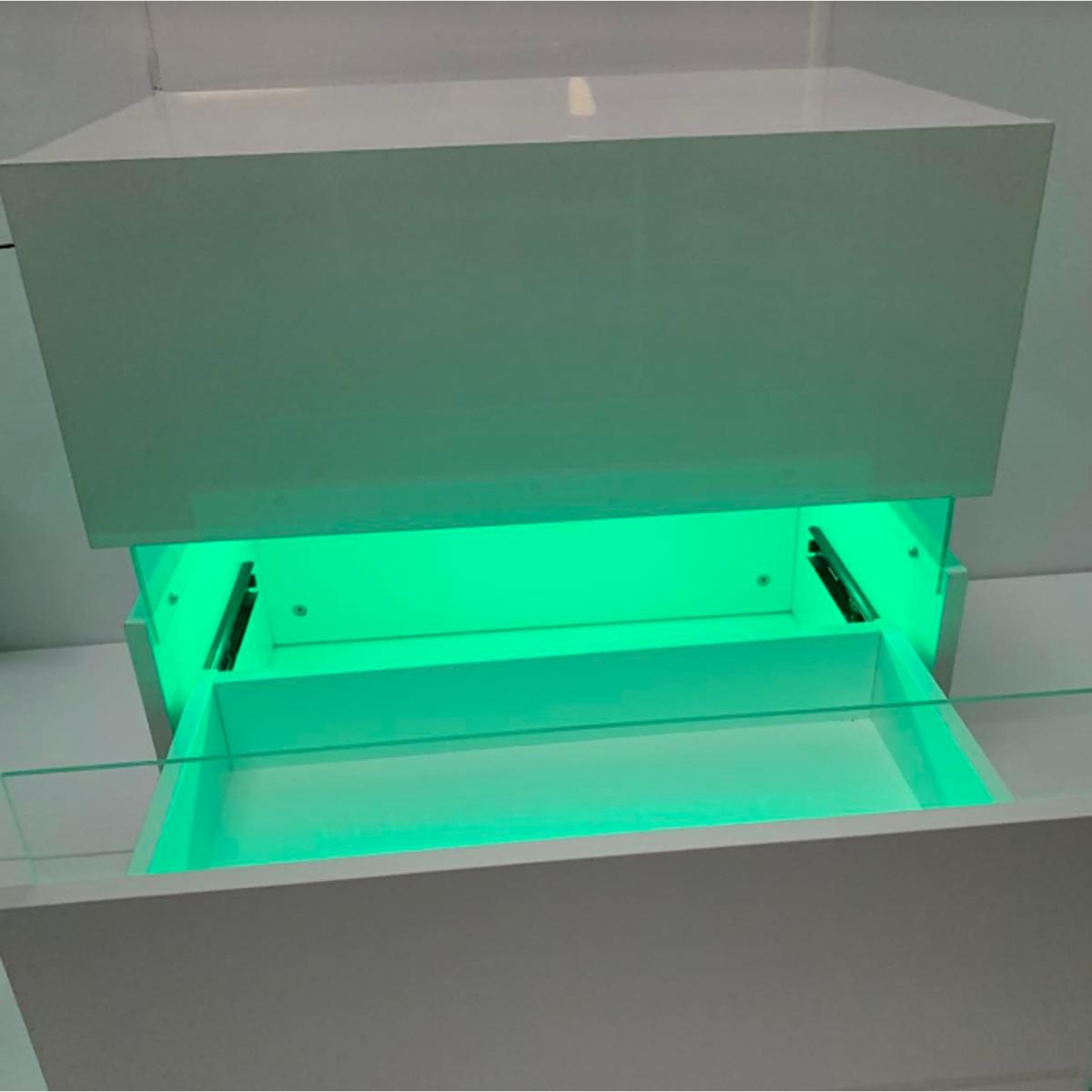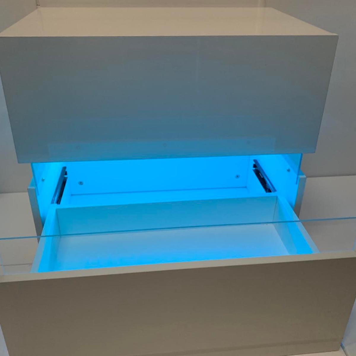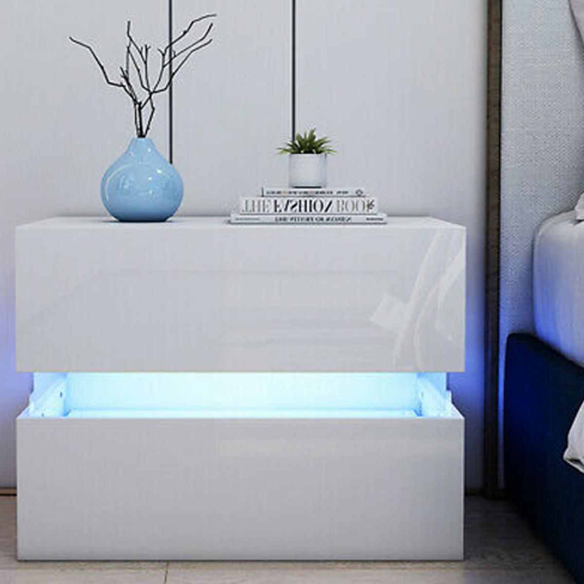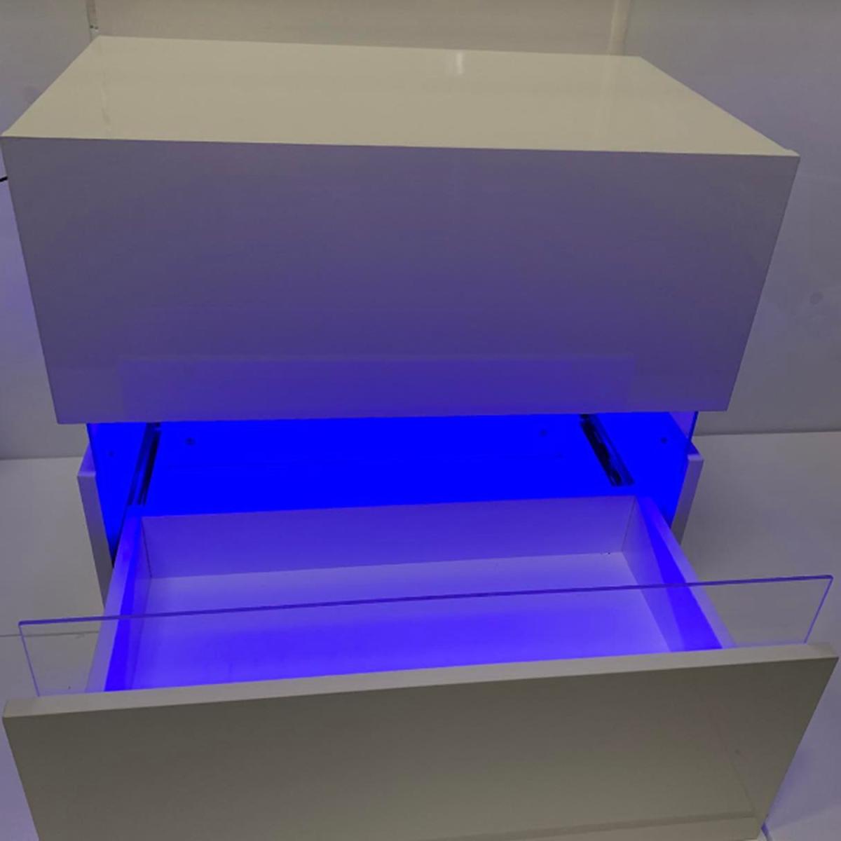 High Gloss Bedside Table Nightstand Cabinet with LED Light - White