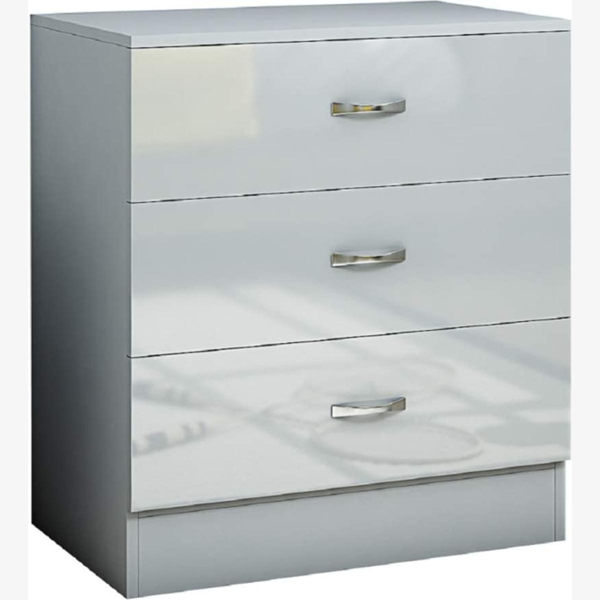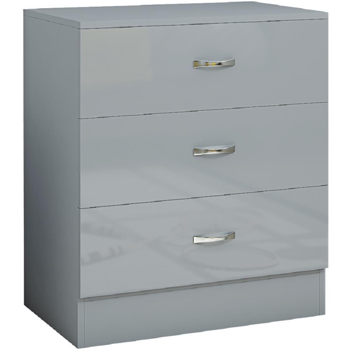 High Gloss Grey 3 Drawer Chest Modern Furniture Curved Metal Handles - Grey Gloss
