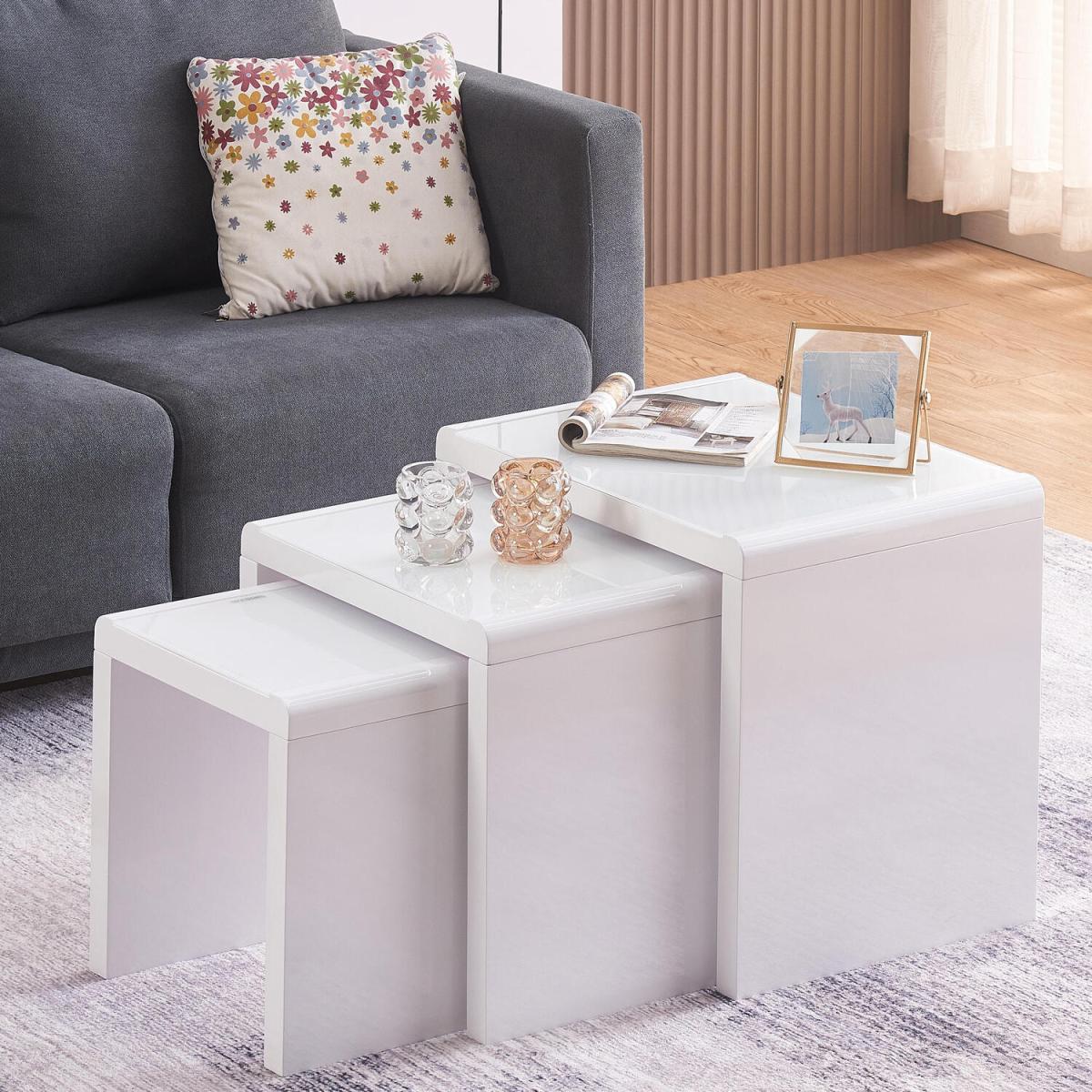 Experience the epitome of modern elegance with this stunning nesting table set. Crafted with a sleek, contemporary design, these tables effortlessly blend into any living space, adding a touch of sophistication. The glass tabletops offer a smooth, reflective surface, perfect for displaying decorative pieces or serving refreshments. Underneath, the sturdy frames in a chic grey or white hue provide a solid foundation. Nestle the smaller table beneath the larger one when not in use, saving valuable floor space. With their versatile style and space-saving design, these nesting tables are a practical and stylish addition to your home decor. Please note that all dimensions are approximate, please allow room for slight variations.