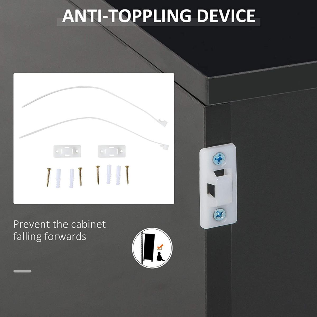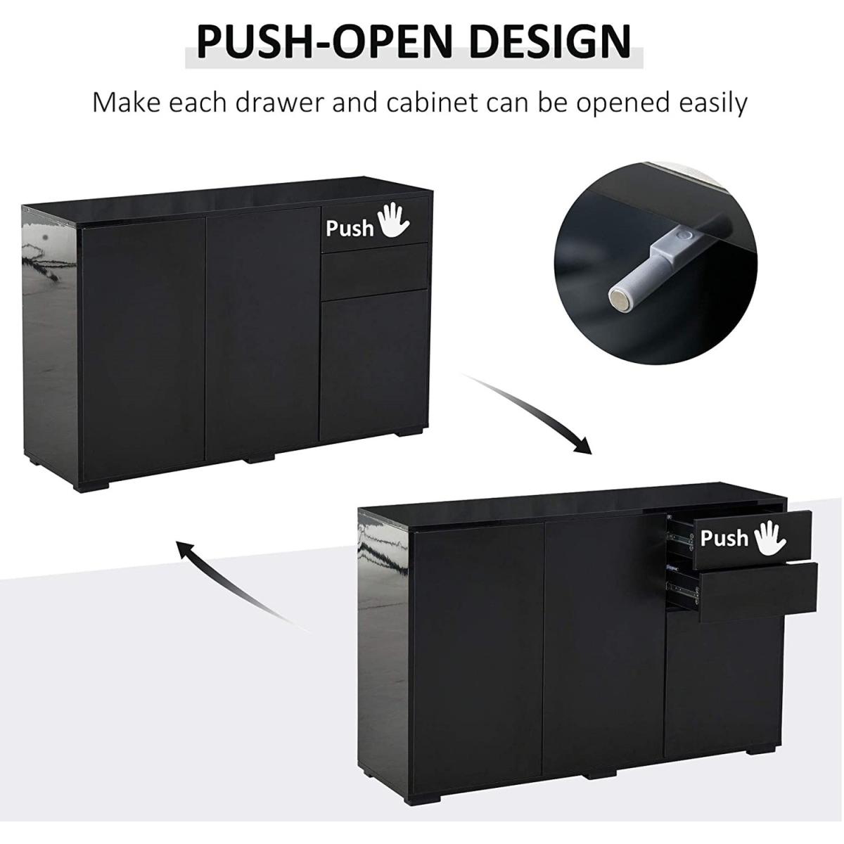 This HOMCOM large and oblong cabinet is a durable and stylish addition to every home, keeping your space clean and tidy with ease. It's made from MDF for a durable structure, with anti-tipping straps on the back for safety. The practical design, with the push-click drawers and cabinet doors, makes them quick and effortless to open and close. The elevated base allows air to flow through for freshness. An effortless way to bring sleek style into your living space.