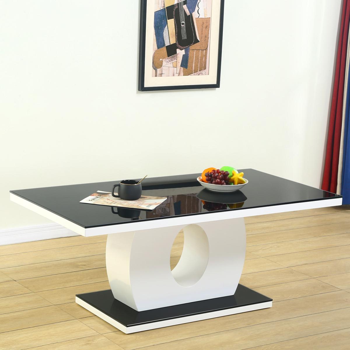 High Gloss White Coffee Table with Black Glass - Black