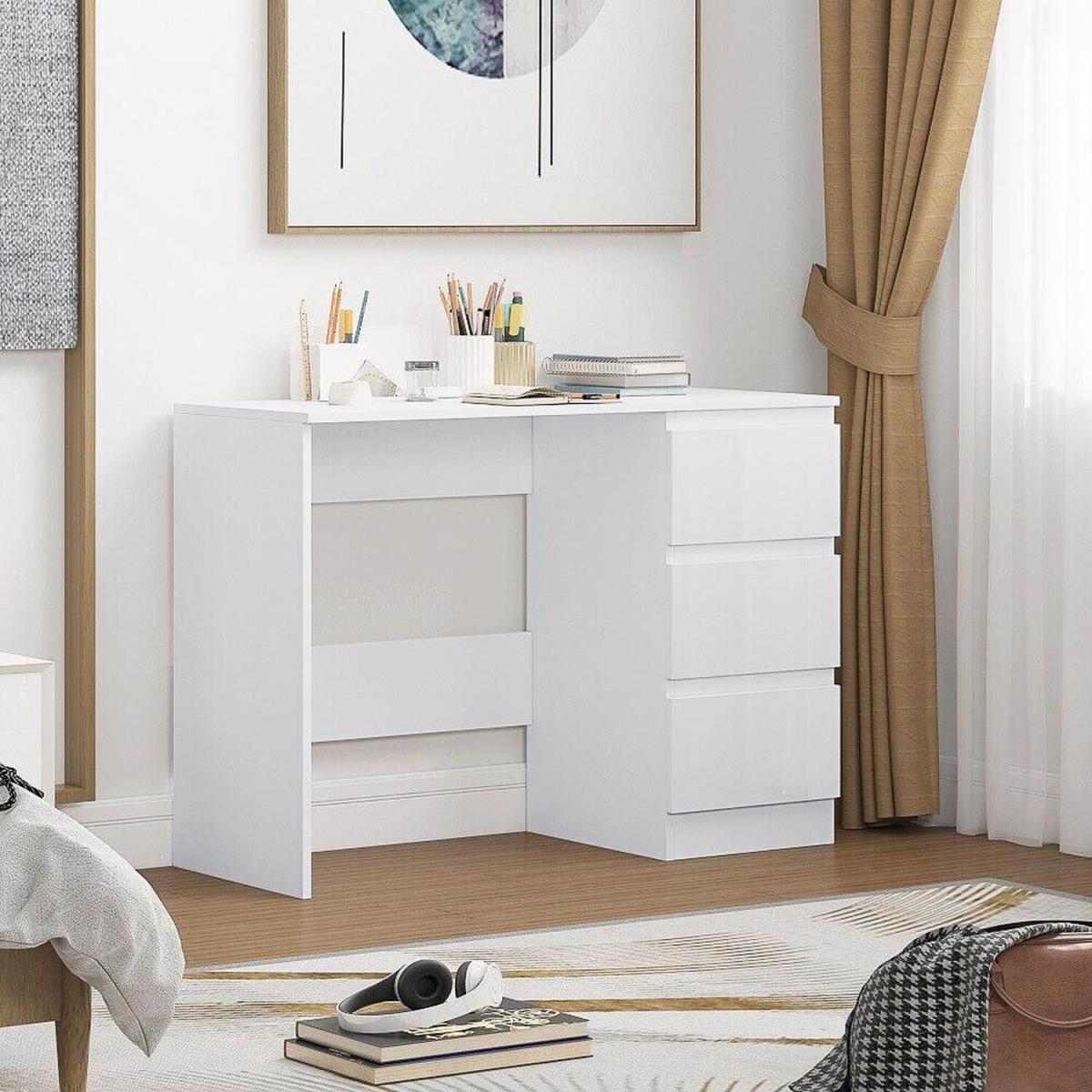 High Gloss White Dressing Table Desk With 3 Drawers - White