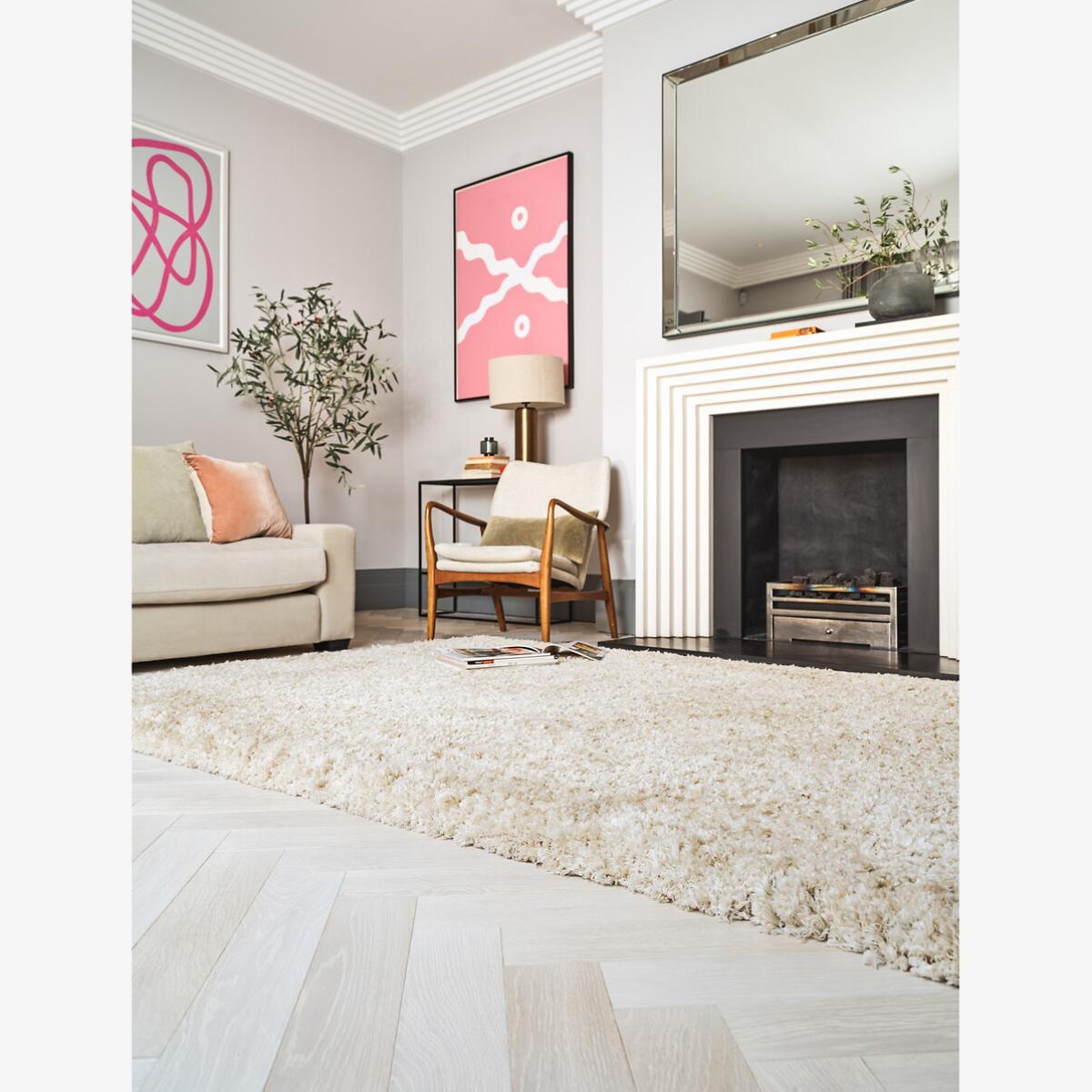 I love this shaggy rug for bringing instant warmth and texture to a room, making it perfect for creating a cosy, inviting atmosphere. Its high pile design lends a plush feel underfoot, ideal for living rooms or bedrooms where comfort is key. It works especially well in neutral or pastel schemes, complementing contemporary or Scandinavian interiors. For styling tips, try layering it over a wooden or light-coloured floor to enhance its softness, and keep accessories minimal to allow the rug to be the statement piece. Additionally, due to its shaggy nature, regular vacuuming with a brush attachment will help maintain its plush look without damaging the fibres.