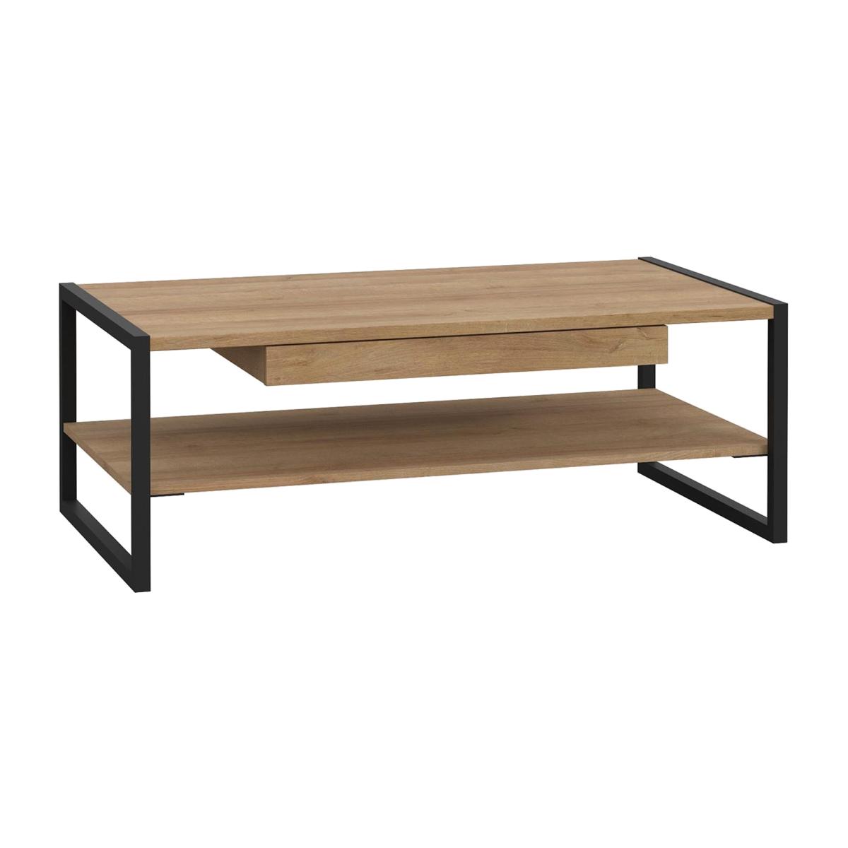 The High Rock Coffee Table is a captivating and contemporary storage option with a perfect blend of the Riviera Oak decor with deep black accents. This impressive coffee table immediately captivates attention with its originality. The sleek black metal accents add a touch of elegance, contributing to a distinct loft character within the space. Beyond its striking aesthetics, High Rock prioritises functionality with its ingenious storage solutions. The table has ample space to organise belongings in the single drawer and shelf beneath and is easy to coordinate in the living room.