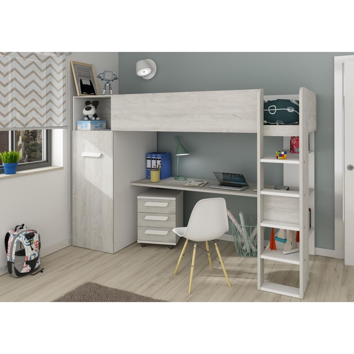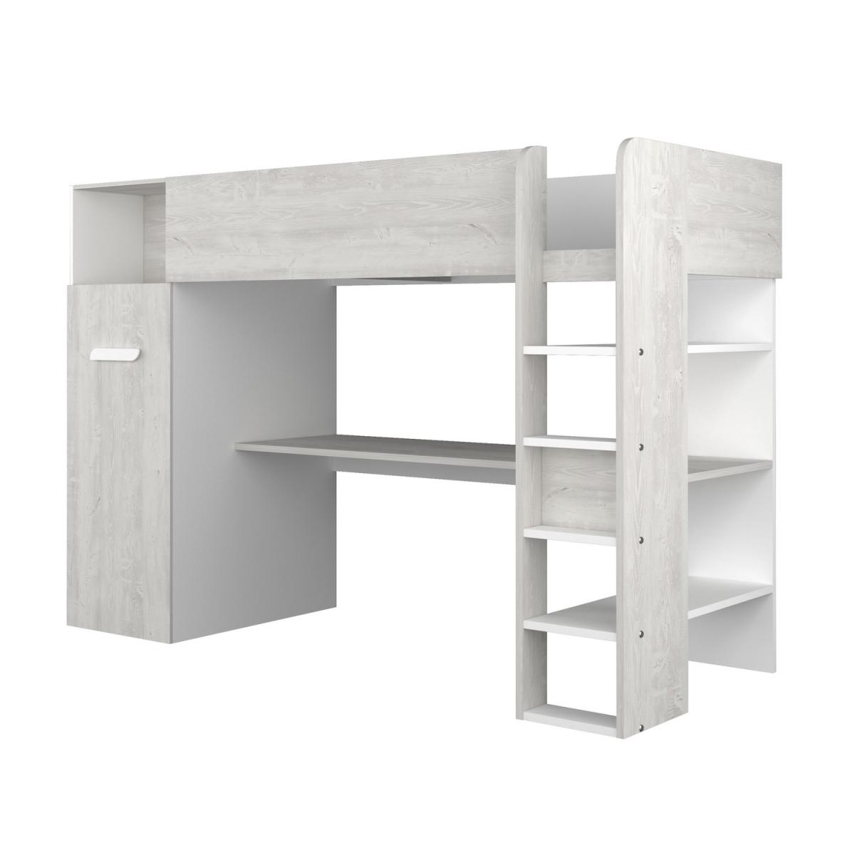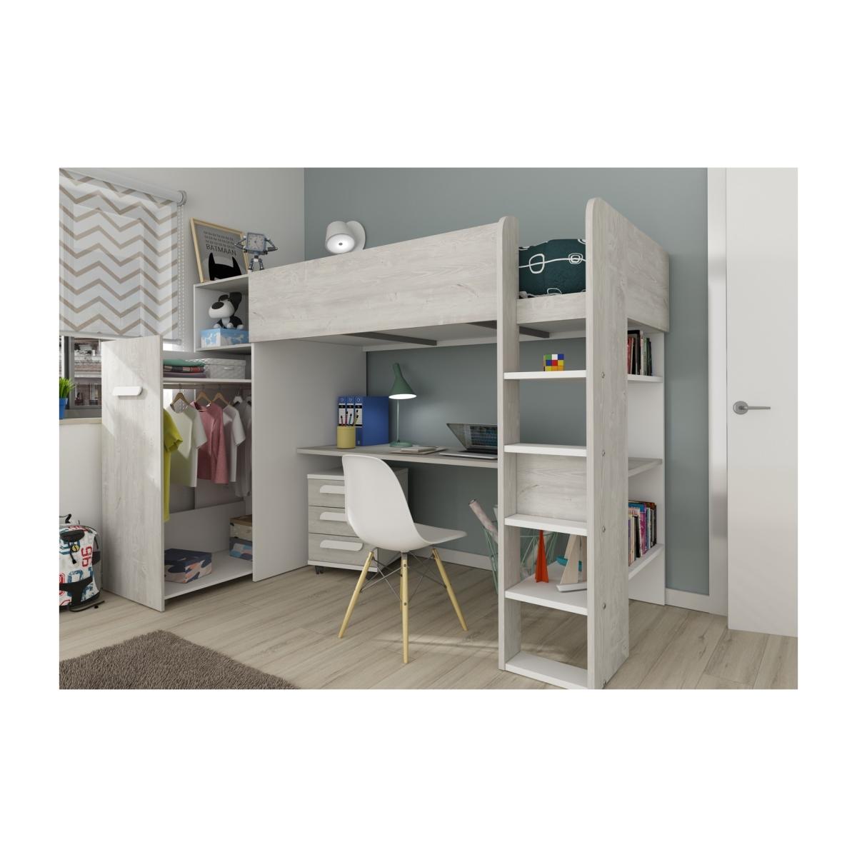 High Sleeper Loft Bed with Desk and Wardrobe in White Oak - Tarragona - Kids Avenue