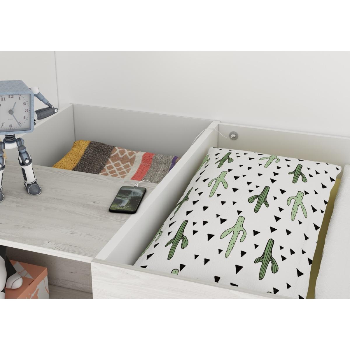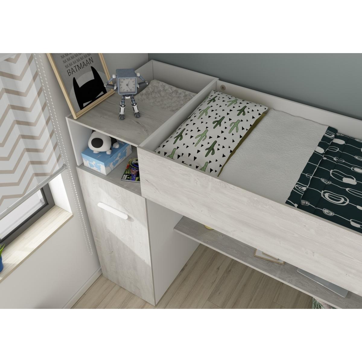 The Tarragona by Kids Avenue isthe perfectcontemporary sleeping solution for any teen or child, the white and wood effect finish blends with any interior and wide ladder steps offer an easy climb. Integrated shelves are great for storing books or stationary supplies and the wide desk beneath the bed offers plenty of room for studying.