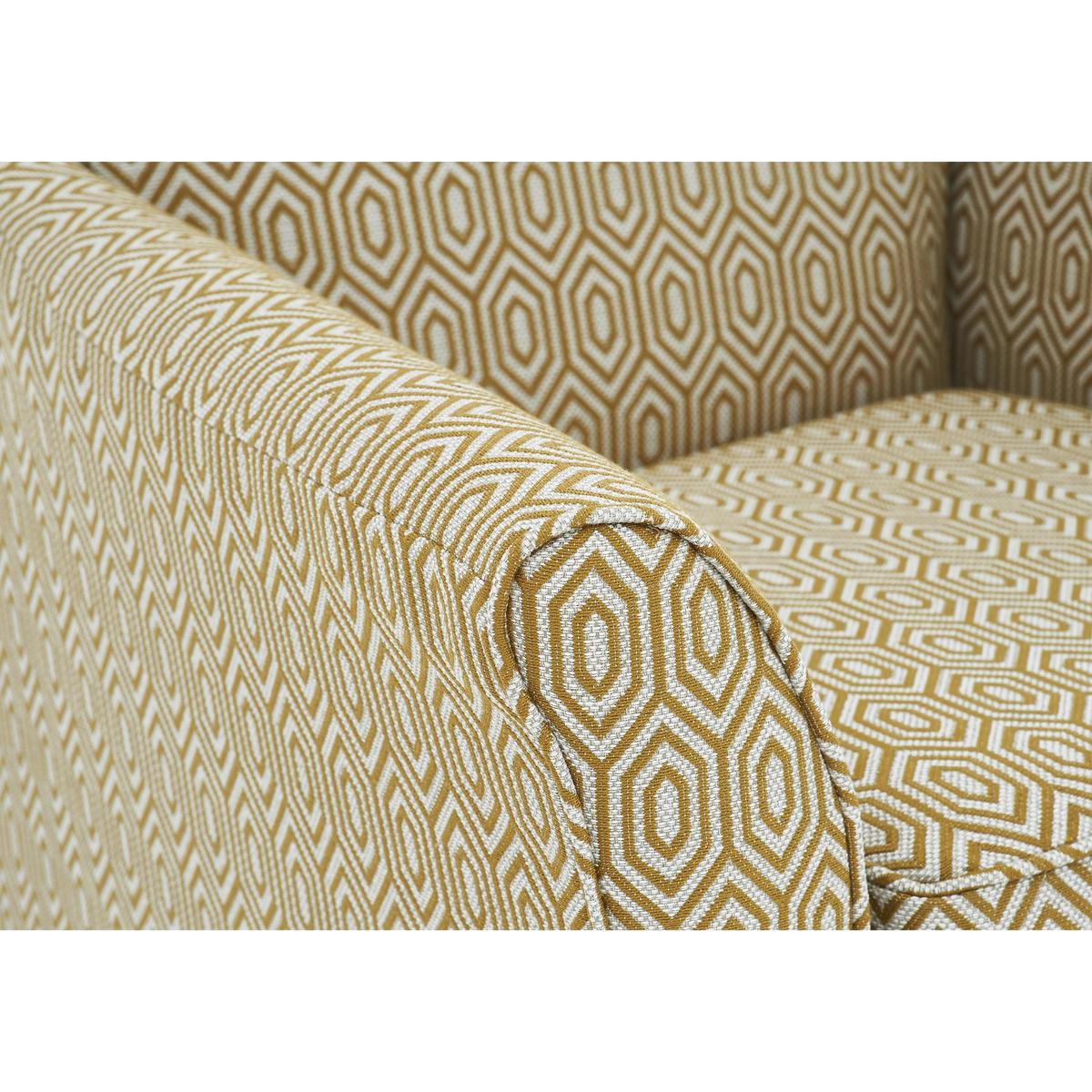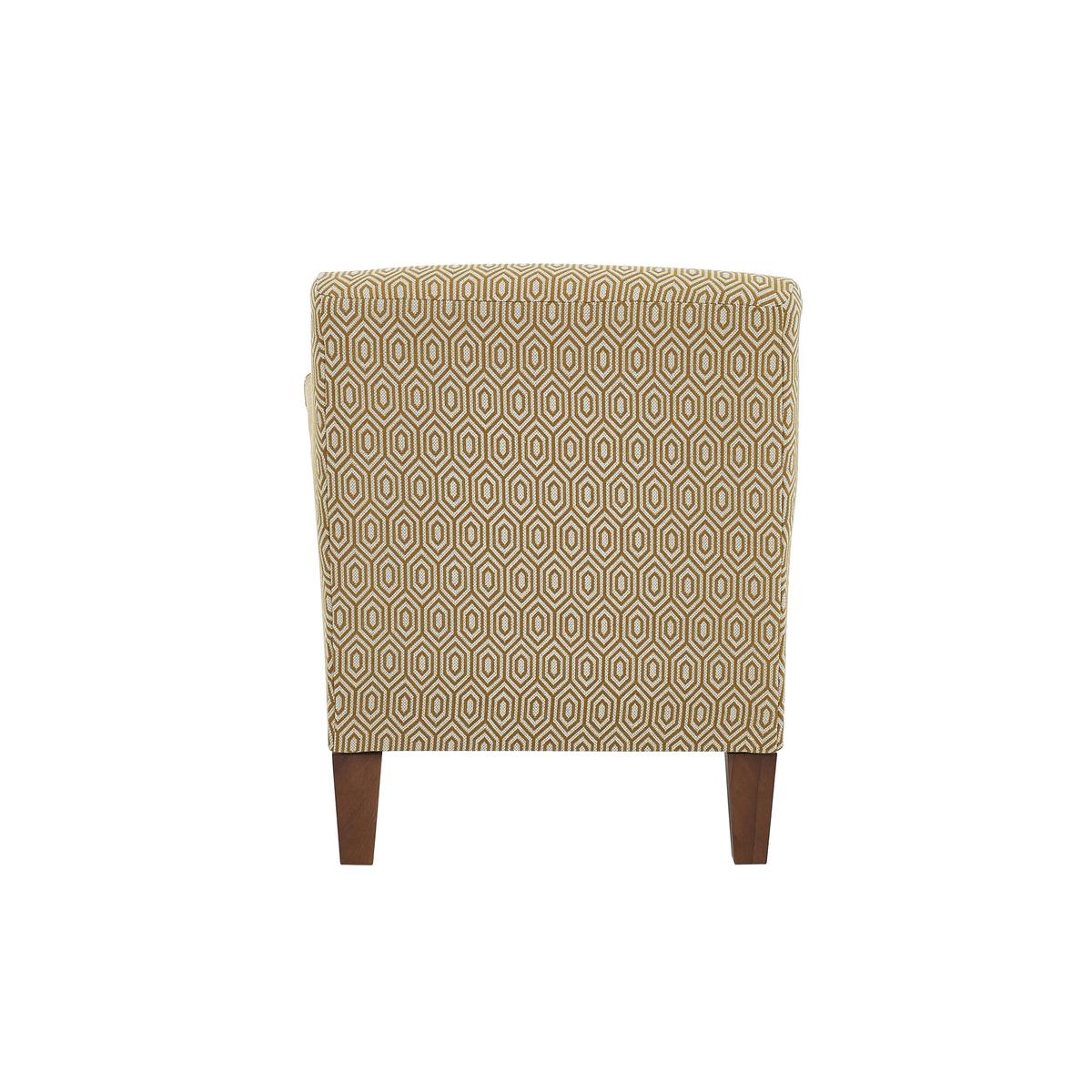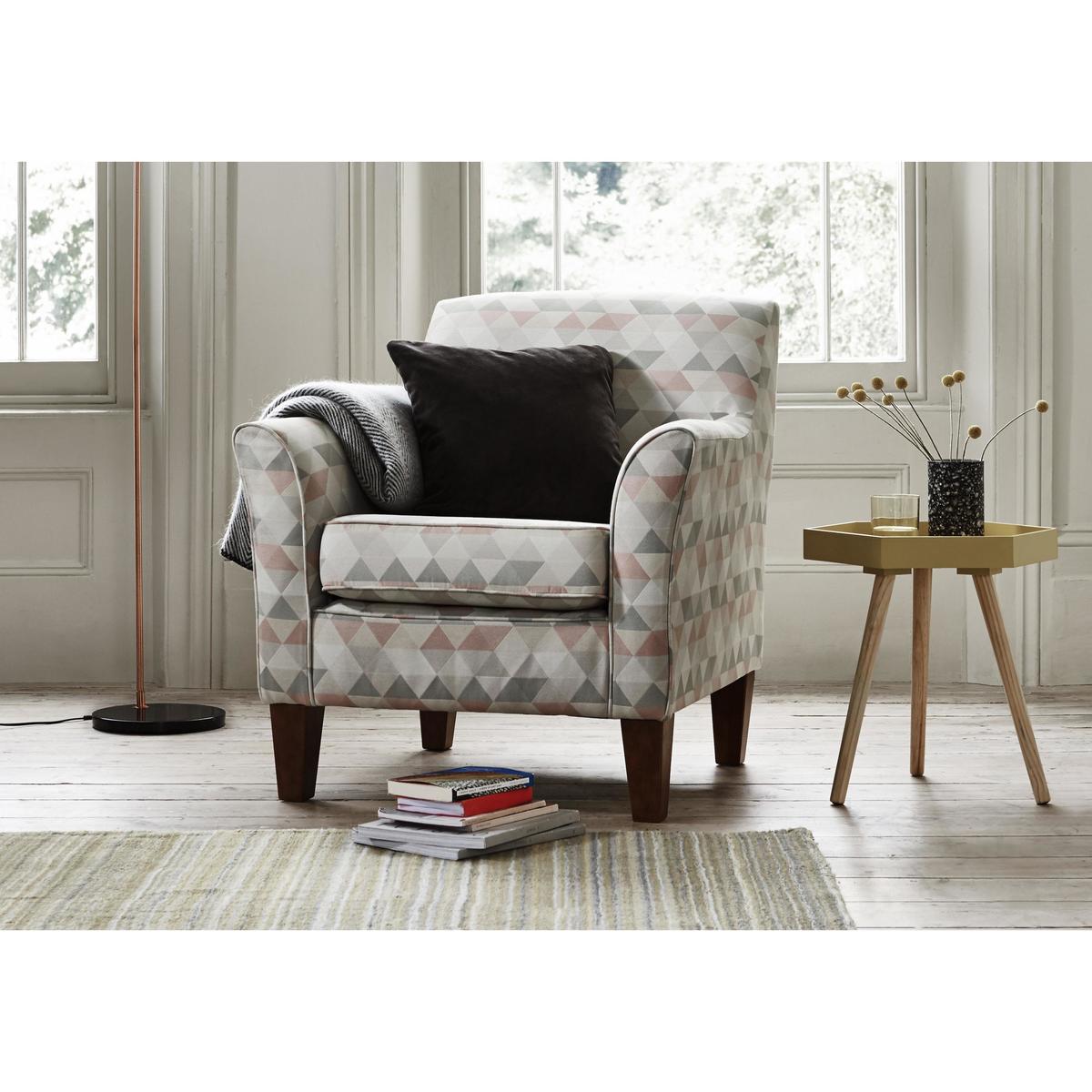 I love this armchair for its versatile design and subtle pattern, making it a great addition to both contemporary and classic interiors. Its geometric print adds visual interest without overpowering other elements in the room, so it’s ideal for adding a bit of personality to a living room, reading nook, or even a home office. Practical styling tips include pairing it with neutral-toned cushions or throws to soften the look, and placing it beside a small side table for convenience. Its compact size also makes it suitable for smaller spaces or as an occasional seat in larger areas, while the wooden legs provide a warm contrast that works well with natural materials and mid-century inspired interiors.