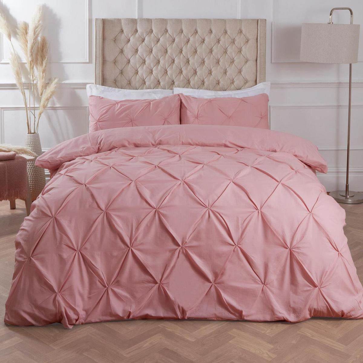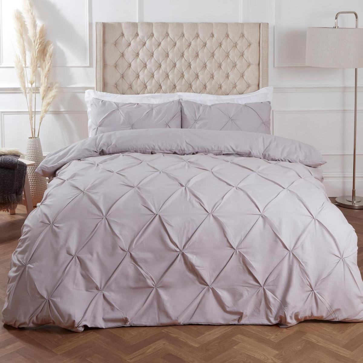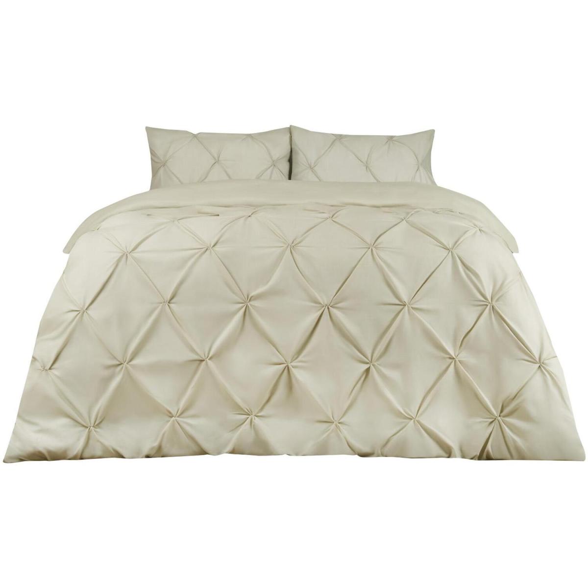 This luxurious Diamond Pintuck duvet cover set would look ideal in any bedroom and is a perfect way to give your room a fresh look. This duvet set is woven from a mix of soft cotton and polyester, making it comfortable and durable. This easy-care bed linen will give your bedroom that modern feel and once washed it has great resistance to wrinkles, fading and shrinkage. This set includes a duvet cover and matching pillowcase(s), all you need for a good night's sleep.